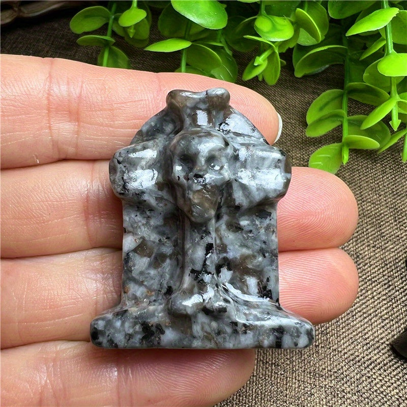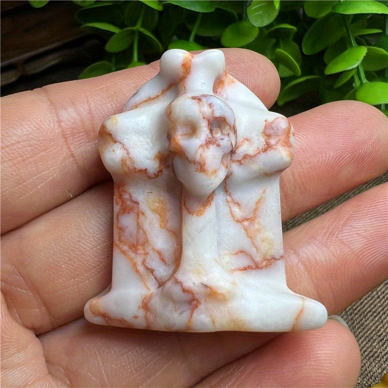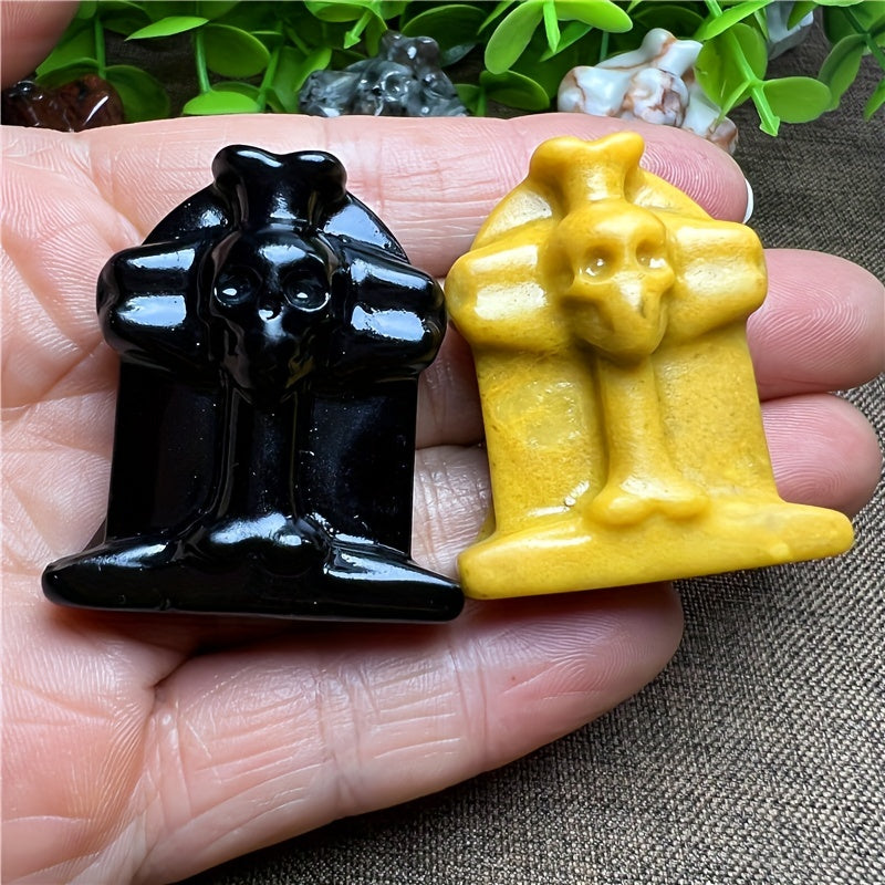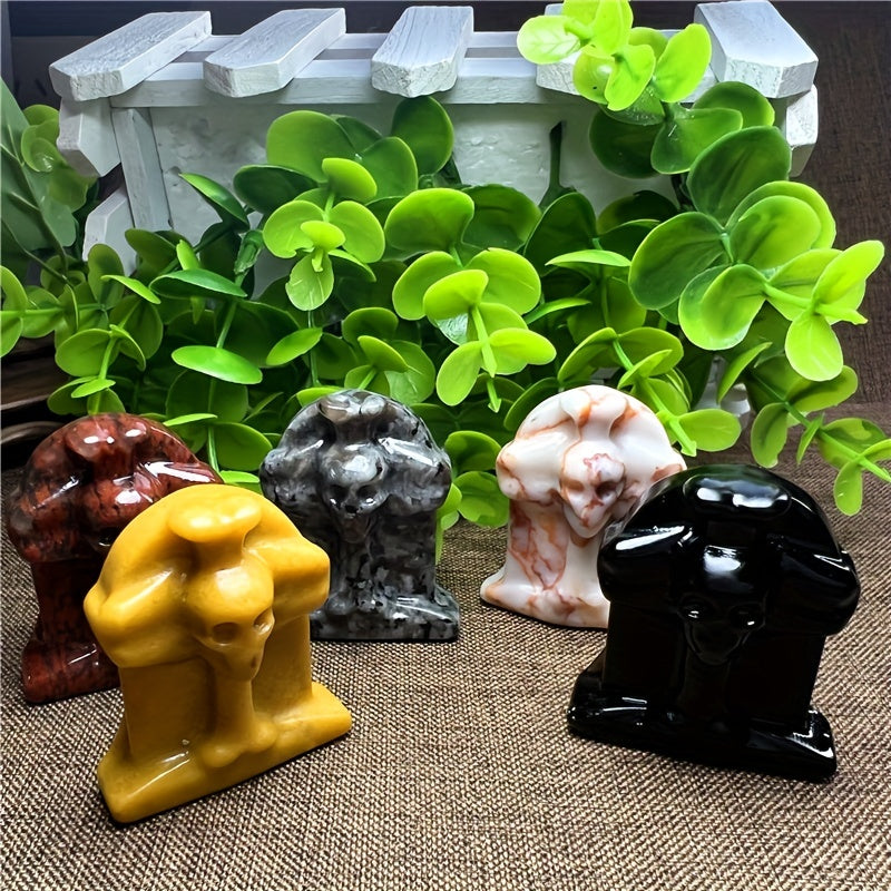 Enhance your space with this natural mixed crystal tombstone carving that serves as a healing stone. Perfect for home decoration or as a thoughtful gift.