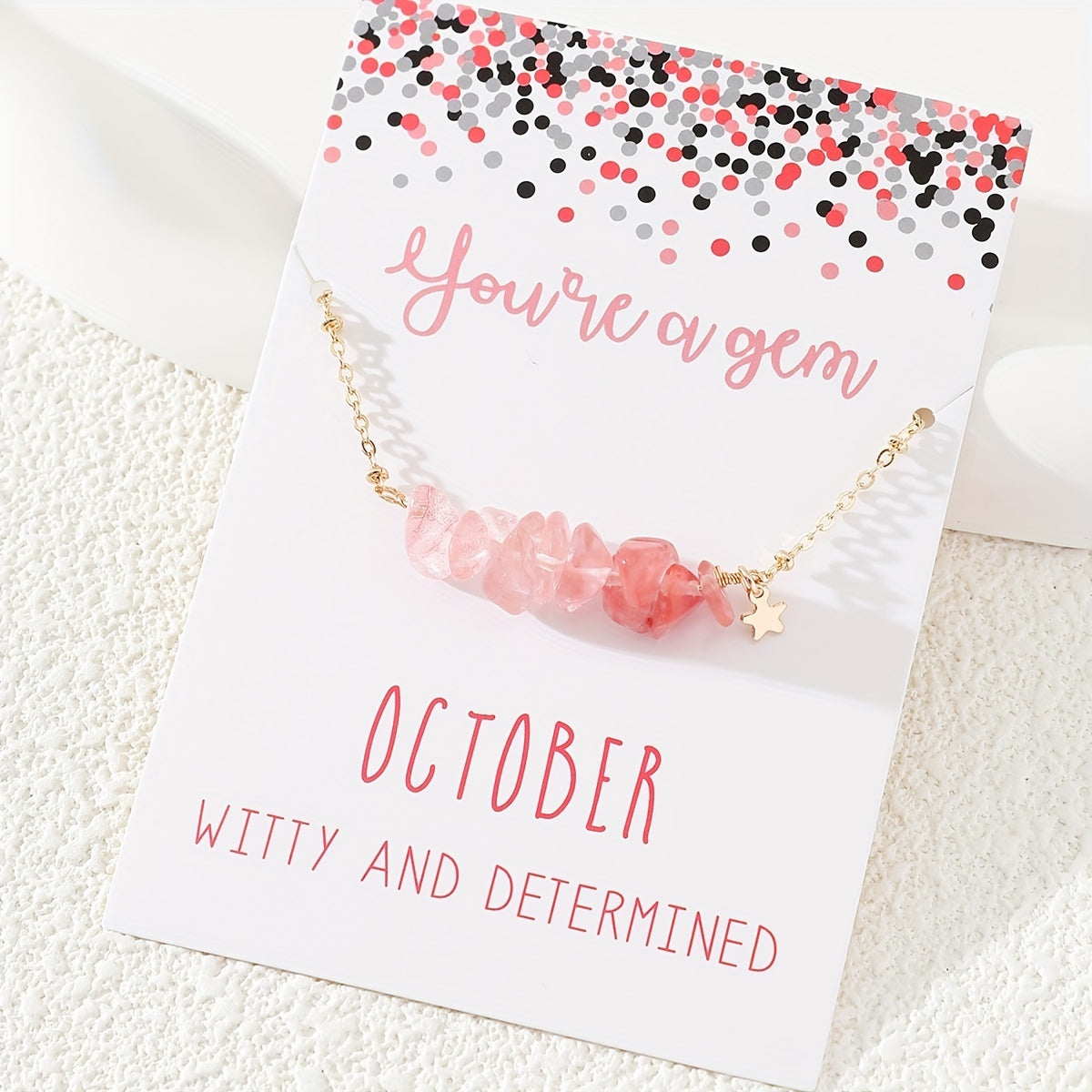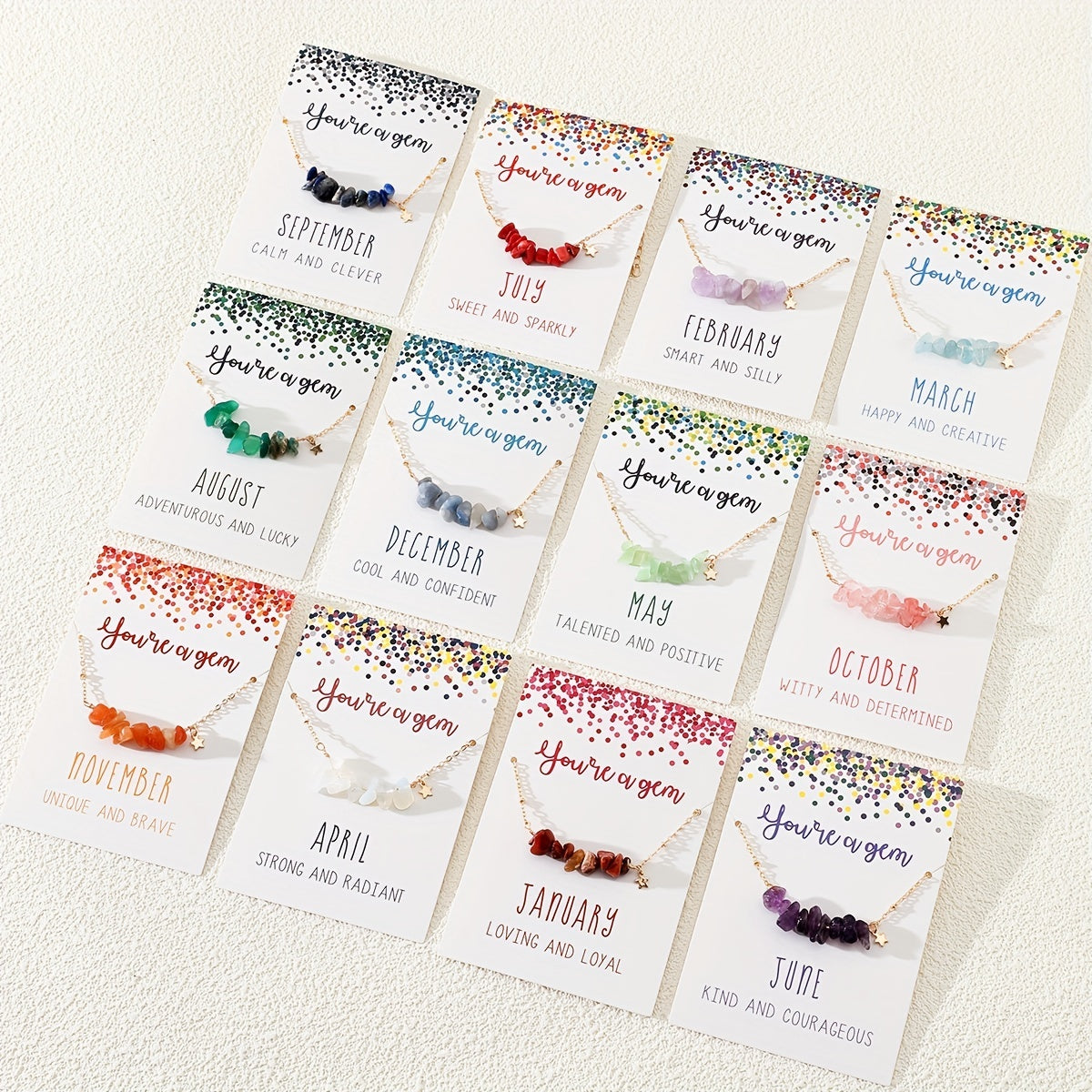 This stunning necklace features natural stone chips that represent birthstones, making it a perfect birthday gift for women.
