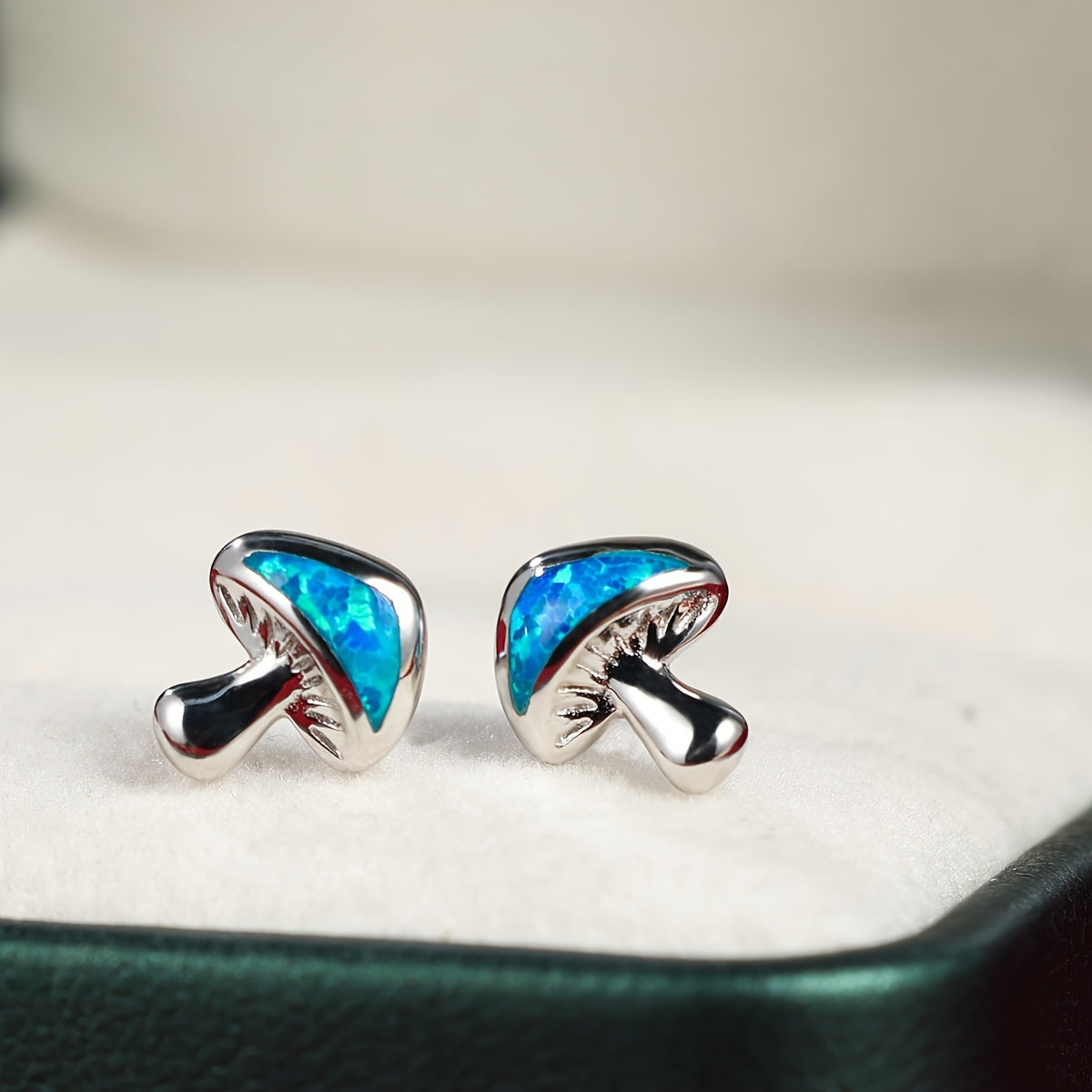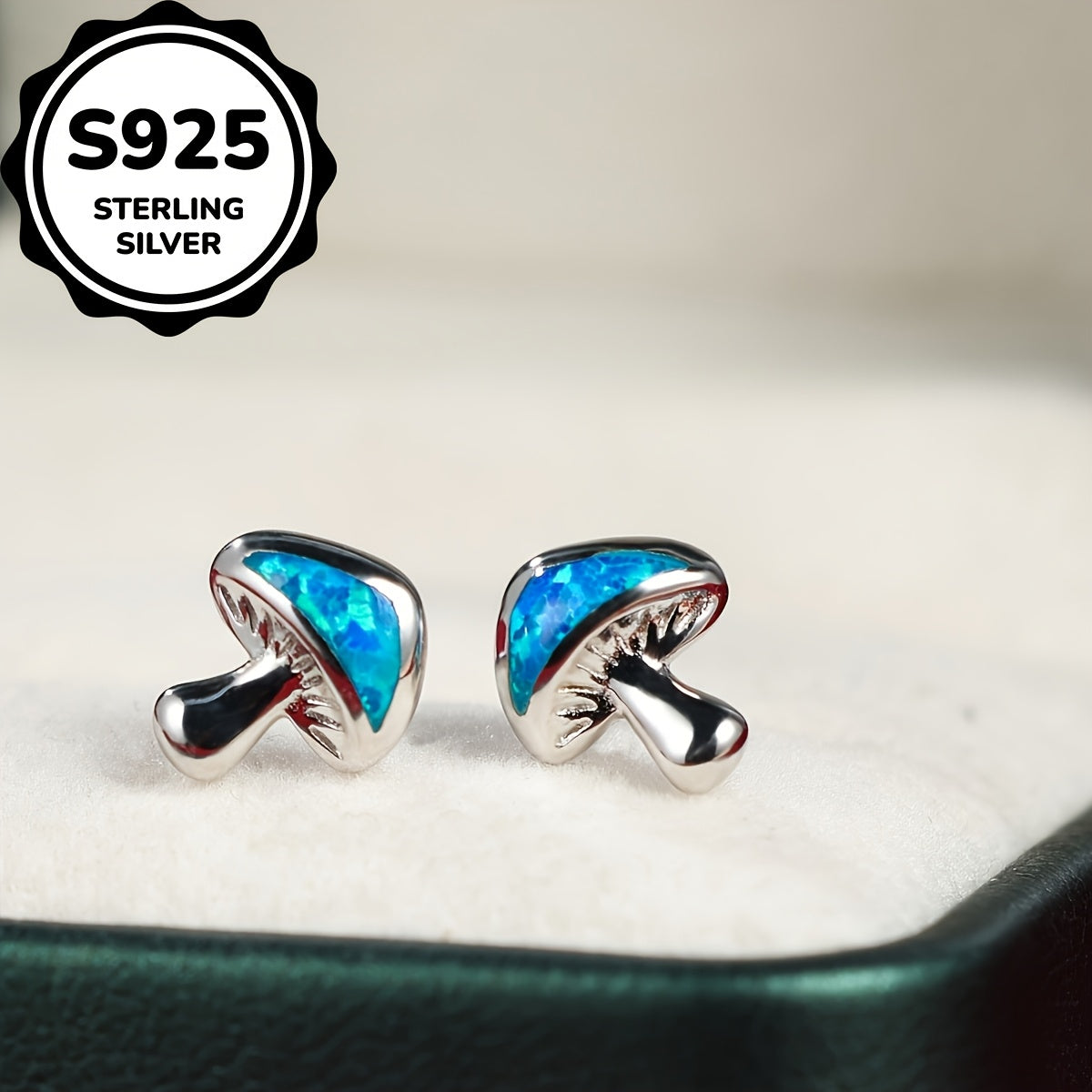 Elevate your style with these stunning opal inlaid mushroom stud earrings crafted from hypoallergenic 925 sterling silver, perfect for sensitive skin and a unique persona.