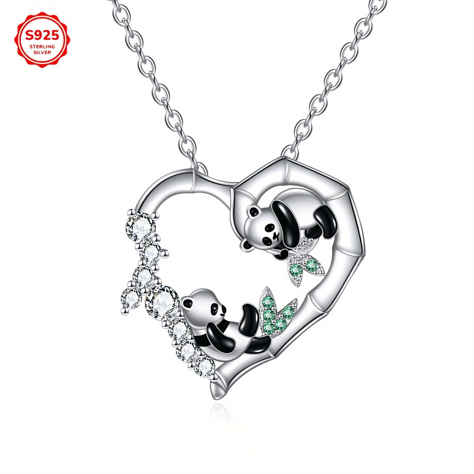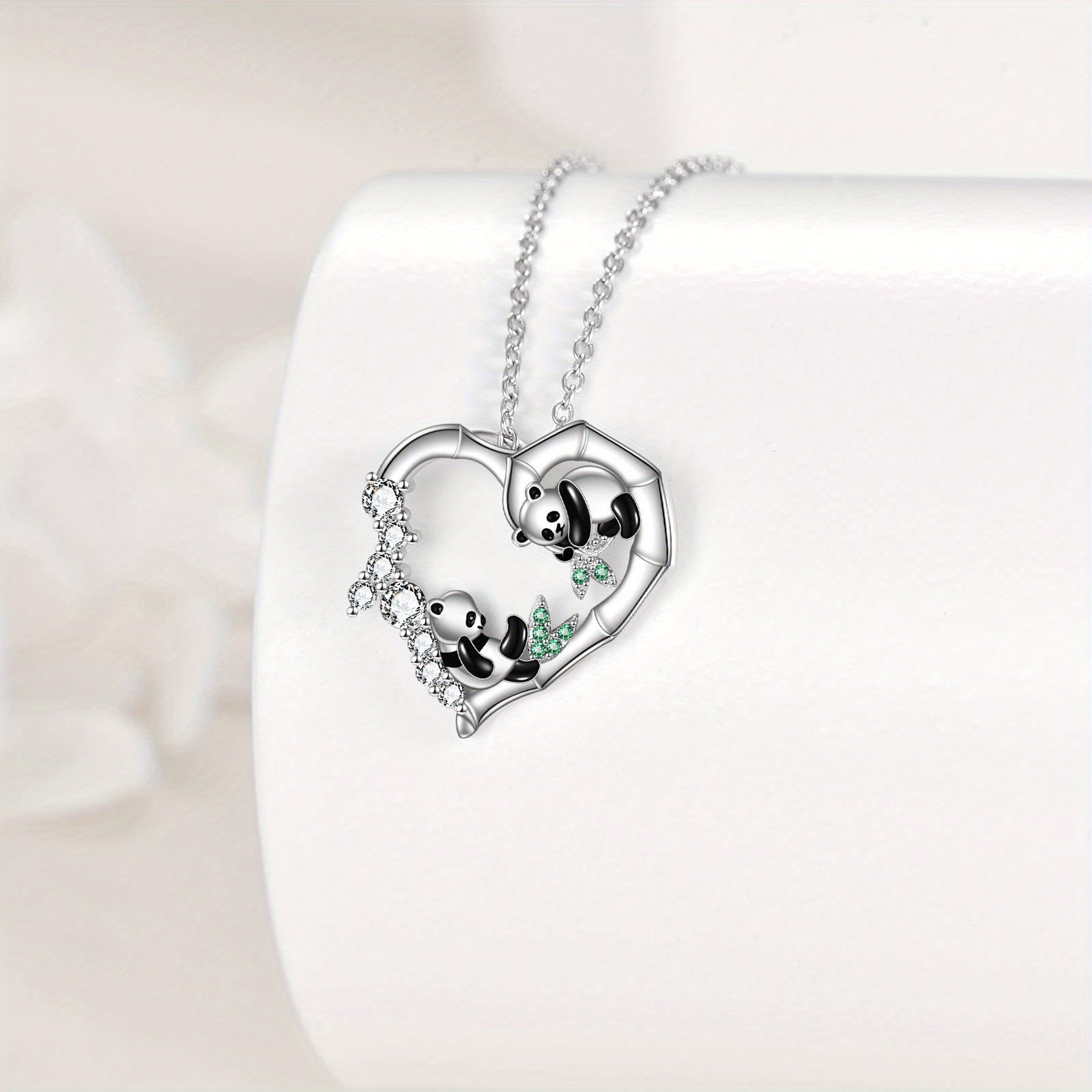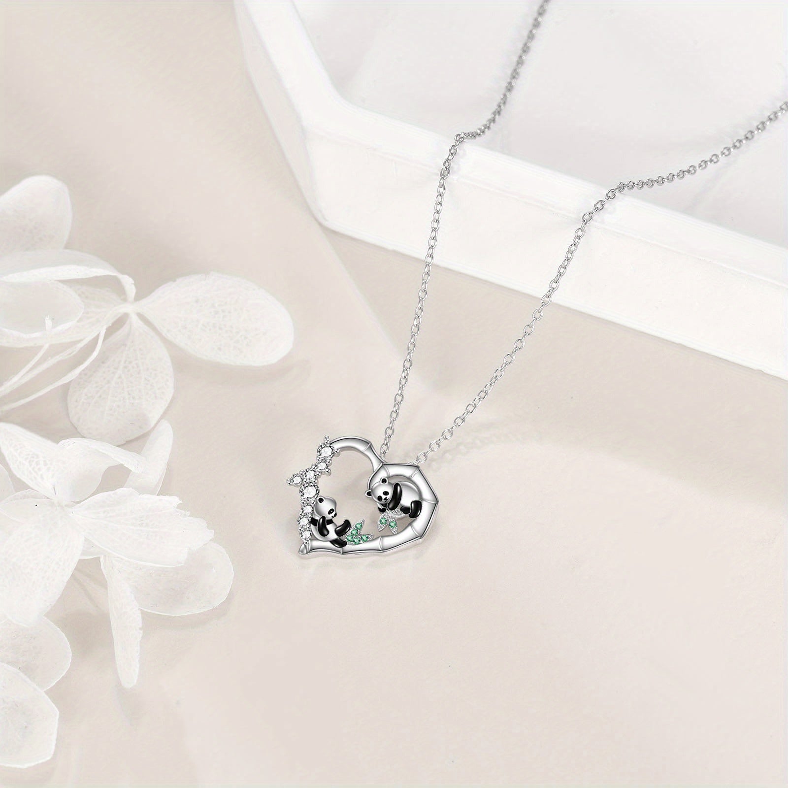 Elegant and cute panda design necklace with zirconium heart pendant, perfect for birthdays, graduations, and parties.