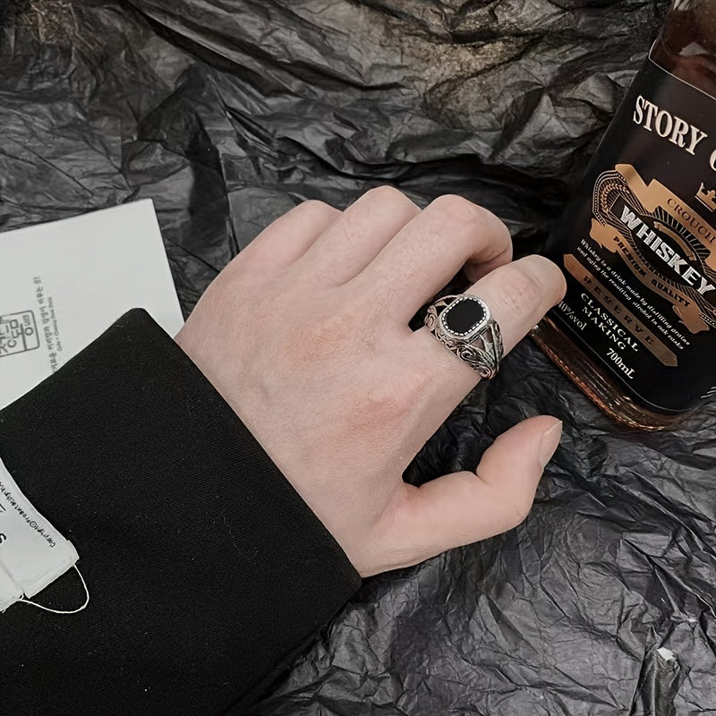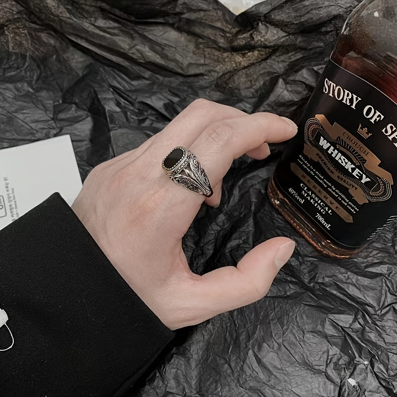 Vintage-inspired zircon ring with retro pattern face, perfect for hip hop and gothic styles. Makes a great jewelry gift.