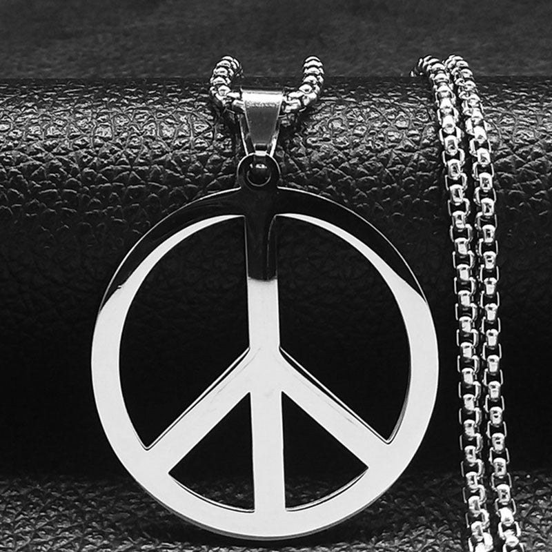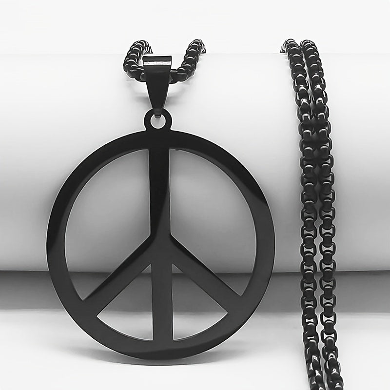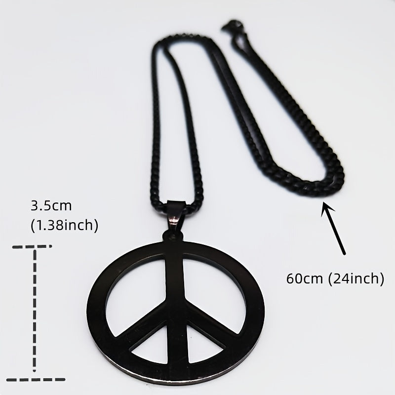 This peace sign necklace is a perfect accessory for hippie style. Made of stainless steel, it features a durable chain necklace.