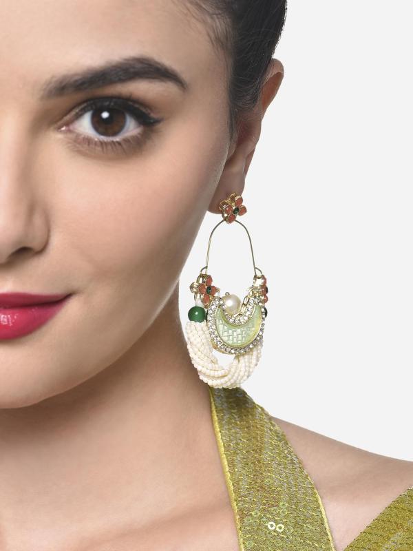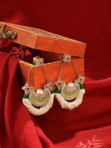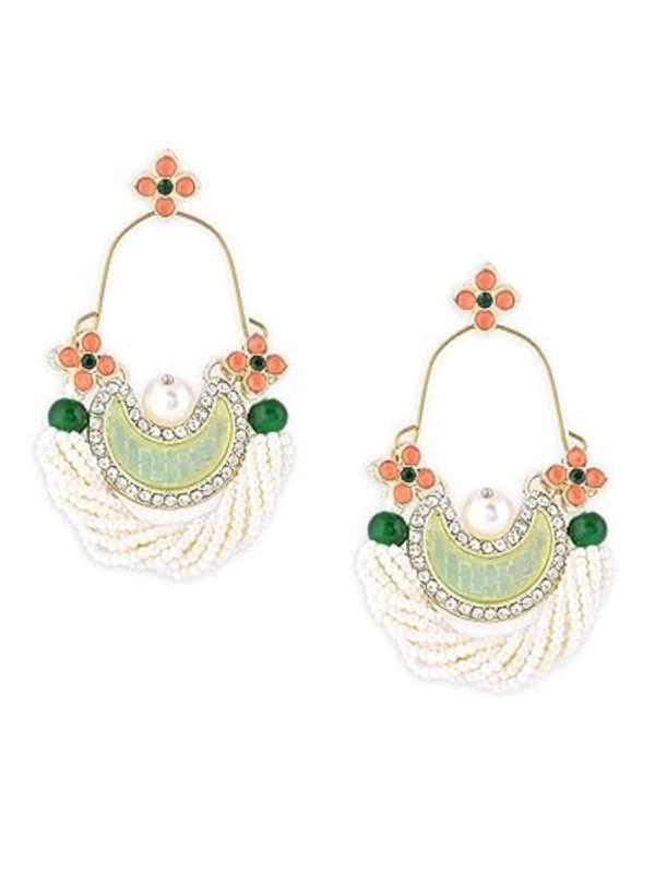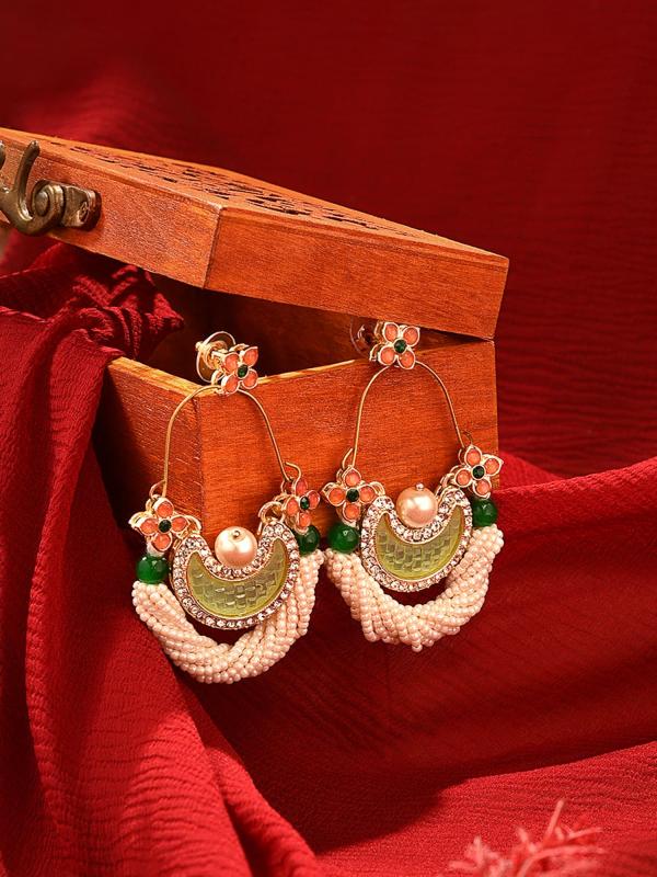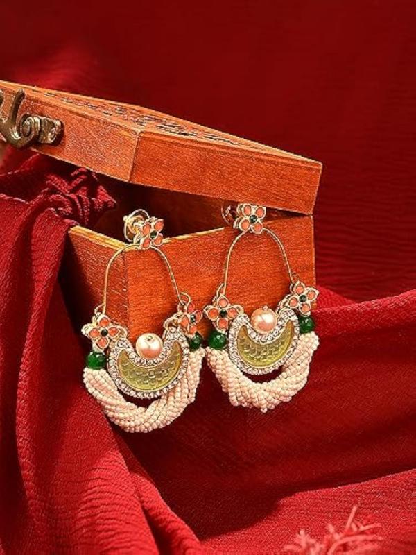 Add a touch of ethnic elegance with these peach dangle earrings featuring dazzling stones.