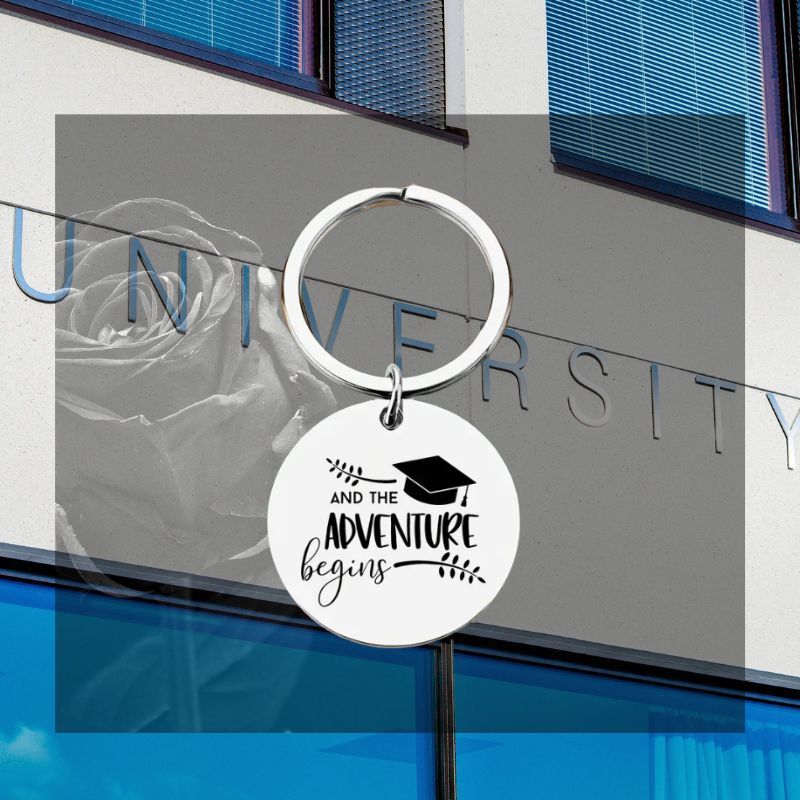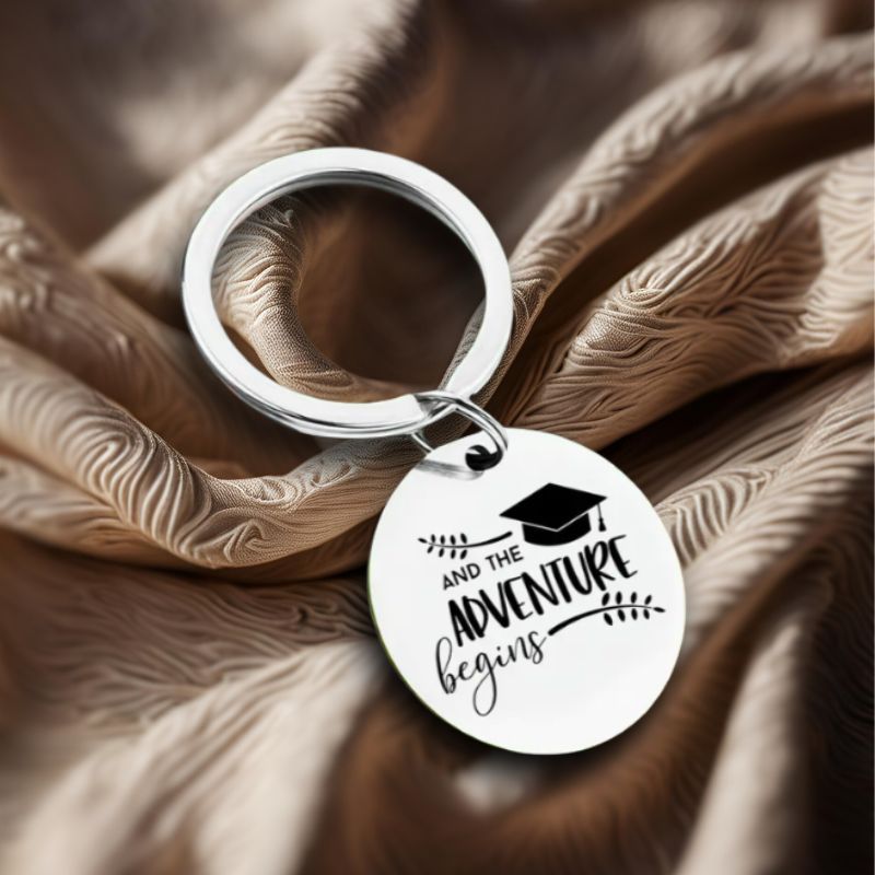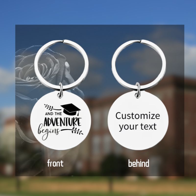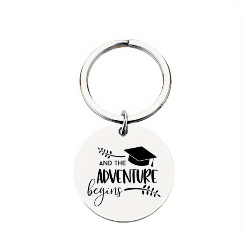 Celebrate the start of a new adventure with this stainless steel graduation cap keychain that can be customized with a name or message. The perfect gift for any recent graduate!