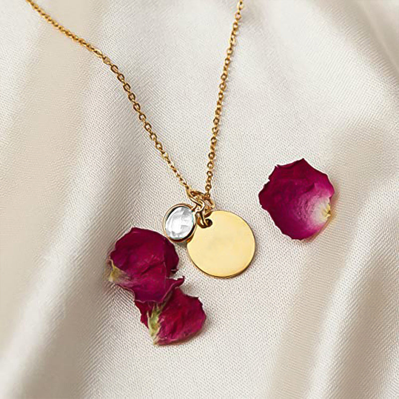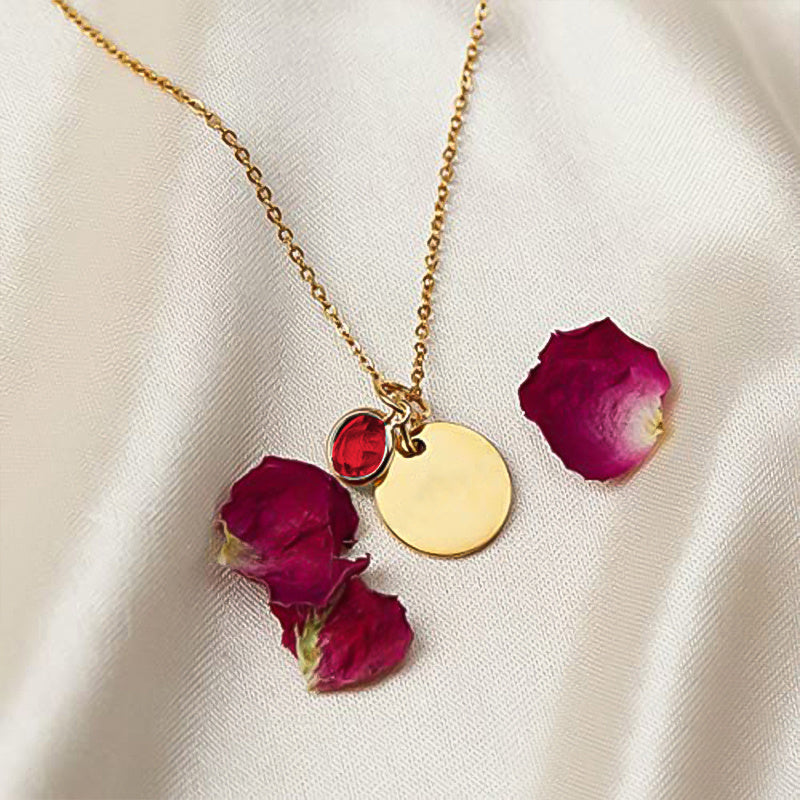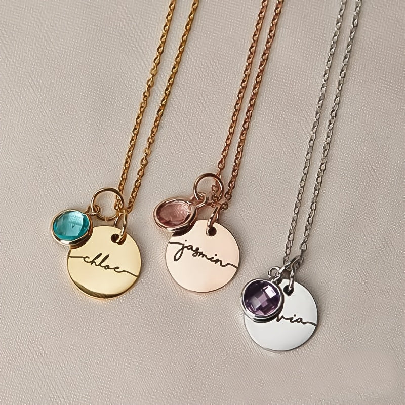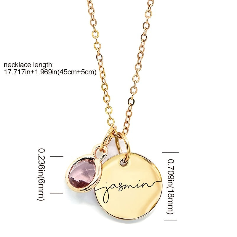 This custom birthstone necklace is the perfect gift for birthdays. Crafted from stainless steel, it can be personalized with an engraved name for a special touch.