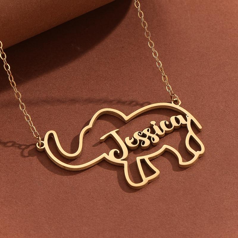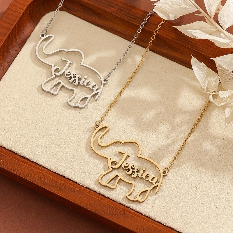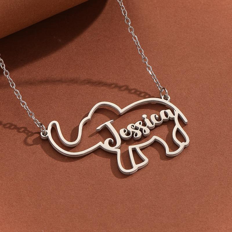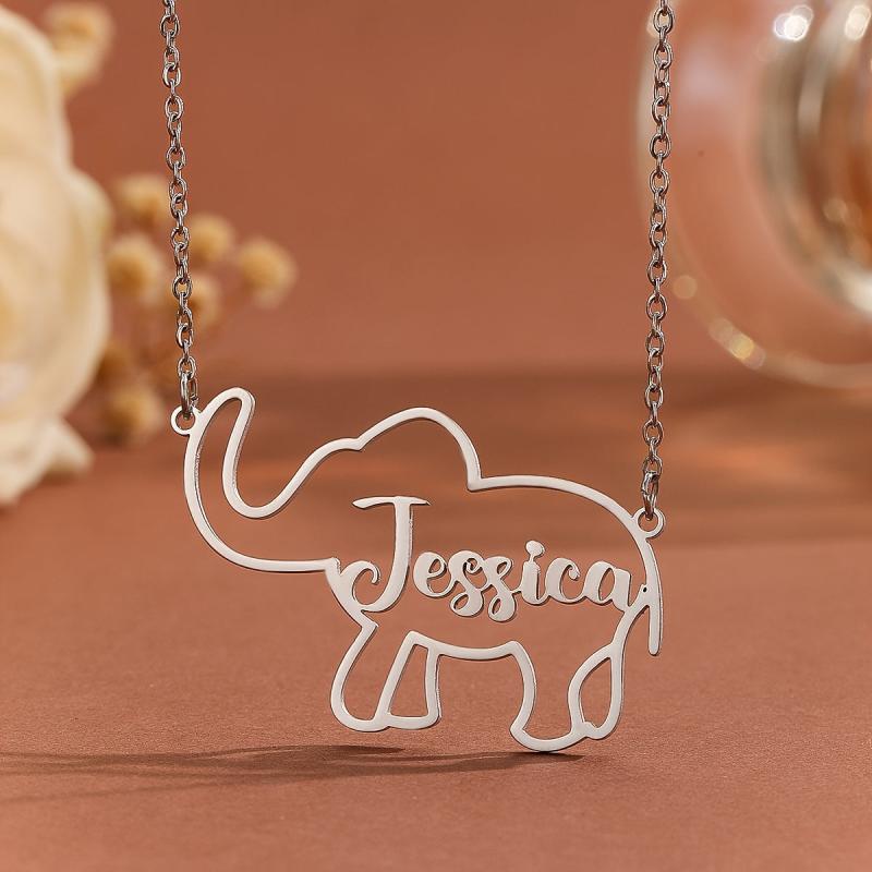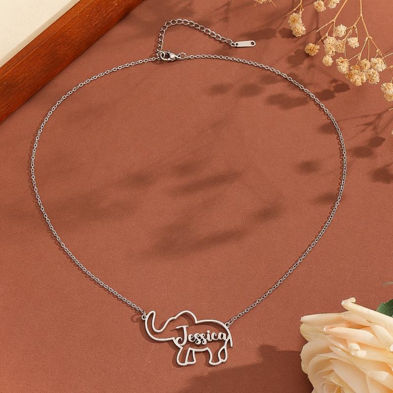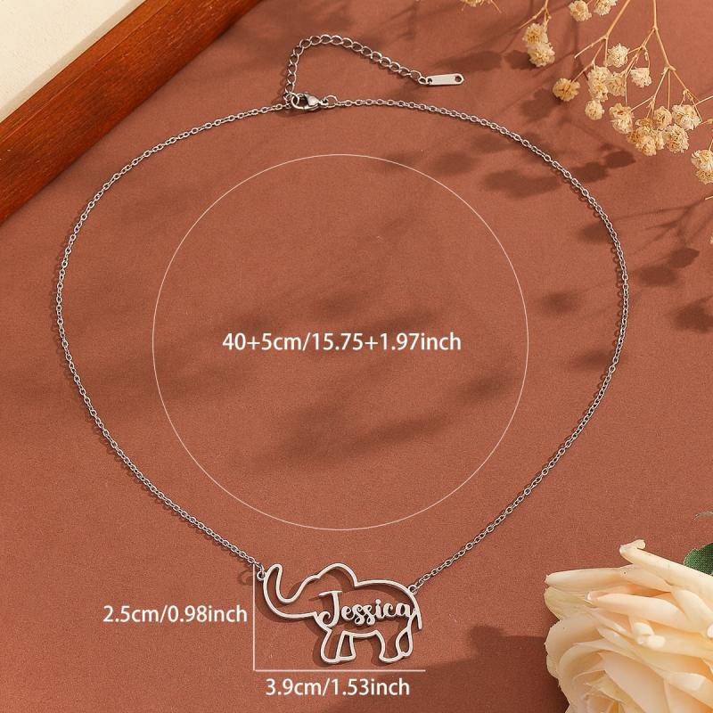This minimalist stainless steel necklace features a hollow elephant pendant with an engraved name, making it a perfect unisex gift for birthdays and anniversaries.
