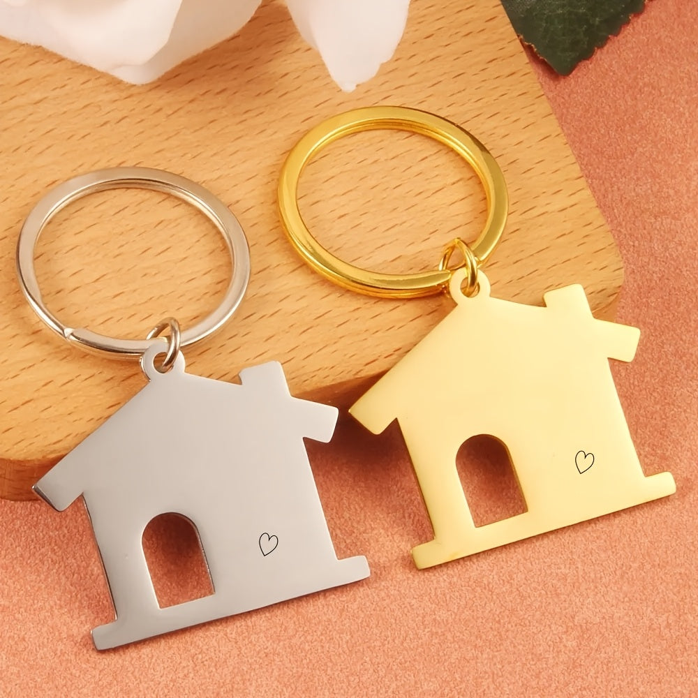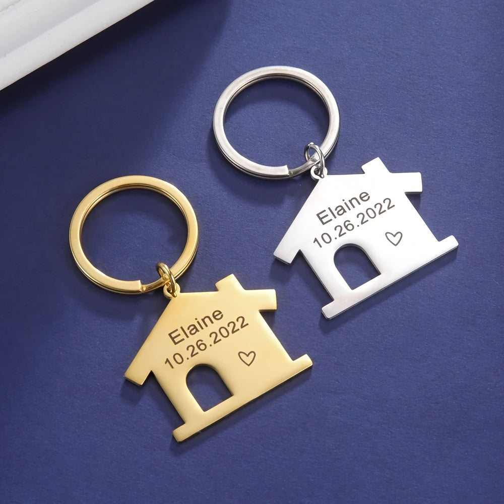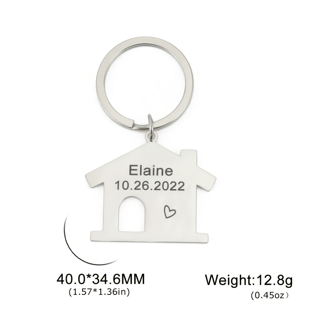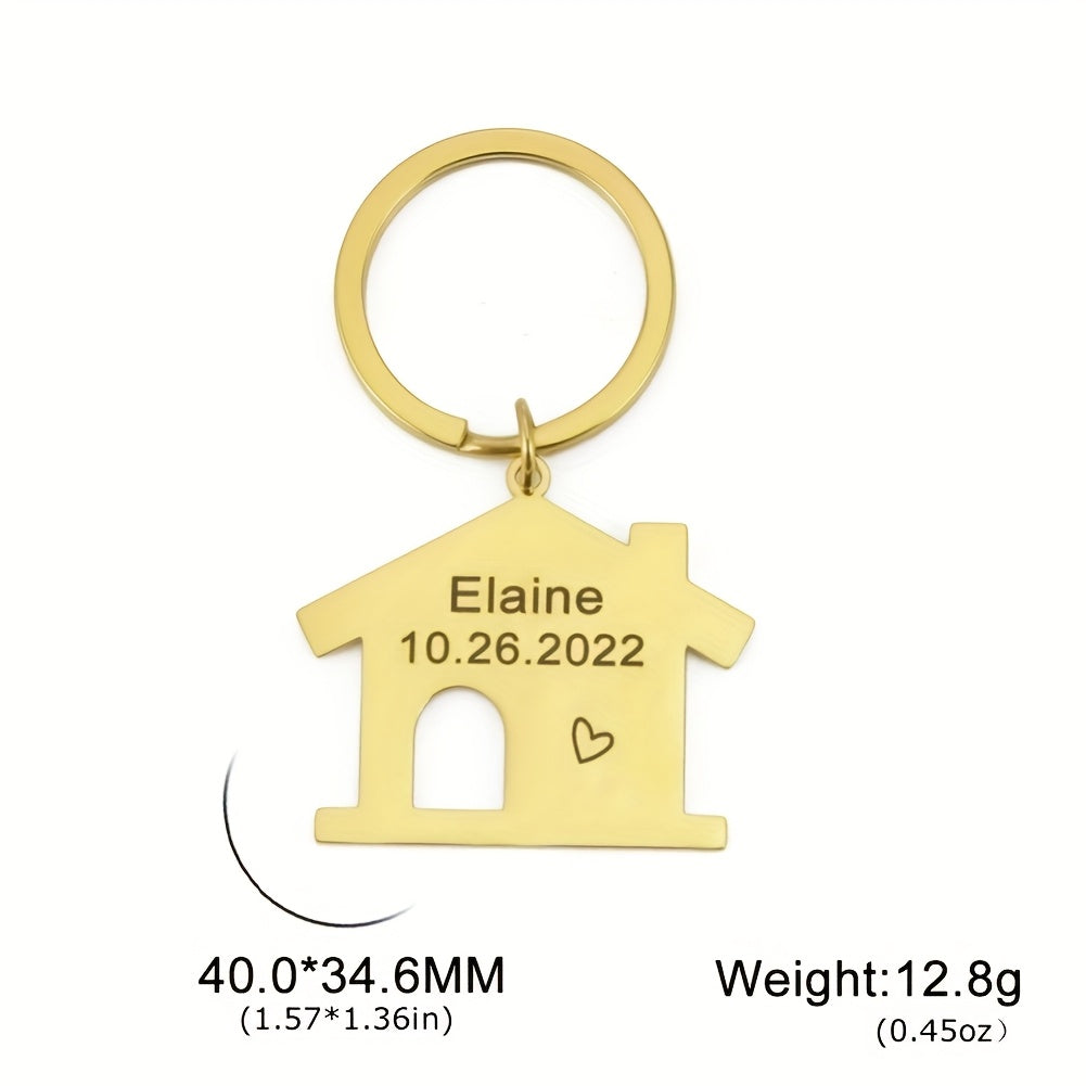 Personalized House Shape Keychain, Stainless Steel, Unisex Style