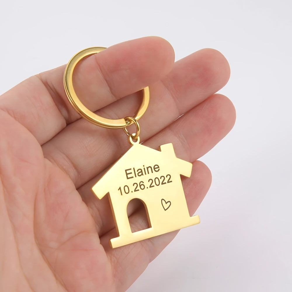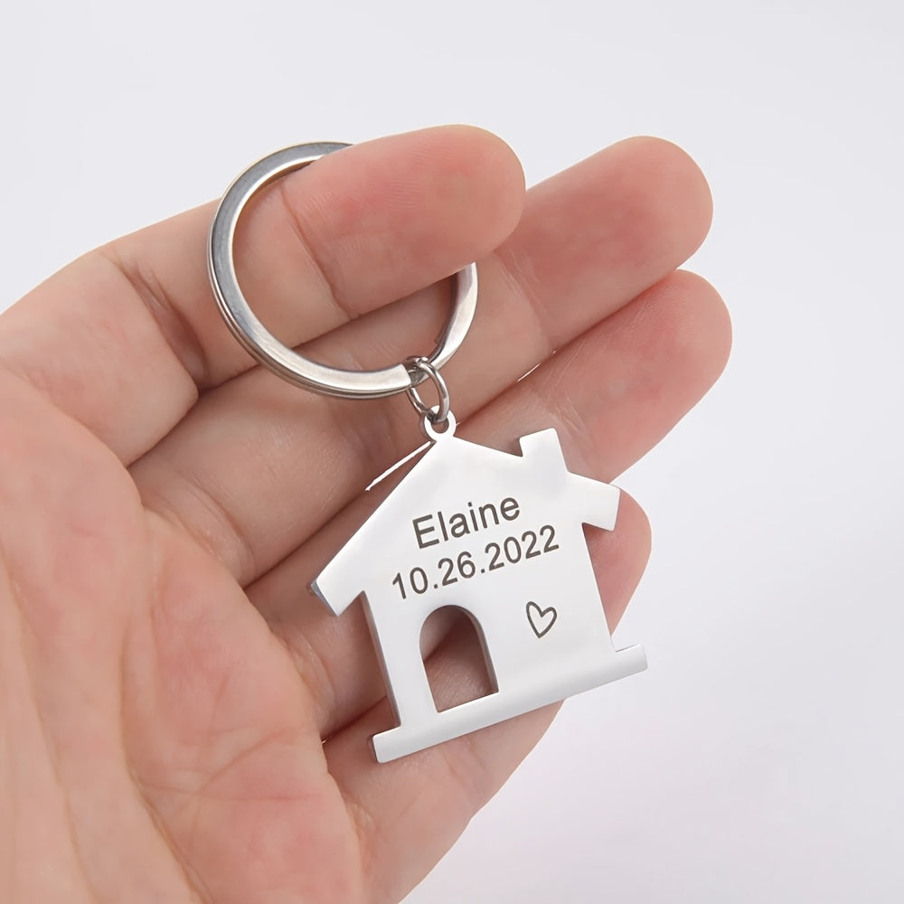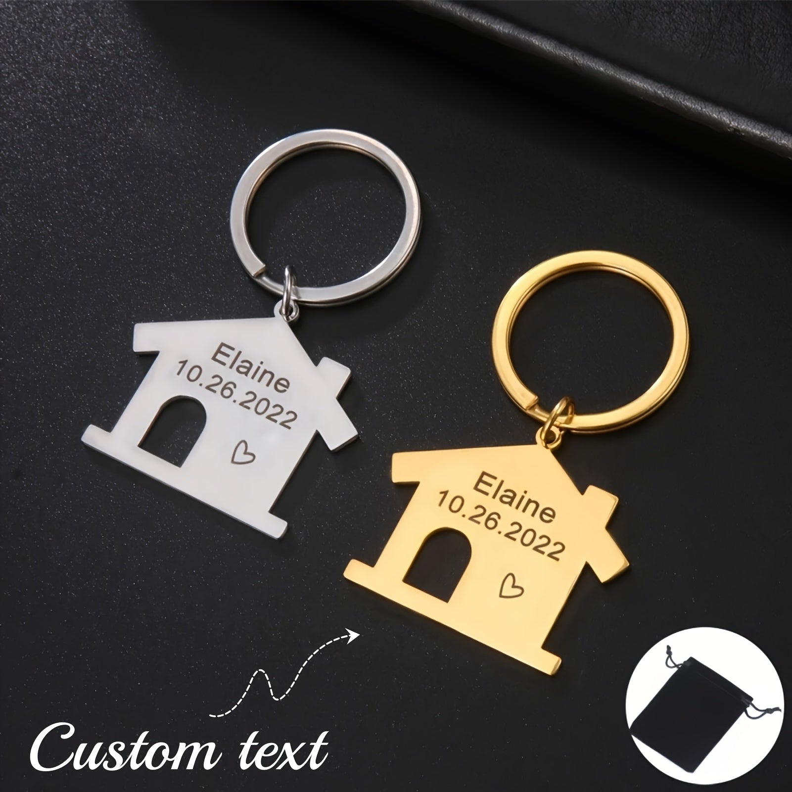 Personalized House Shape Keychain, Stainless Steel, Unisex Style