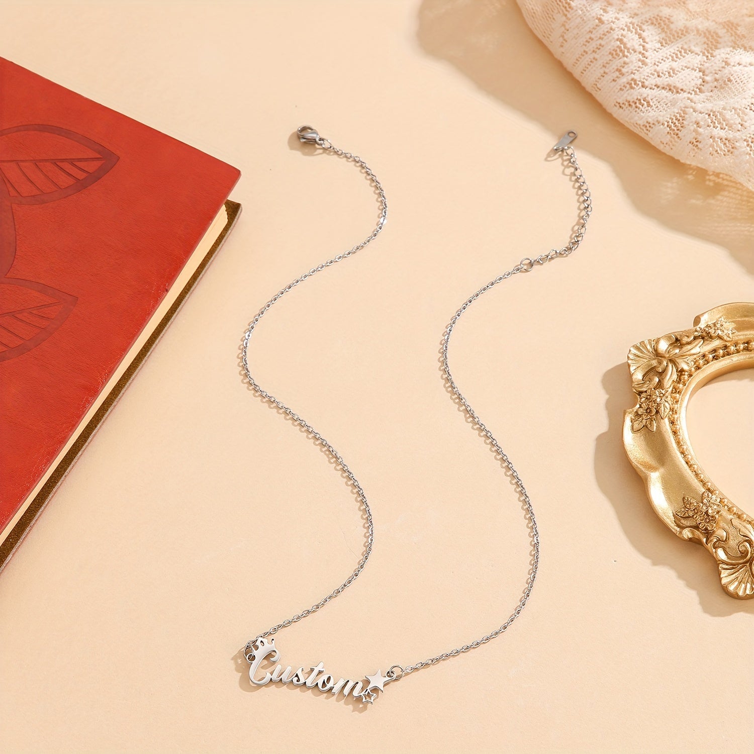 Get this custom name necklace with a star pendant made from 304 stainless steel. Perfect for everyday wear or special occasions.