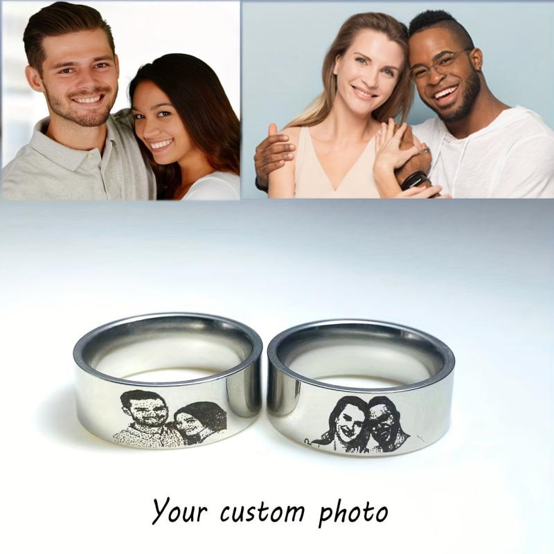 Create a unique and meaningful piece of jewelry with this stainless steel infinity band ring featuring a custom engraved photo. Perfect for men and women, this ring is a stylish way to showcase your favorite memories.