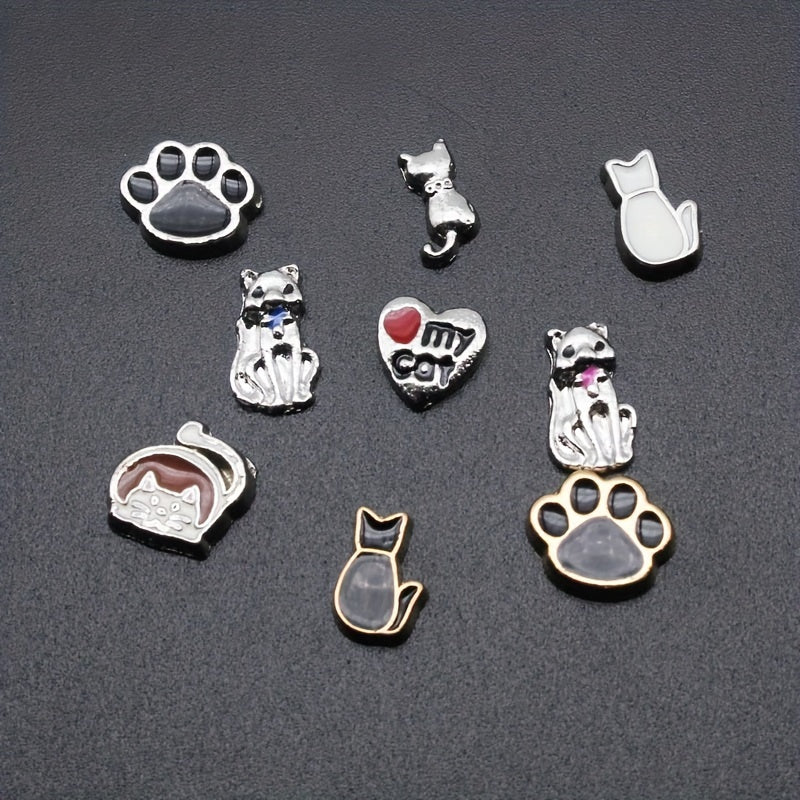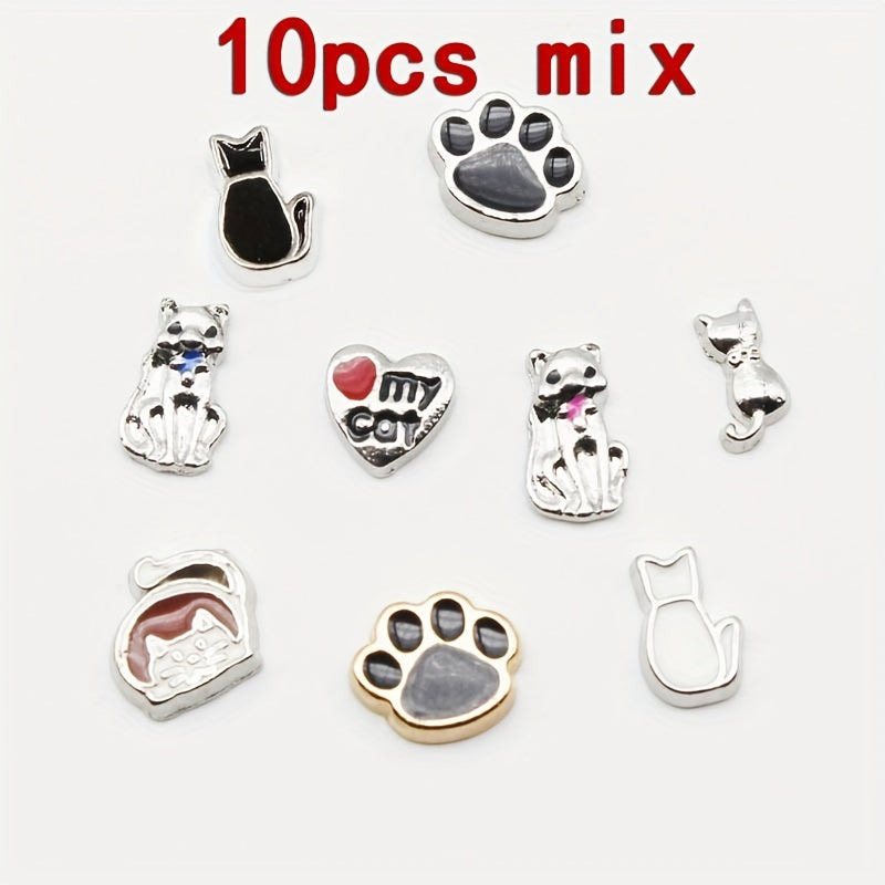 Get this pack of 10 mixed style pet-themed glass photo box floating charms featuring cute cat paws, perfect for cat lovers and pet owners.