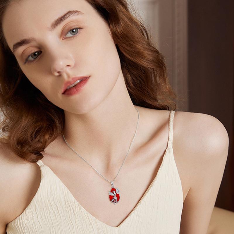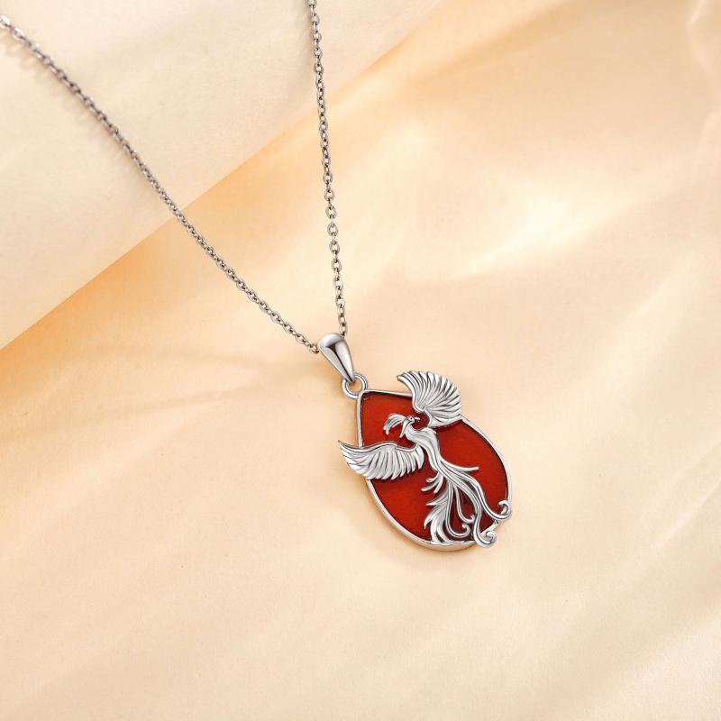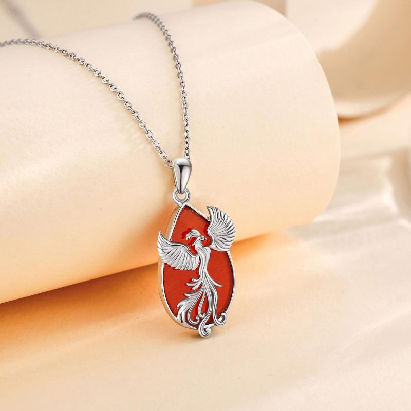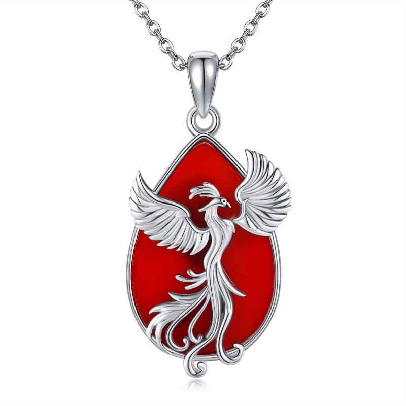 This stunning Phoenix Necklace features a red agate bird pendant crafted from 925 sterling silver. A perfect gift for women who appreciate unique and elegant jewelry.