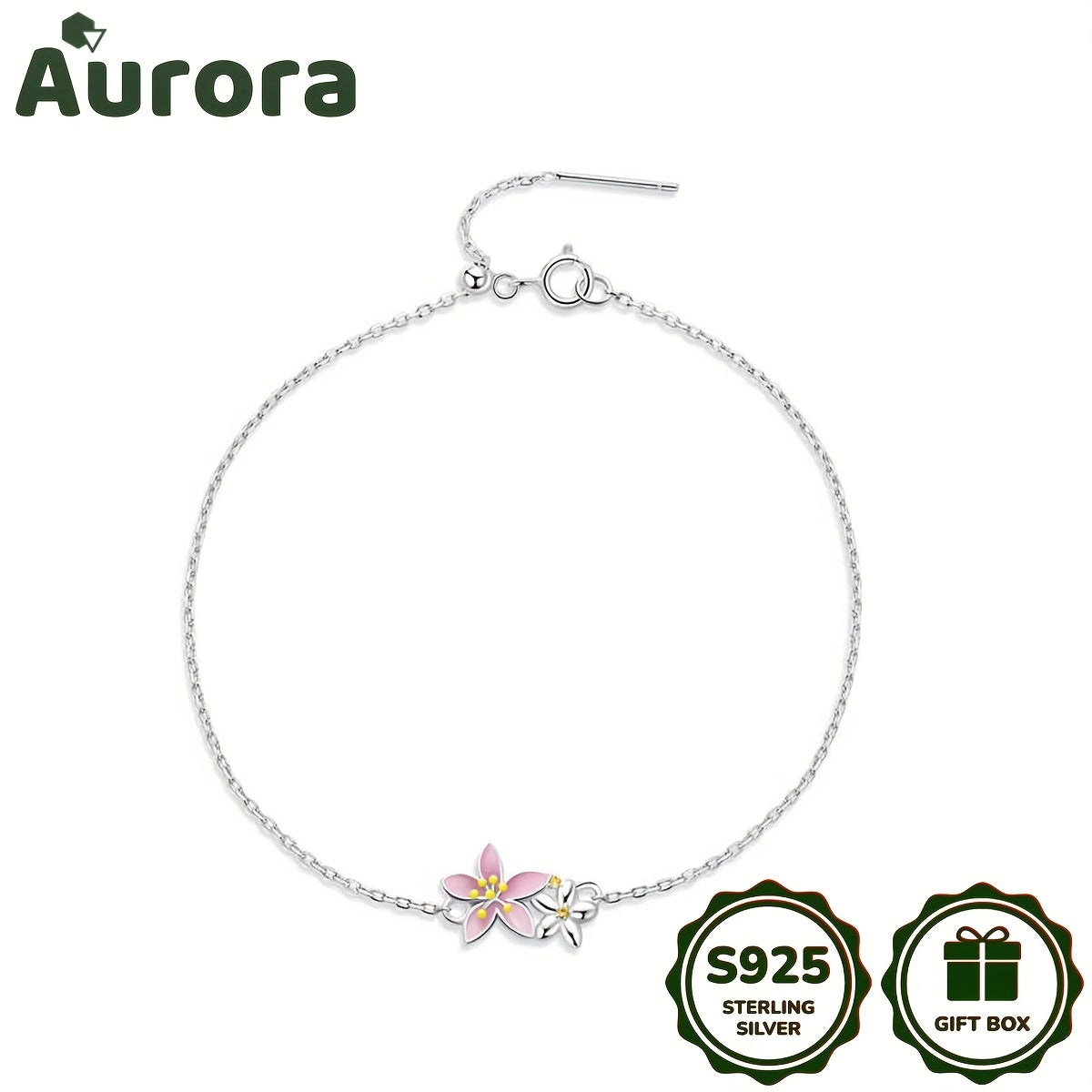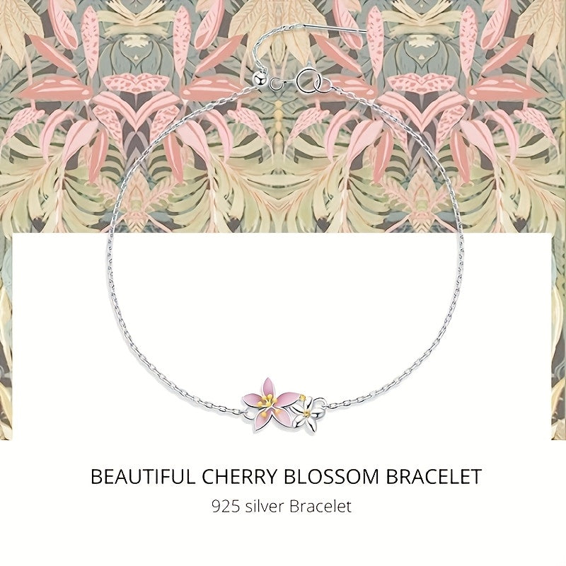 Add a touch of summer to your look with this delicate cherry blossom bracelet. Made with 925 silver and plated with gold, it exudes a gentle and feminine vibe.