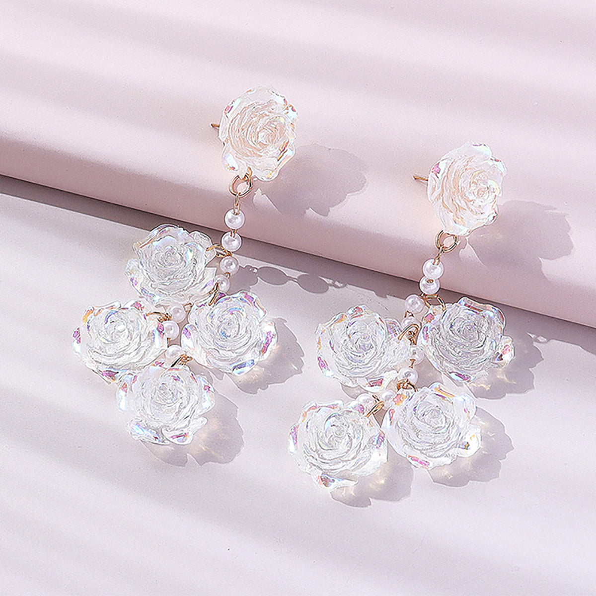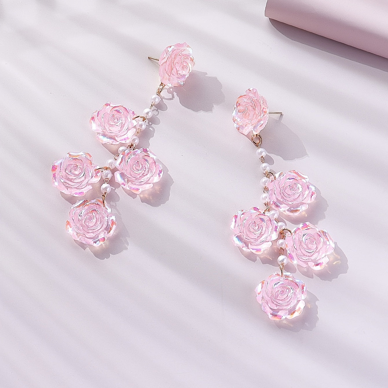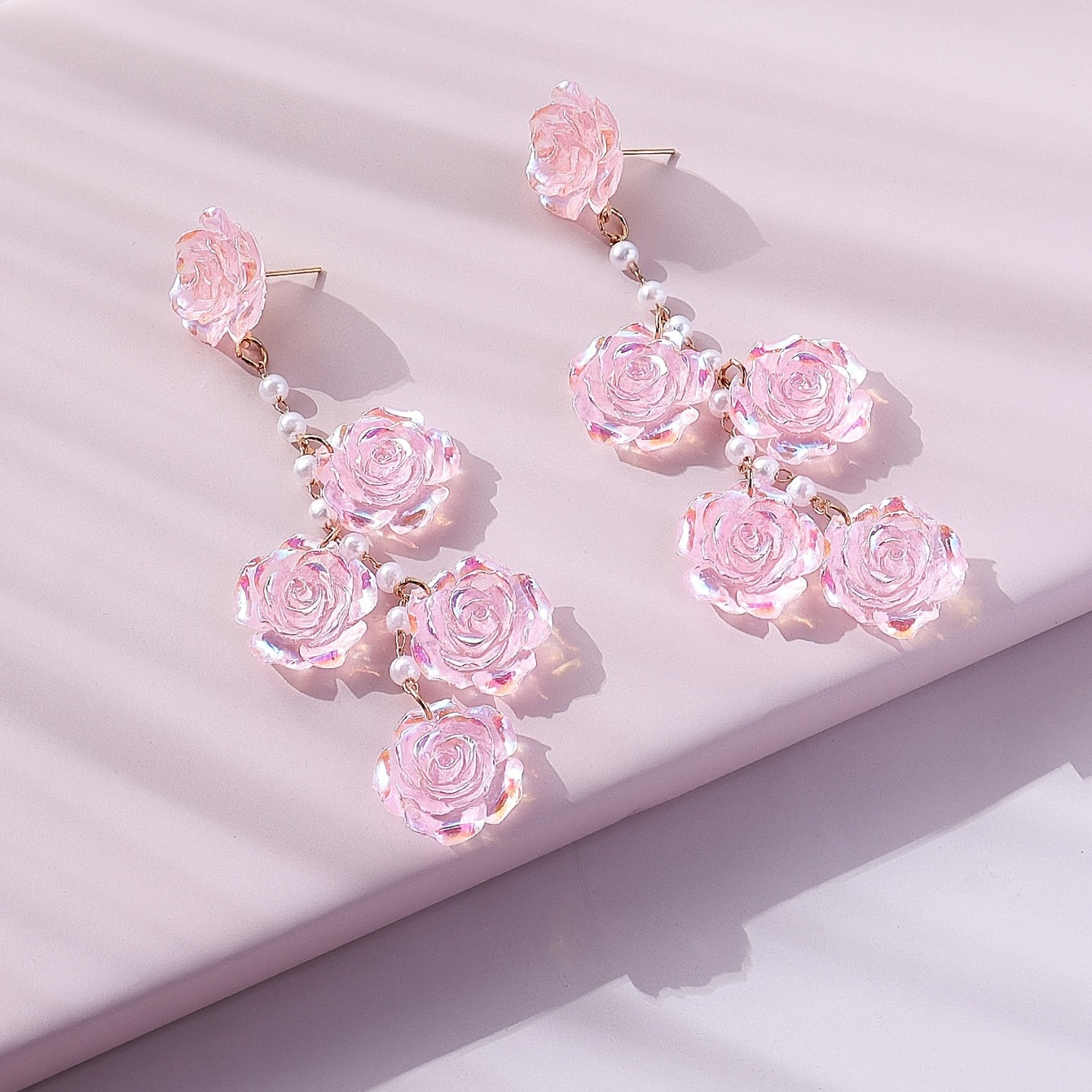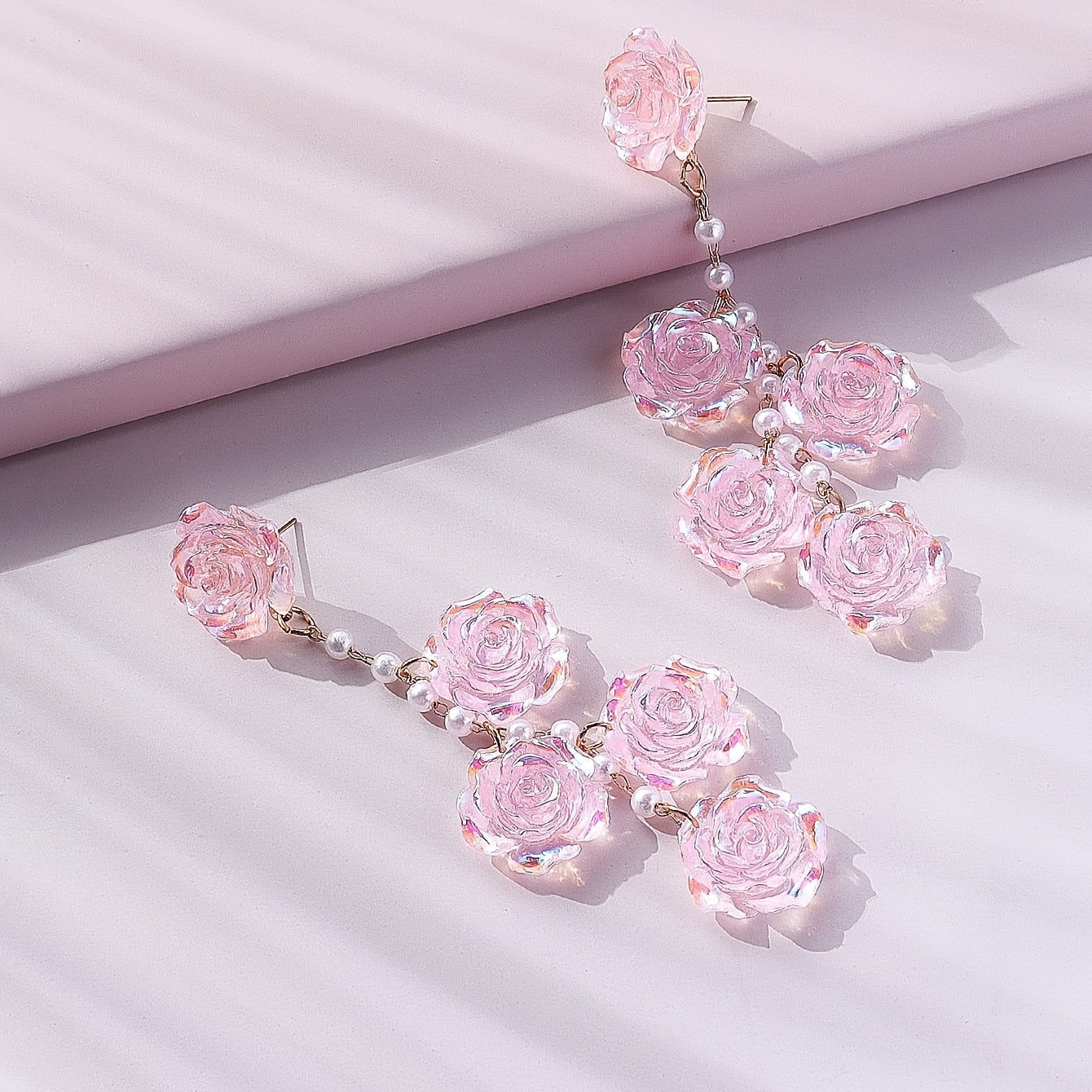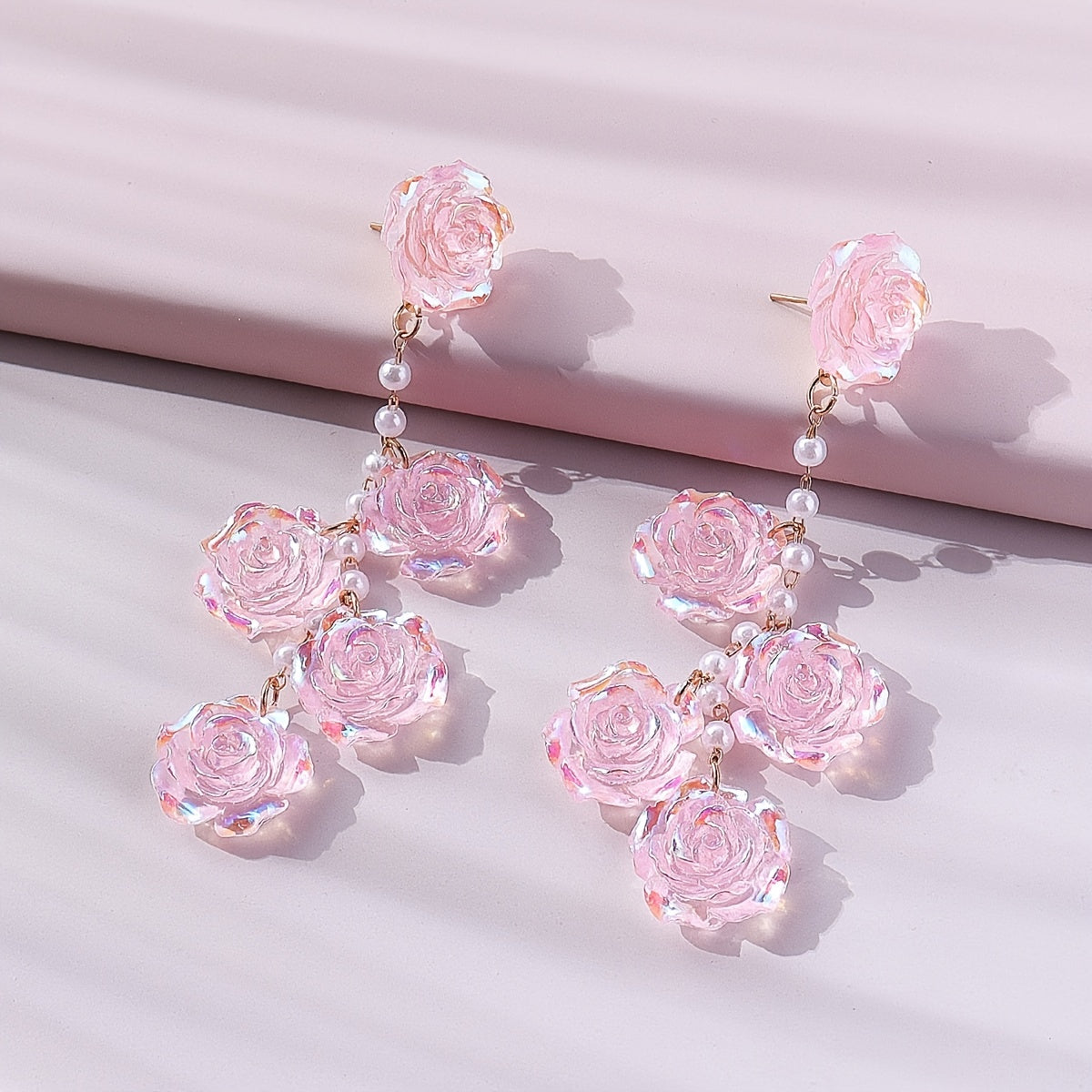 Add a touch of floral elegance to your look with these beautiful pink rose flower earrings featuring faux pearl accents. Perfect for women who love sophisticated and feminine accessories.