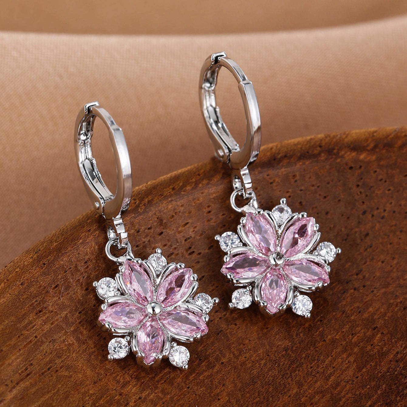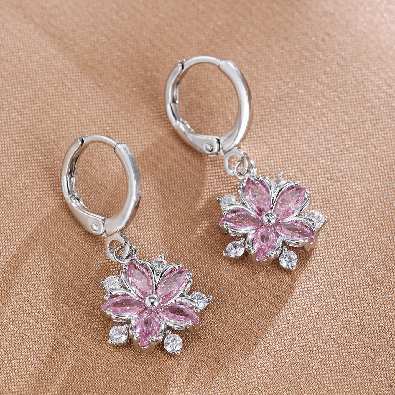 These stunning drop earrings feature pink Sakura zircons that add a touch of elegance to your look. Perfect for any occasion, these earrings are a must-have.