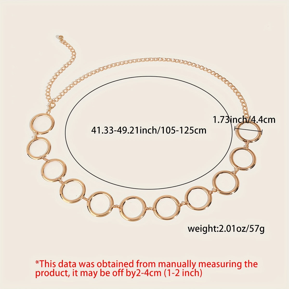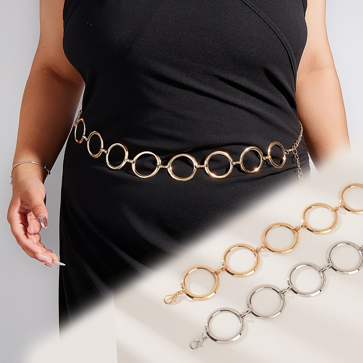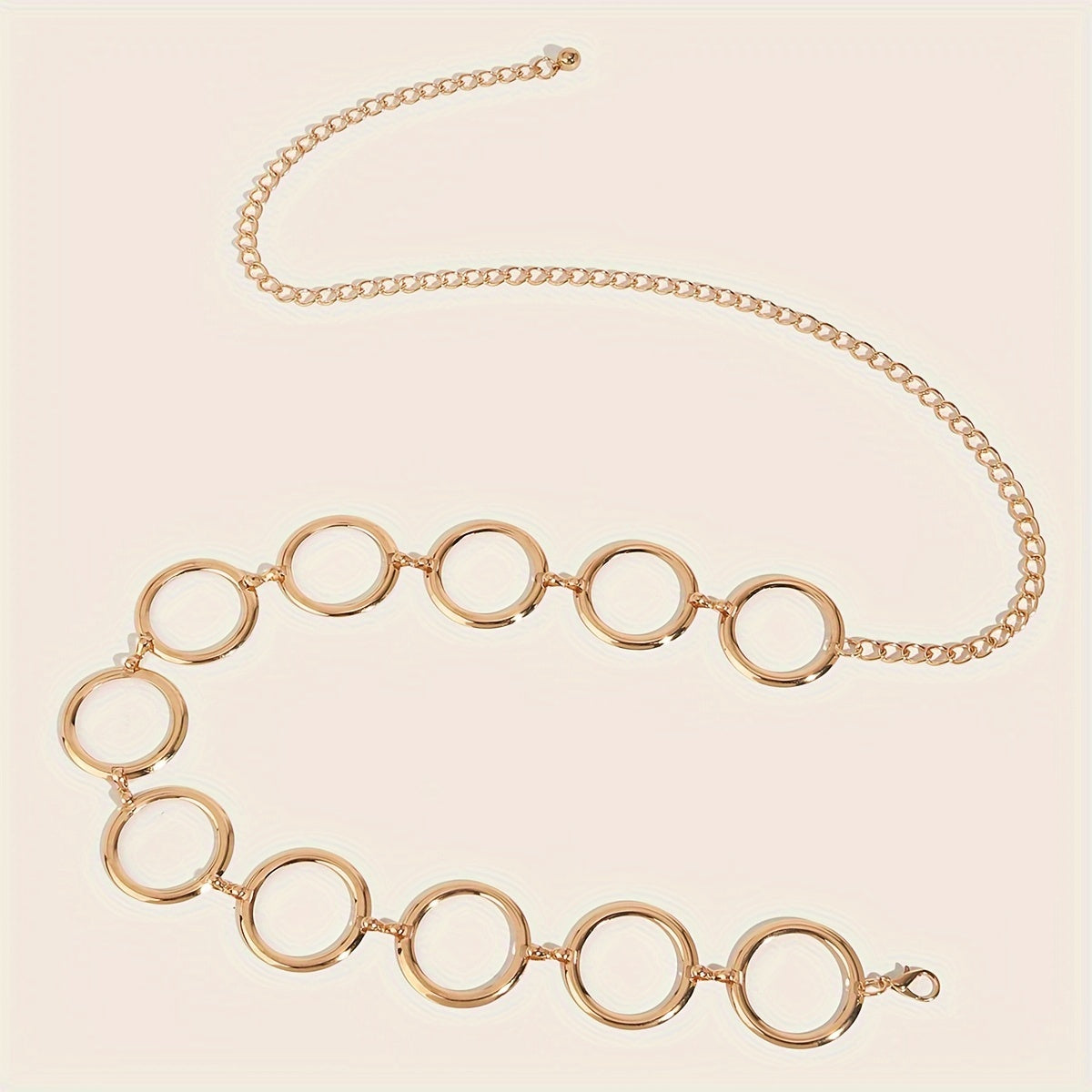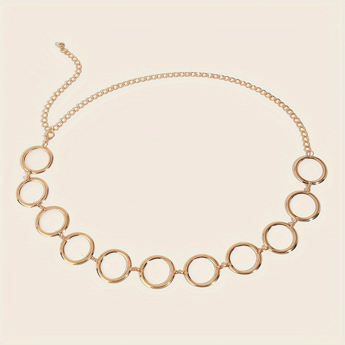Enhance your outfit with this versatile golden chain belt featuring hollow circle design. Perfect for casual outings, weddings, parties, and more.