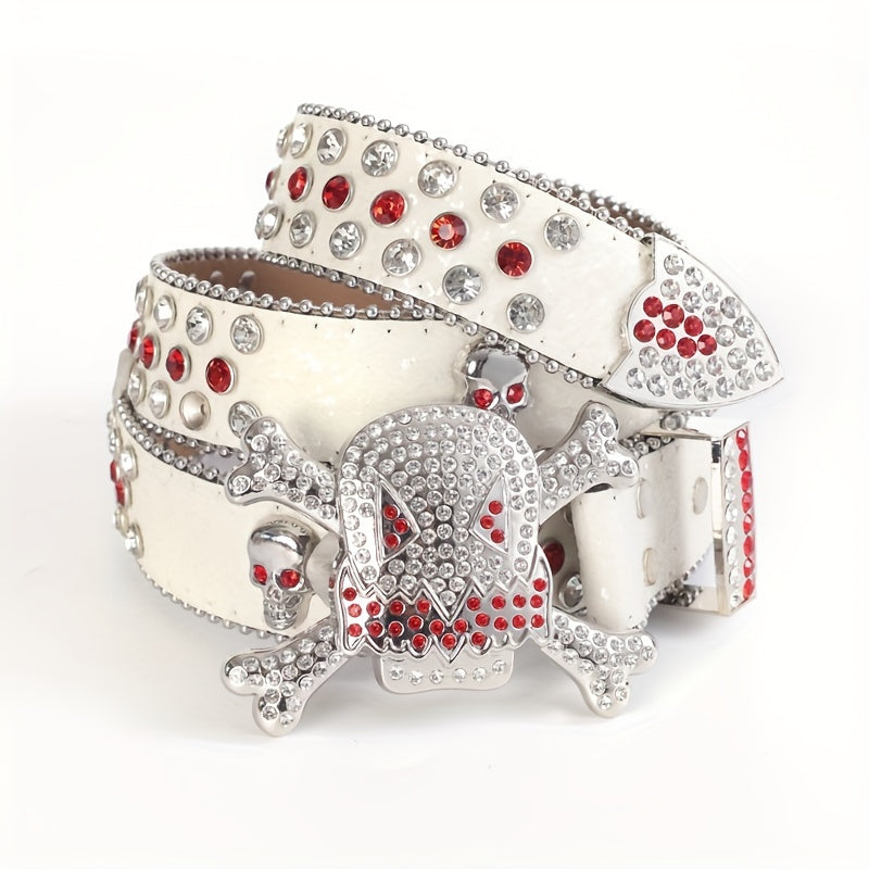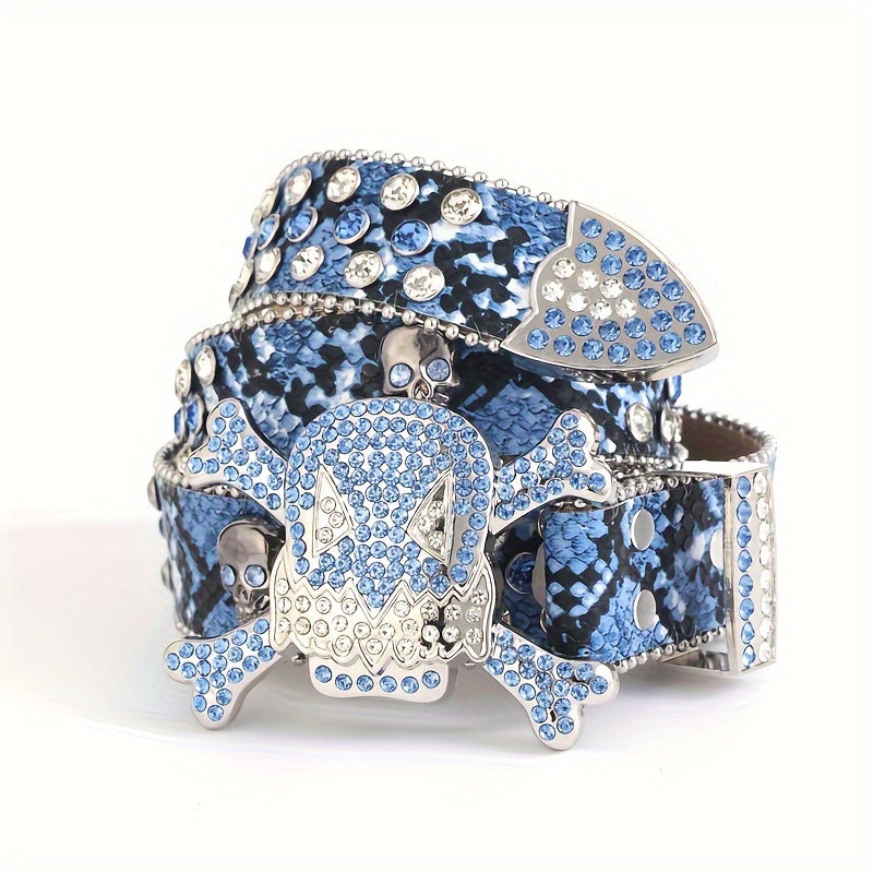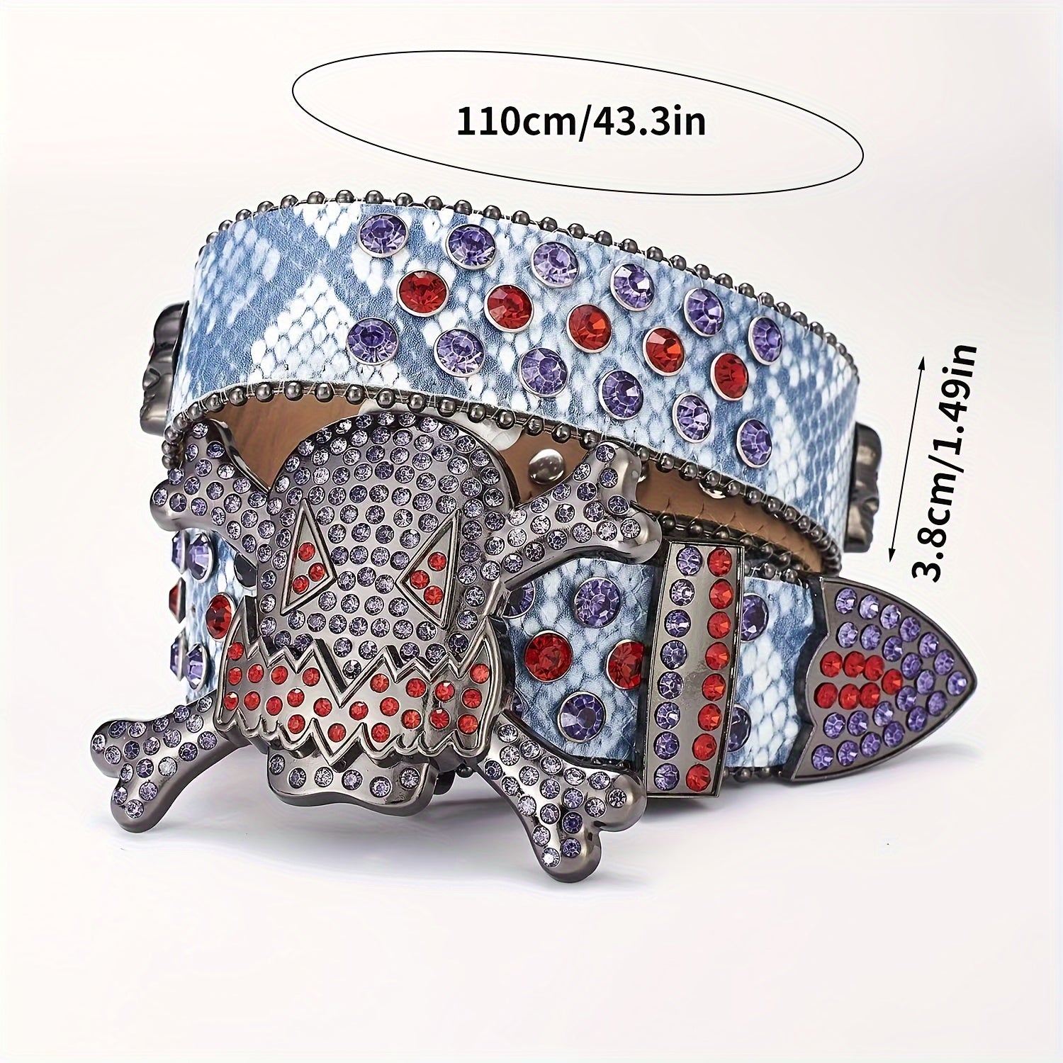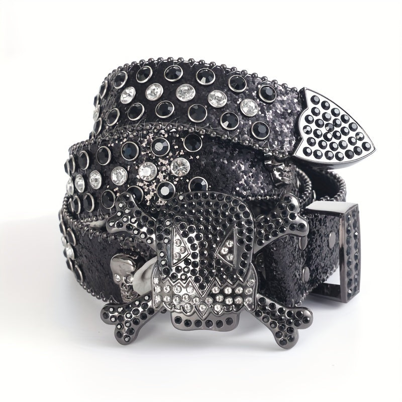 This stylish belt features a punk European and American internet celebrity style design with a skull head hip hop decoration and rhinestones. Perfect for Halloween or adding a unique touch to your outfit.