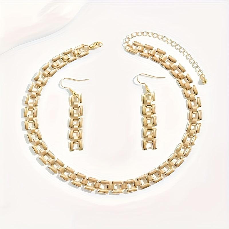 Add a touch of edgy flair to your look with this 14K gold plated zinc alloy jewelry set. Perfect for daily wear or as a gift for someone special.