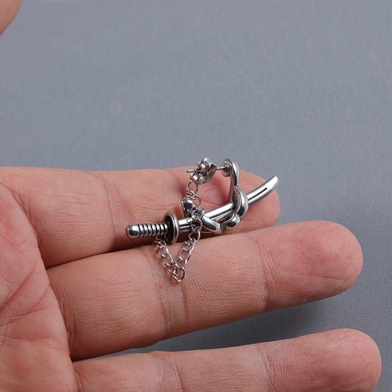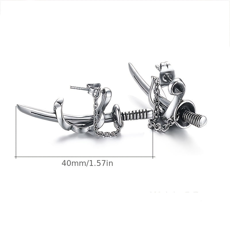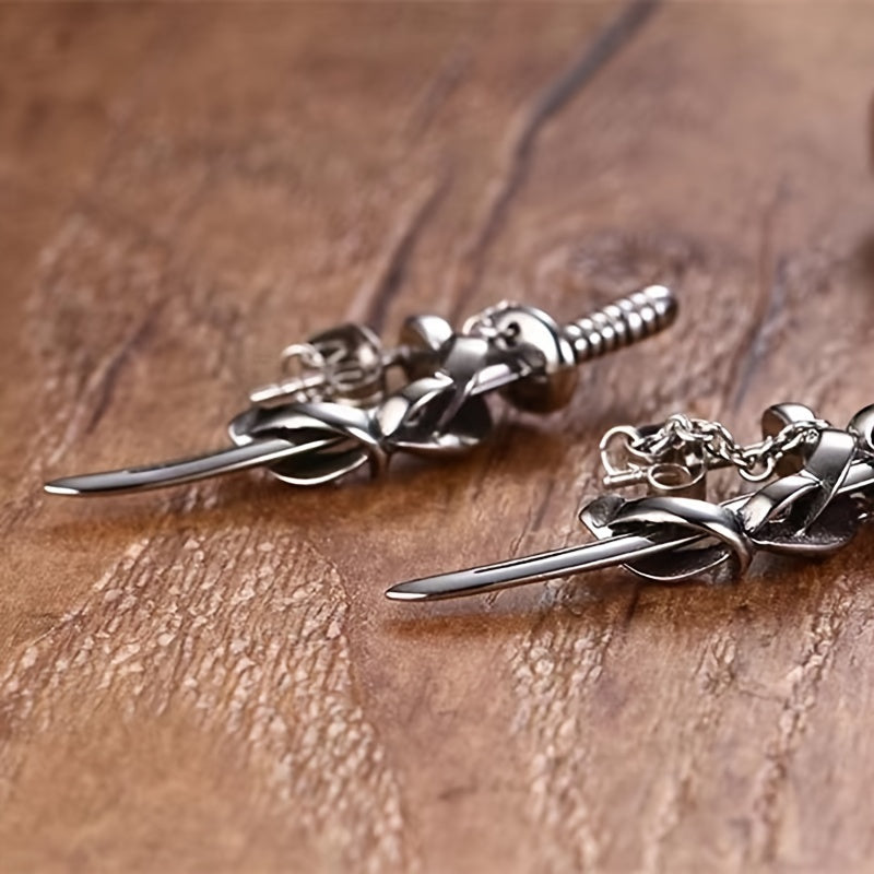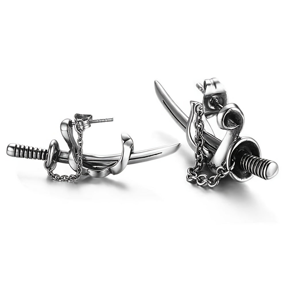 Add a touch of punk style with these unique cross sword chain stud earrings. Perfect gift for men who appreciate edgy accessories.