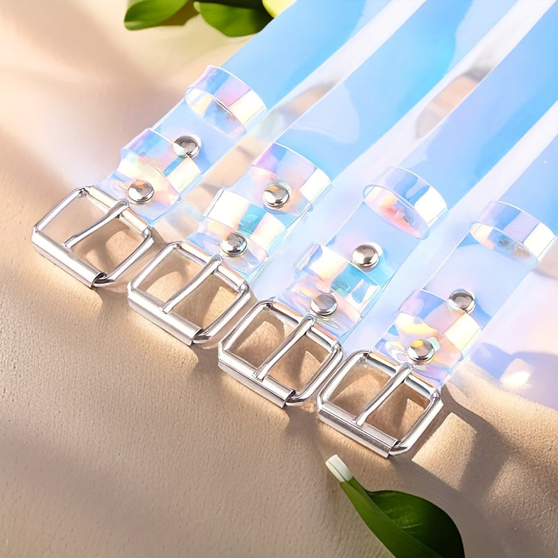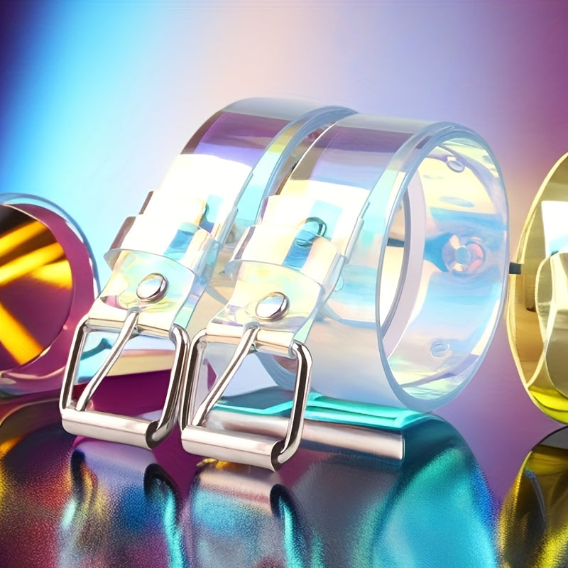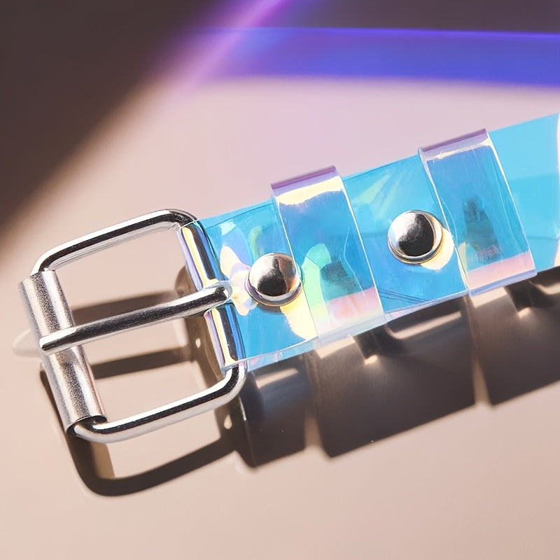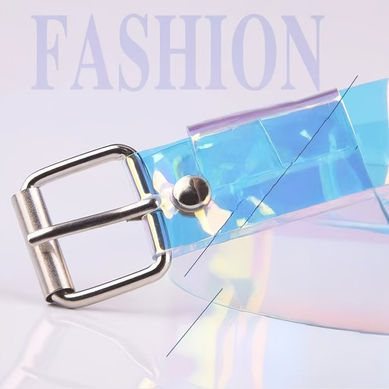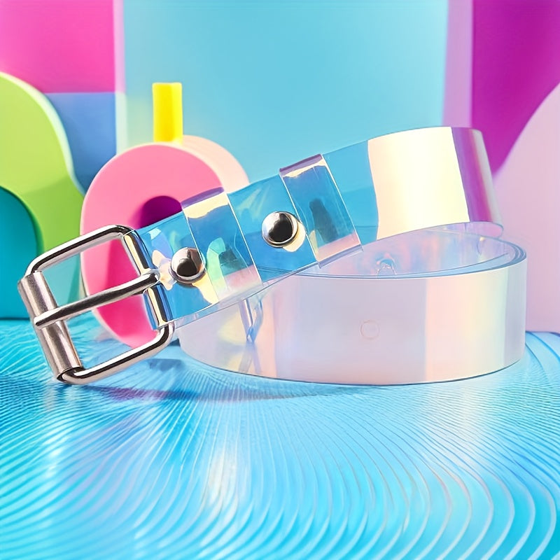 Elevate your casual look with this stylish and colorful transparent plastic belt featuring a punk design. A versatile accessory for various outfits.
