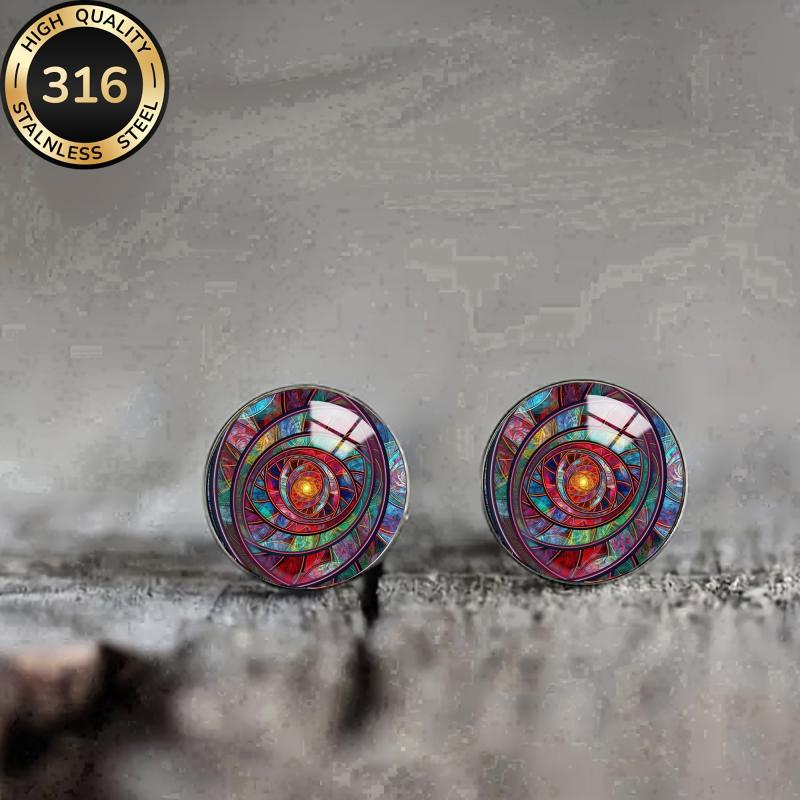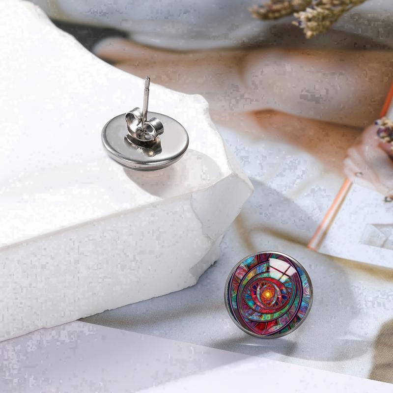 Abstract pop art style earrings in vibrant multicolor. Lightweight and durable 316 stainless steel, suitable for daily wear.