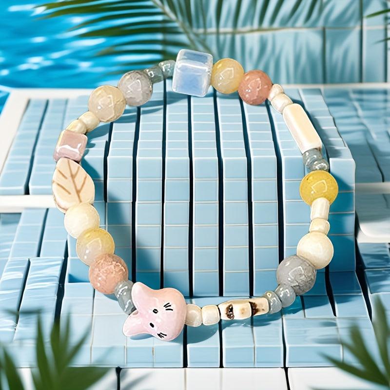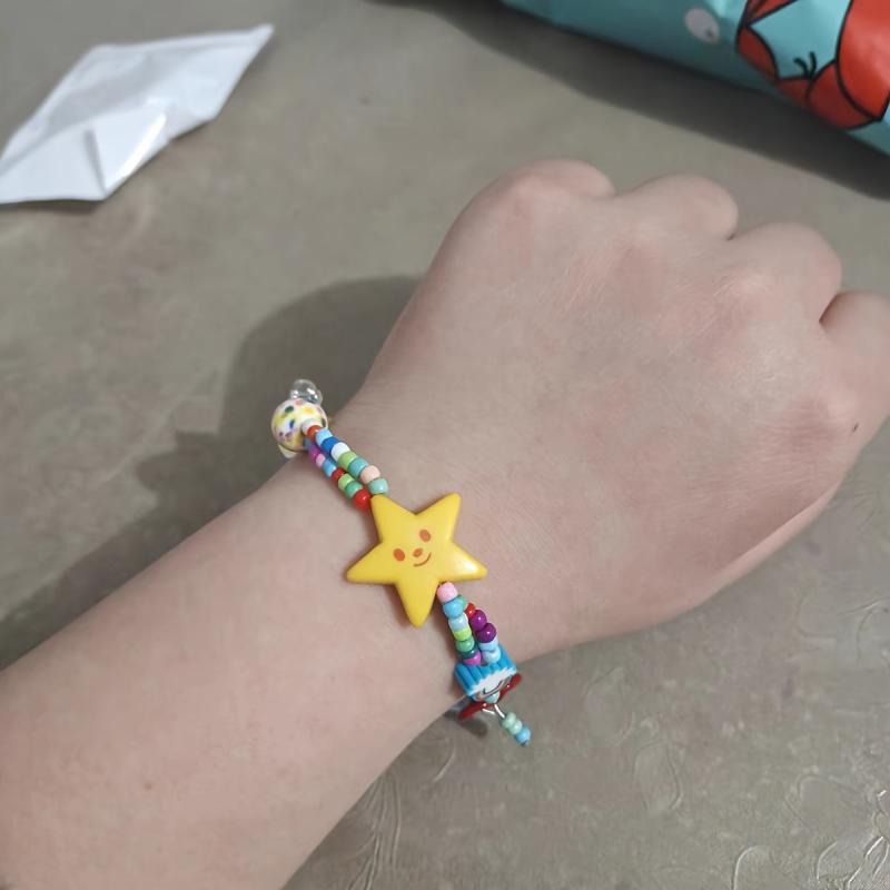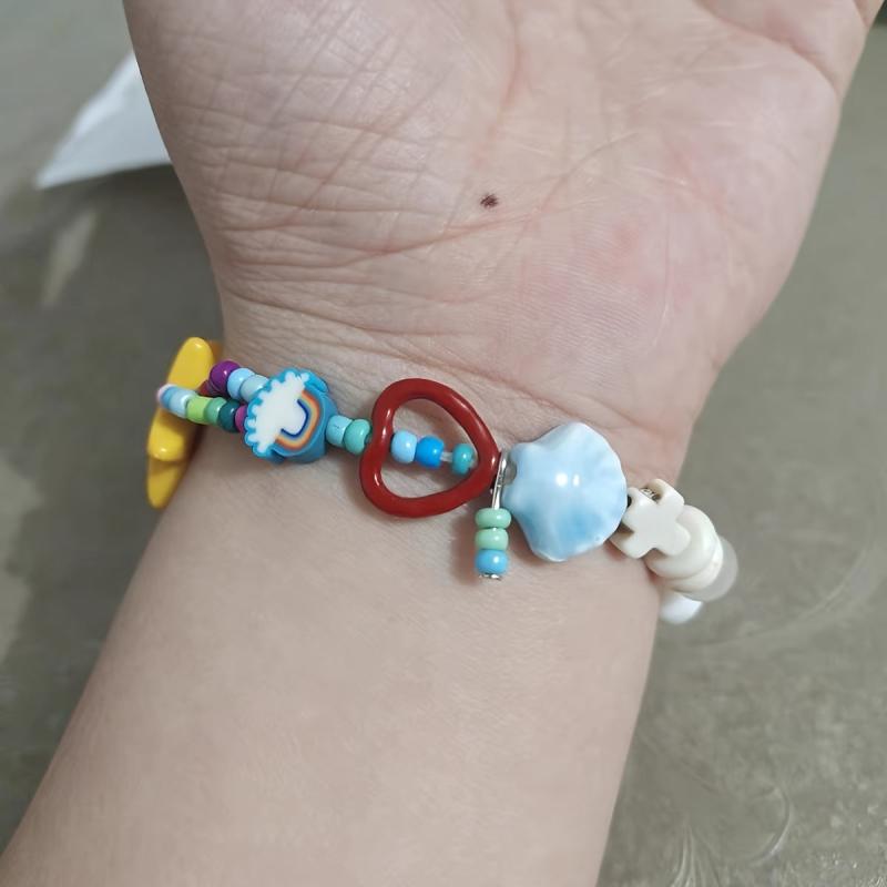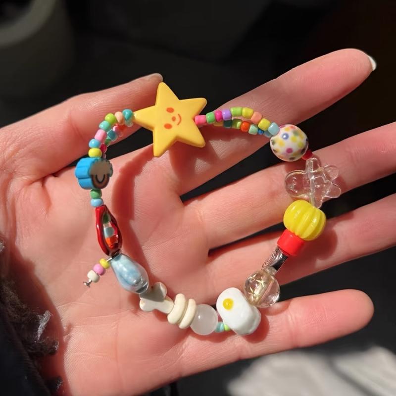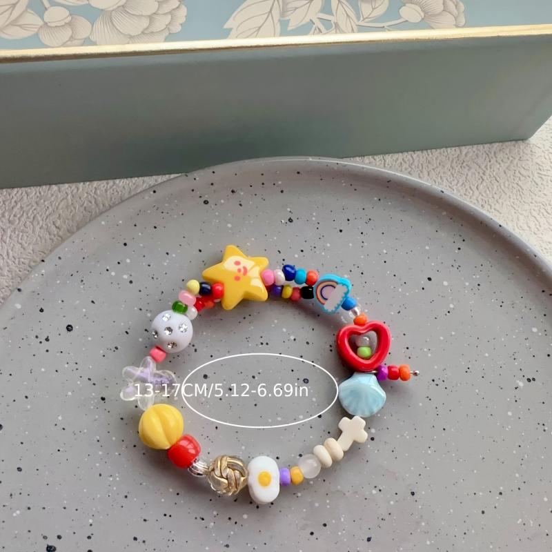 Add a pop of color to your wrist with this playful elastic bracelet featuring rainbow star beads. Perfect for casual attire, this dopamine-inspired accessory is sure to brighten up any outfit.