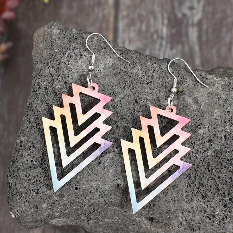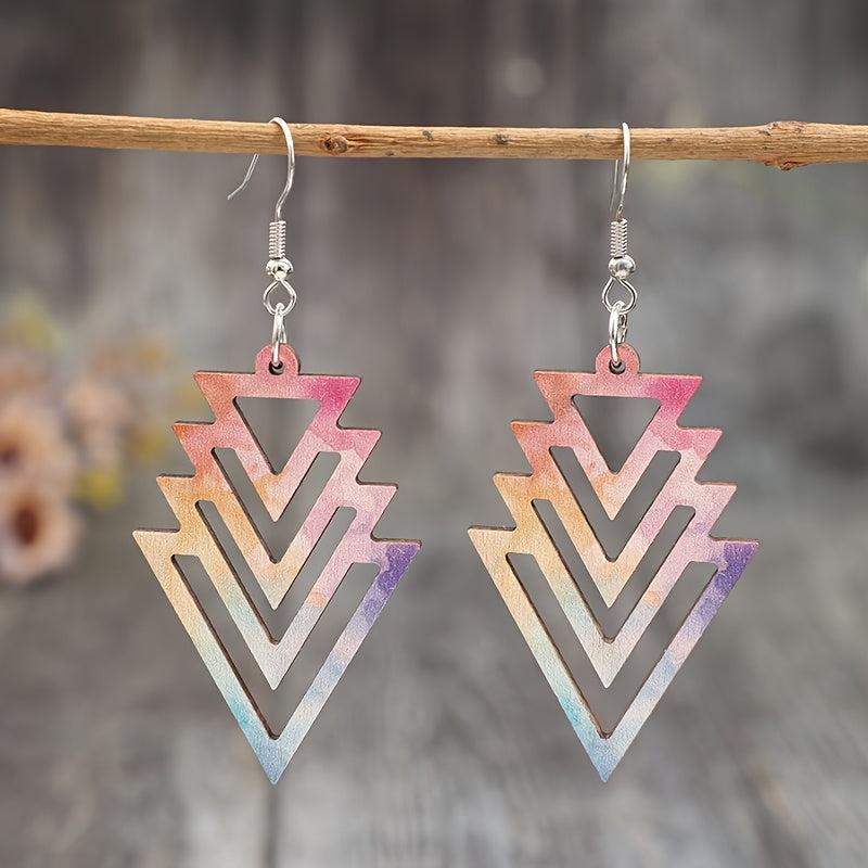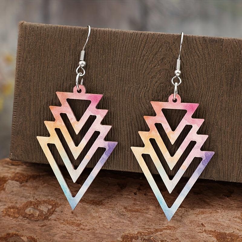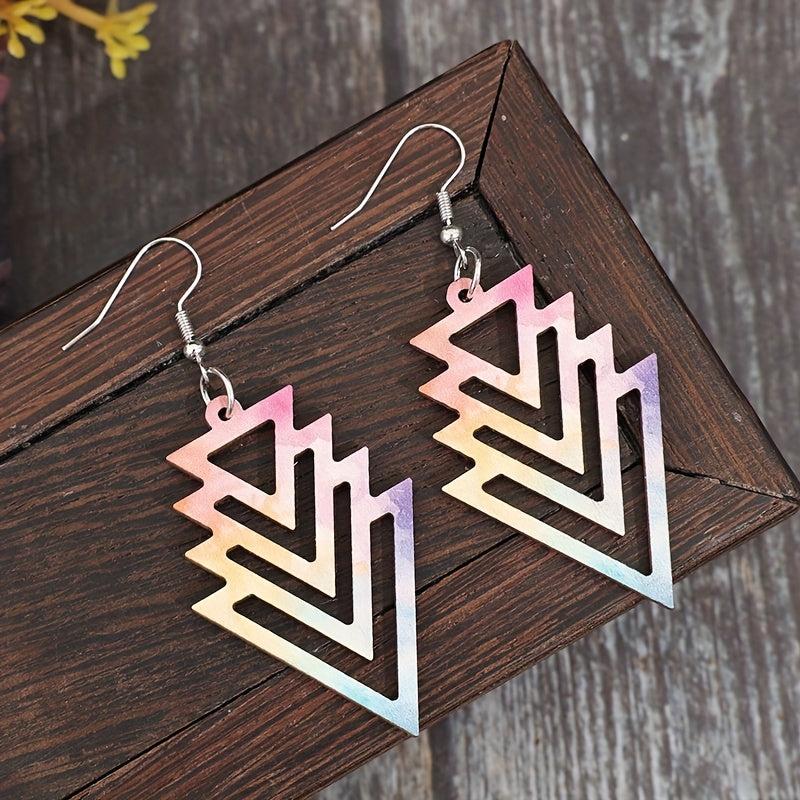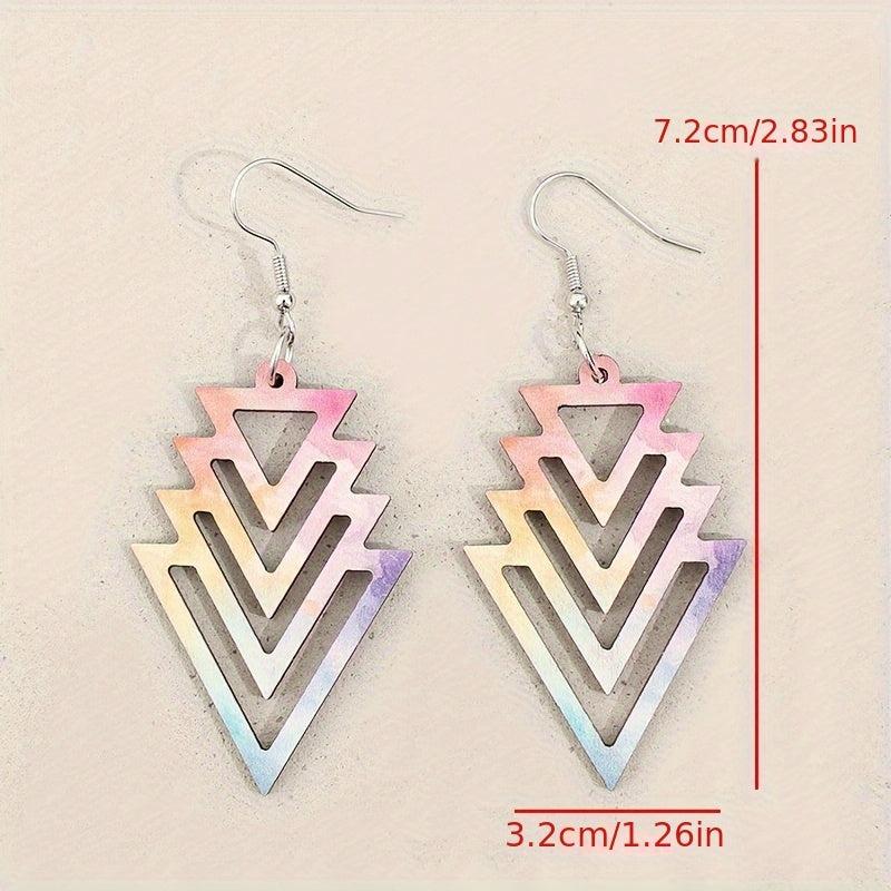 Add a touch of colorful punk fashion with these gradient wood dangle earrings. Lightweight and durable, perfect for casual attire.