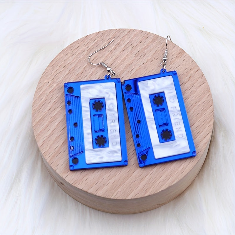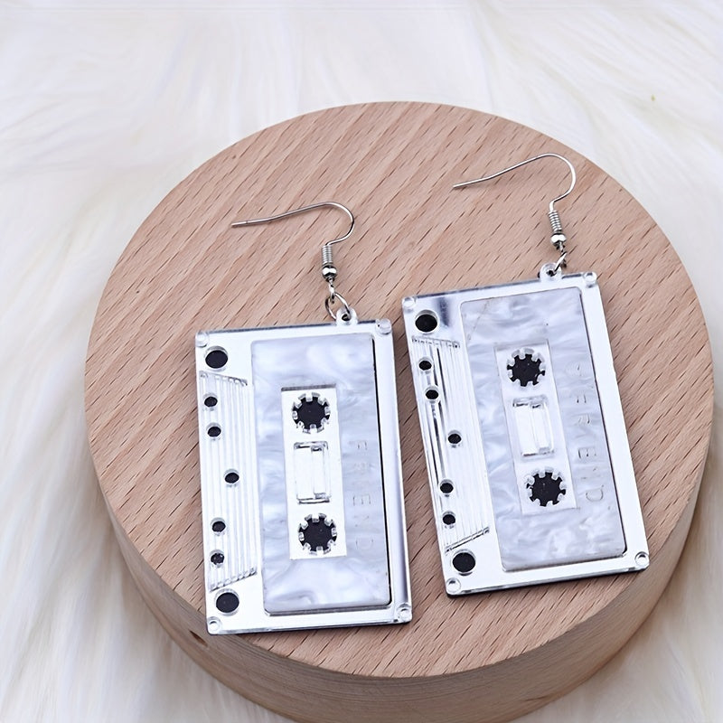 Add a touch of vintage flair to your look with these fun magnetic tape earrings. Perfect for women and girls who love 80s style jewelry.