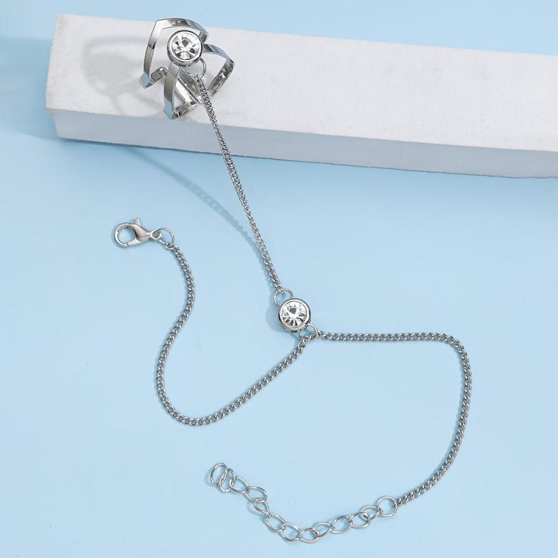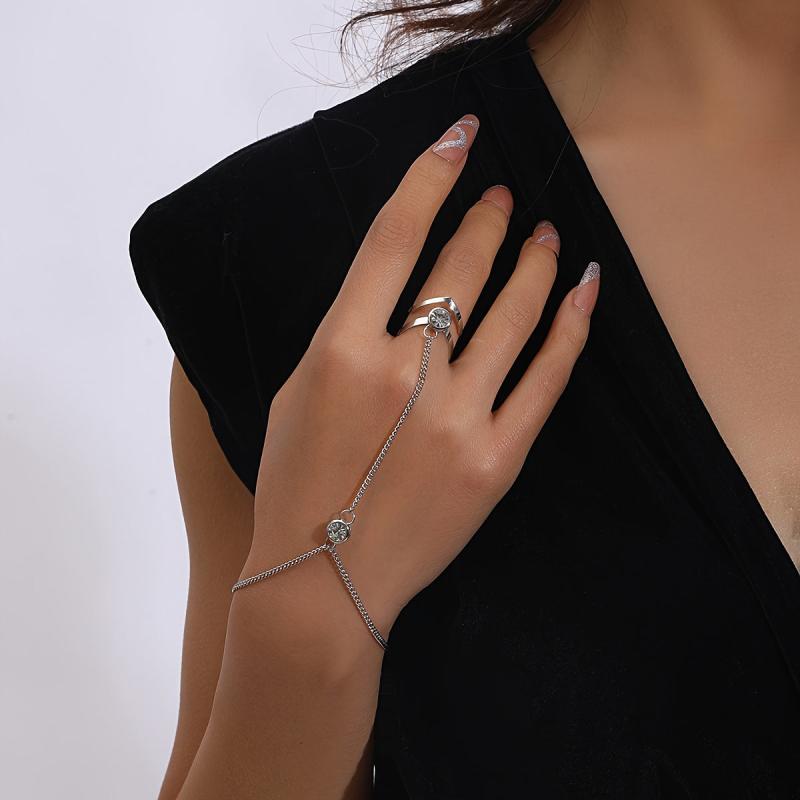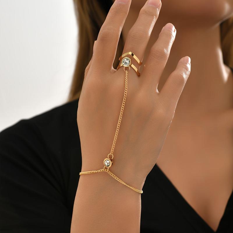 Elegant finger bracelet with inlaid rhinestones, perfect for daily wear or parties.