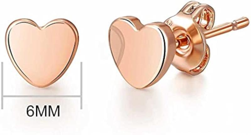 Add a touch of elegance to your look with these rose gold heart stud earrings. Perfect for everyday wear, these dainty earrings feature a butterfly closure for a secure fit.