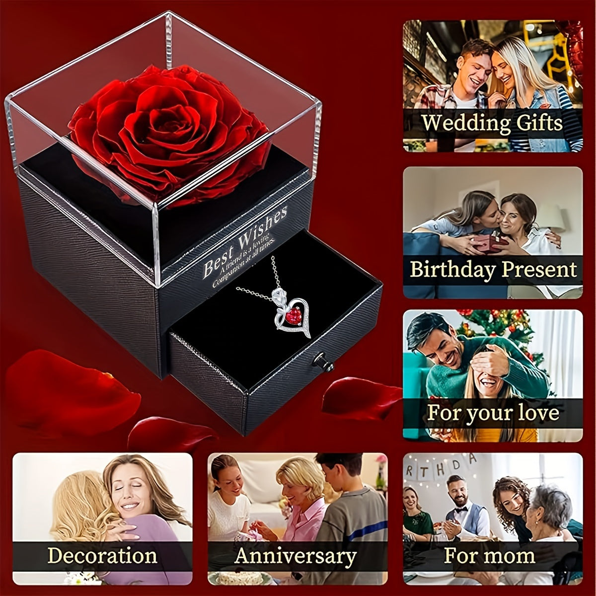 Beautiful heart-shaped pendant necklace featuring a rose design. This piece makes a perfect gift for mom, wife, lover, daughter, or girlfriend to show your love and appreciation.