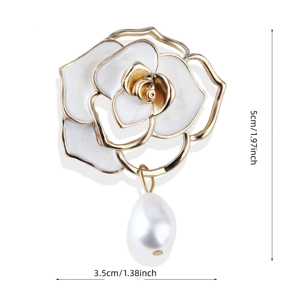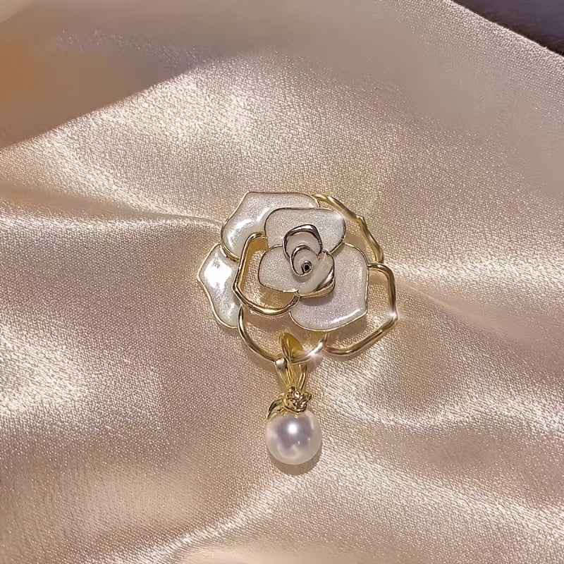 Elegant and stylish rose lapel pin featuring a pearl in the center. Perfect accessory for women and girls.
