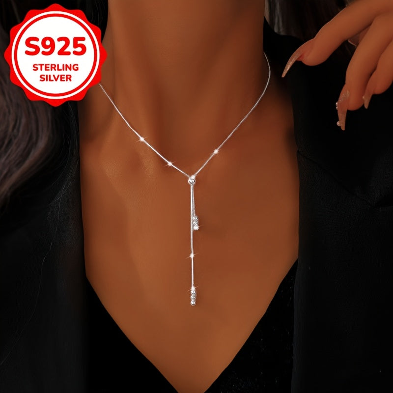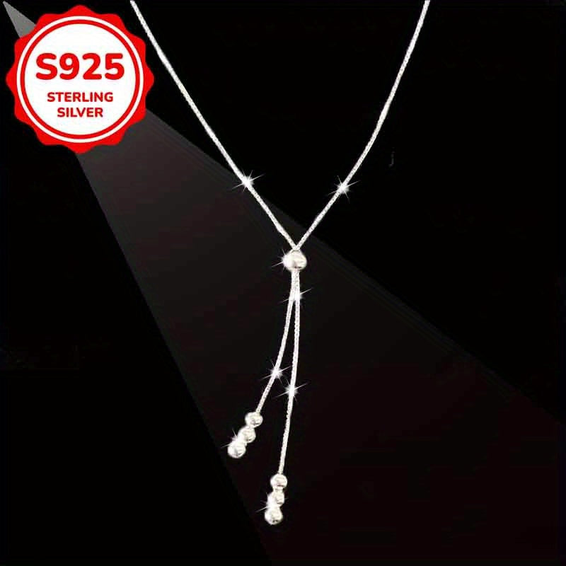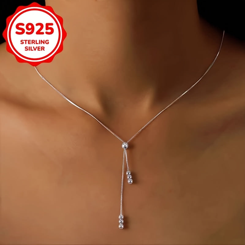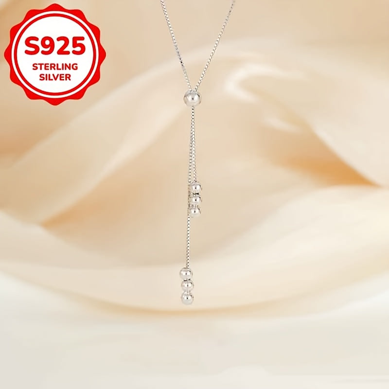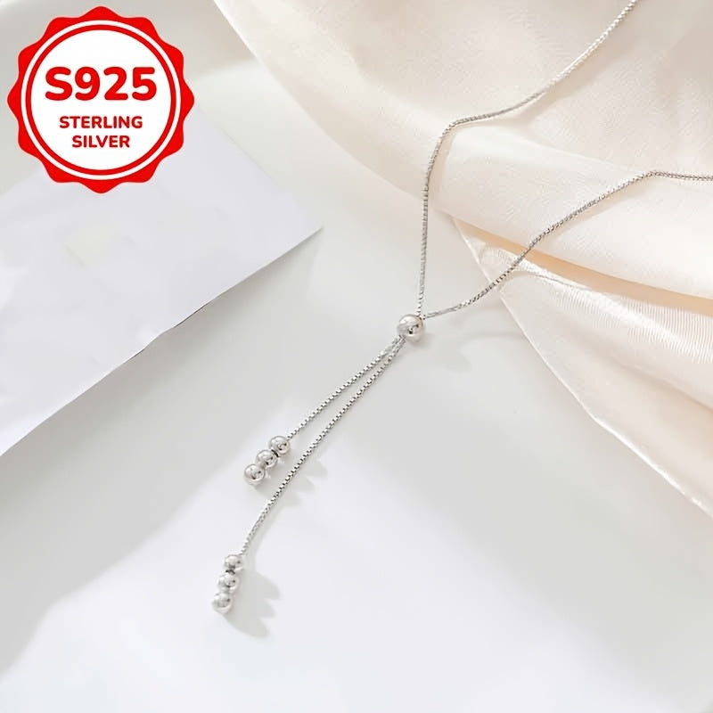 This Y shaped necklace features a round bead design and adjustable length, making it versatile and fashionable. It is lightweight at only 2g.