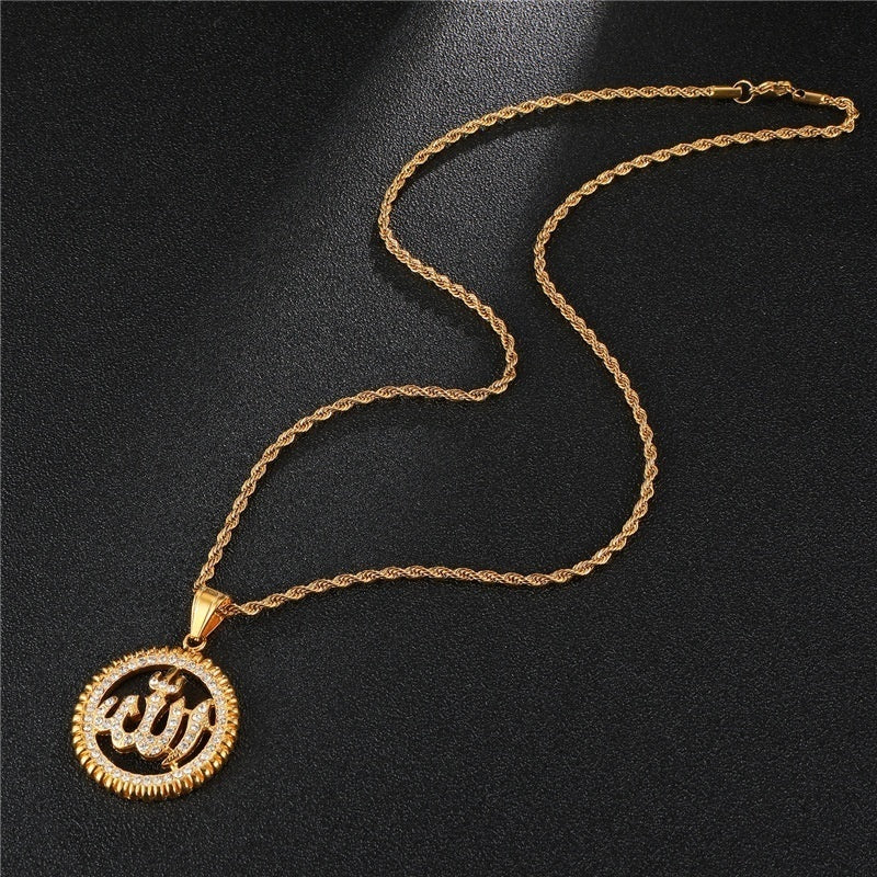 Add a touch of elegance to your outfit with this round pendant necklace featuring a beautiful golden pendant.
