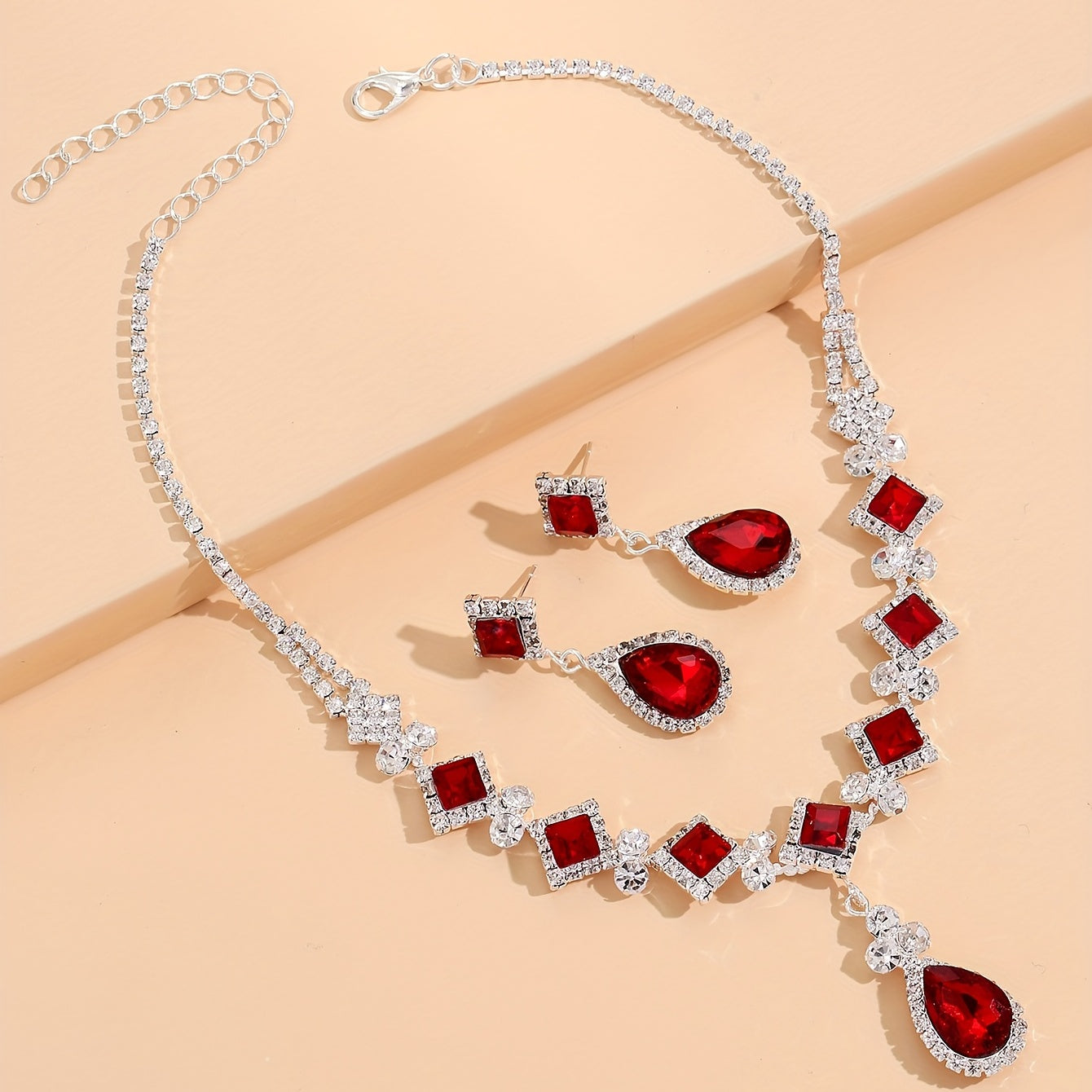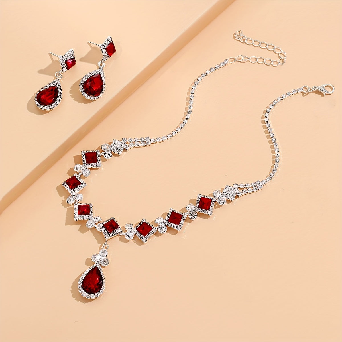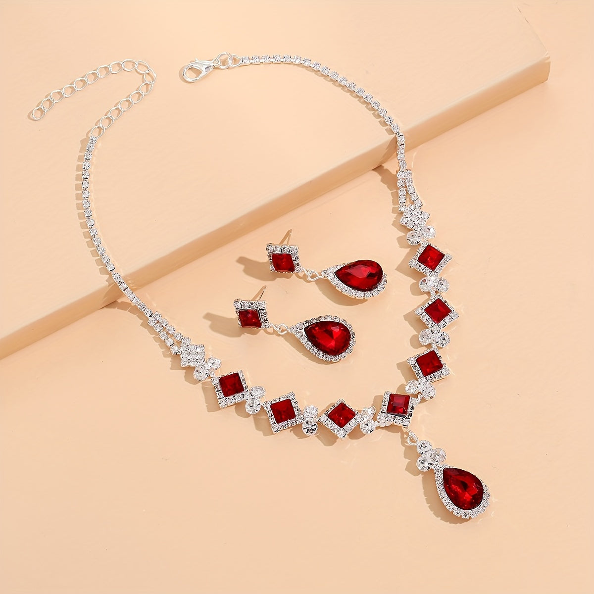 Complete your party look with this stunning ruby pendant necklace and earring set. A perfect birthday gift for her!