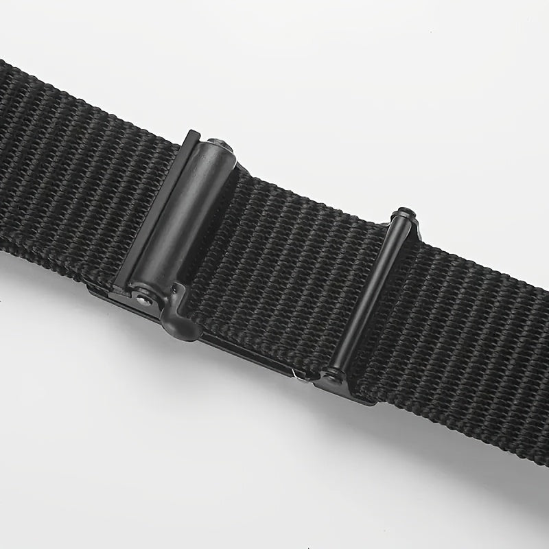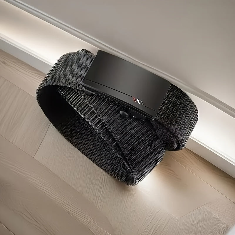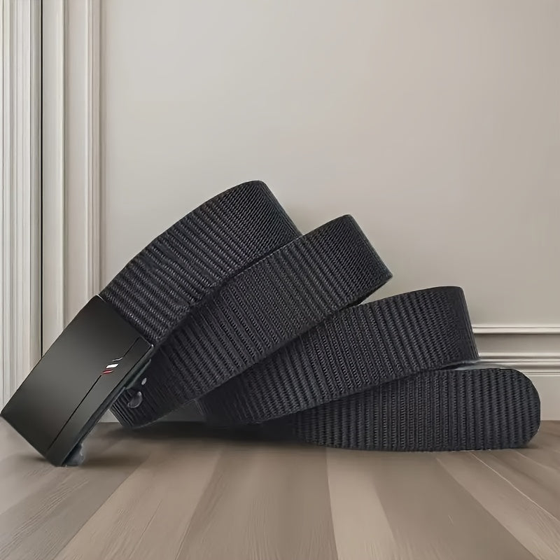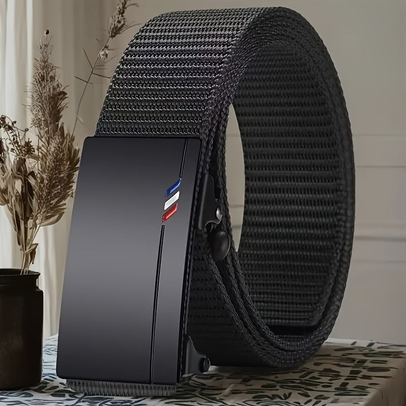 This versatile belt is made of polyester fiber with a textured plastic buckle. It is suitable for both business and leisure wear, offering durability and style.
