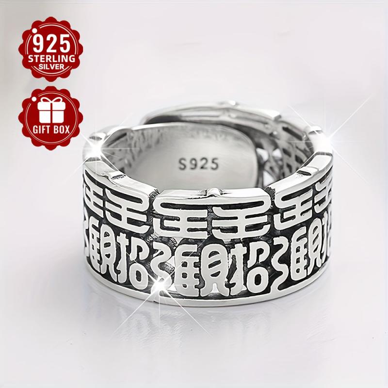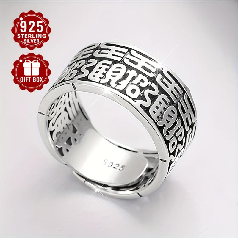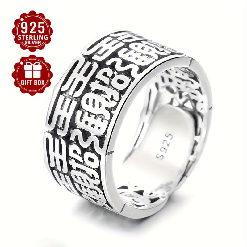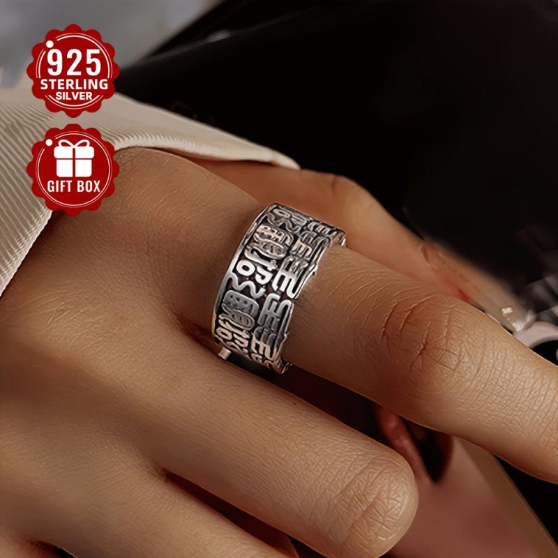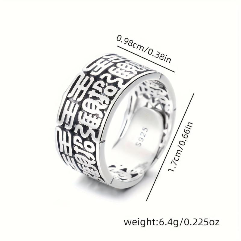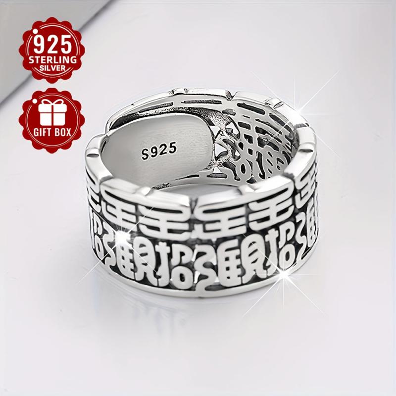 This wide version ring is made of pure S925 silver and features a Chinese character attracting wealth and good meaning. It is suitable for both men and women to wear on the index finger.