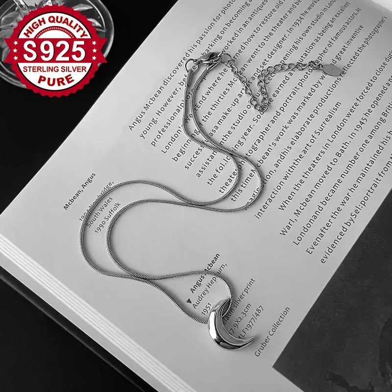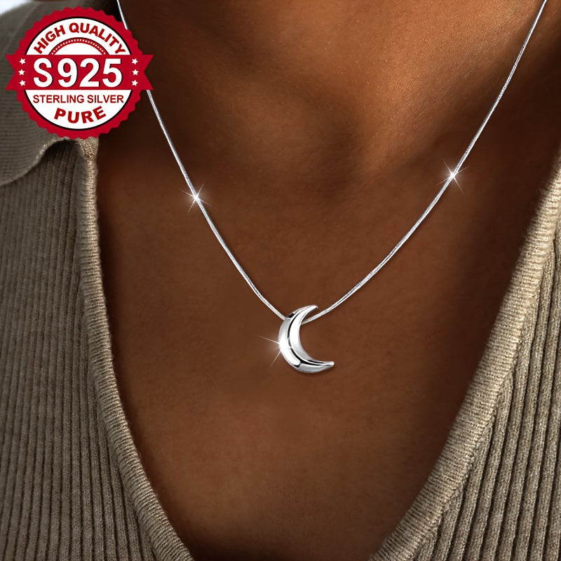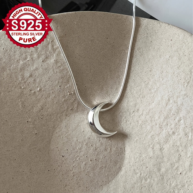 This S925 silver pendant necklace features a moon theme, making it a classic piece suitable for various occasions. It is low allergy and lightweight, perfect for daily wear.