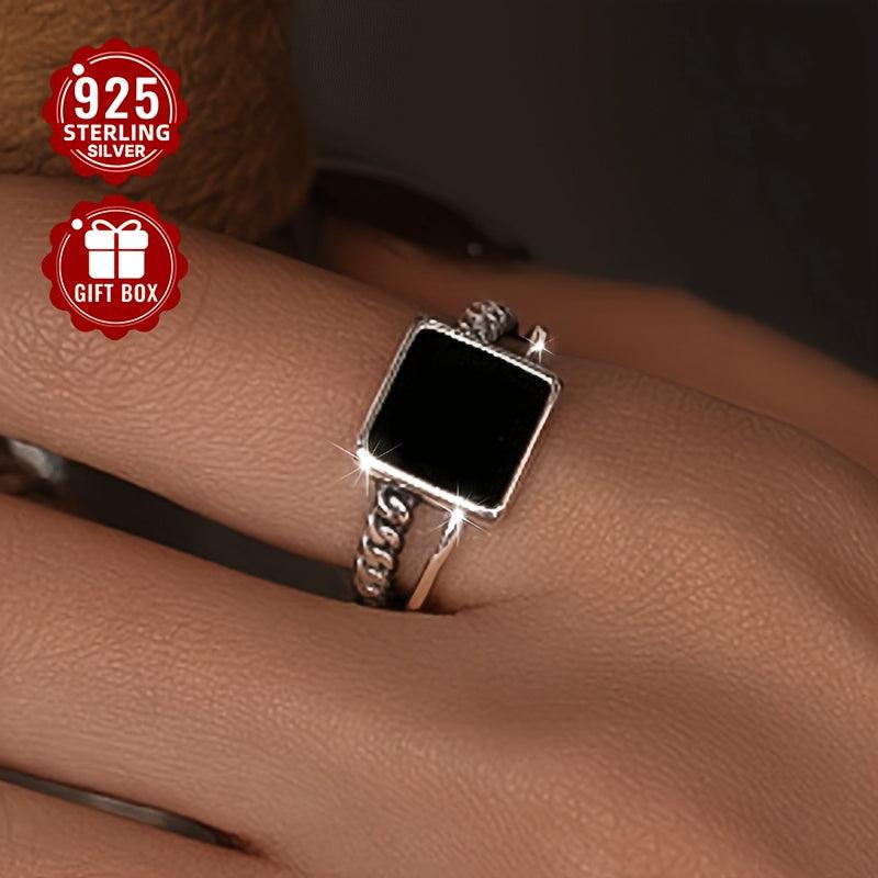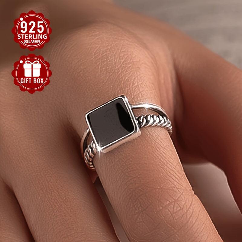 This stylish square ring is made of pure silvery face and weighs approximately 3g. Perfect for an edgy, urban look.