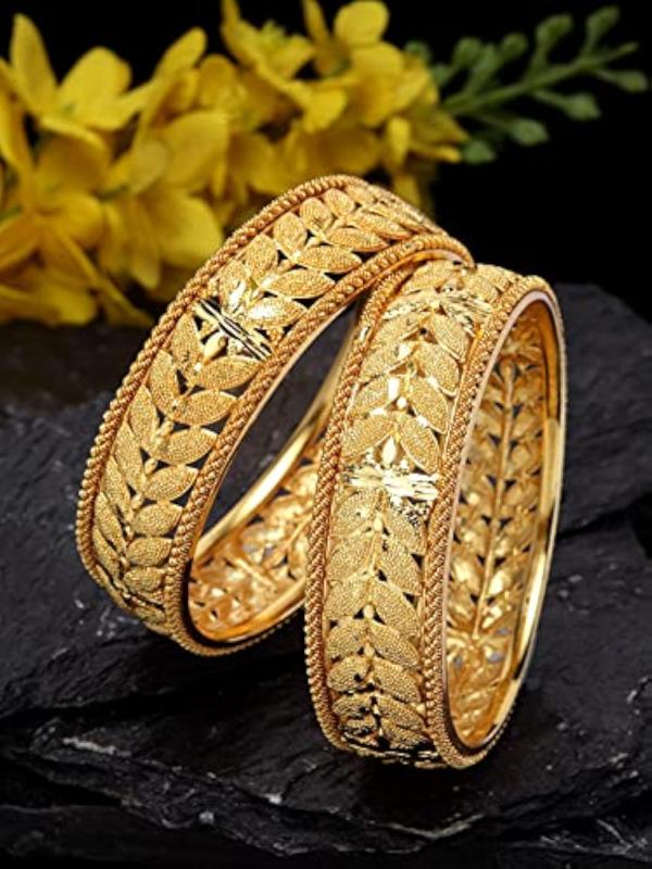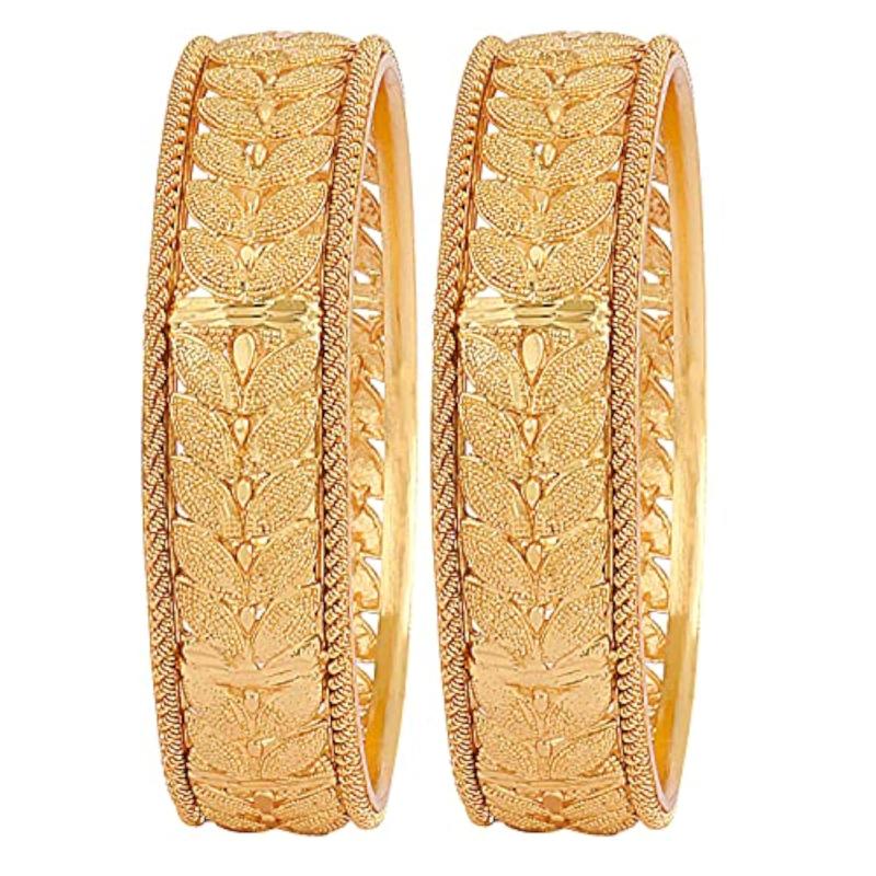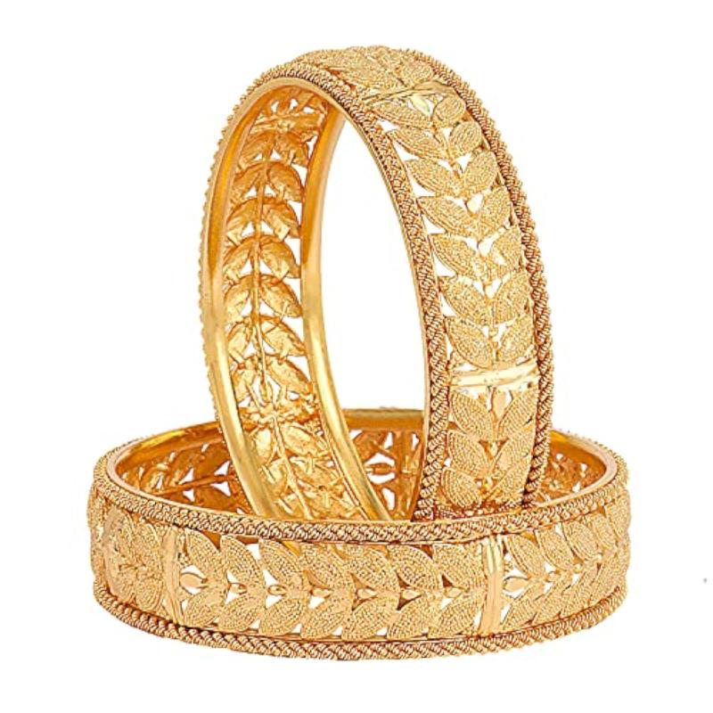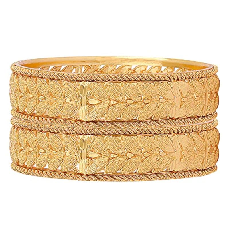 Elevate your ethnic look with this set of 2 stylish plated bangles. The latest design adds a touch of tradition to any outfit.
