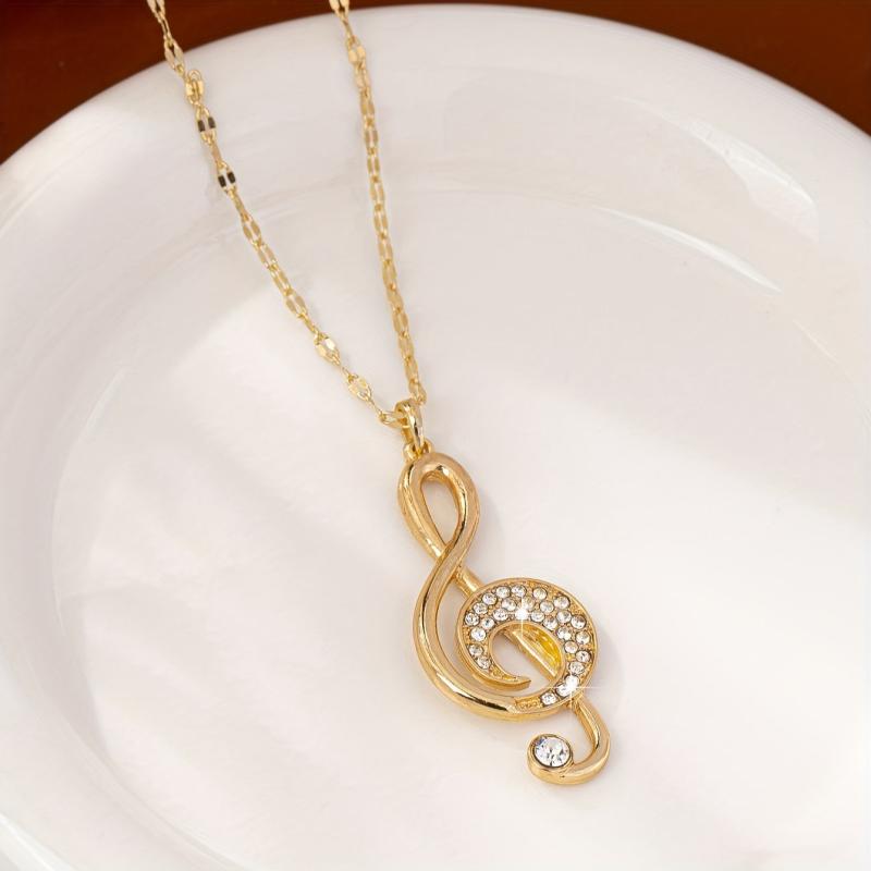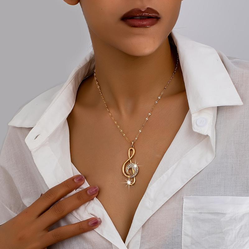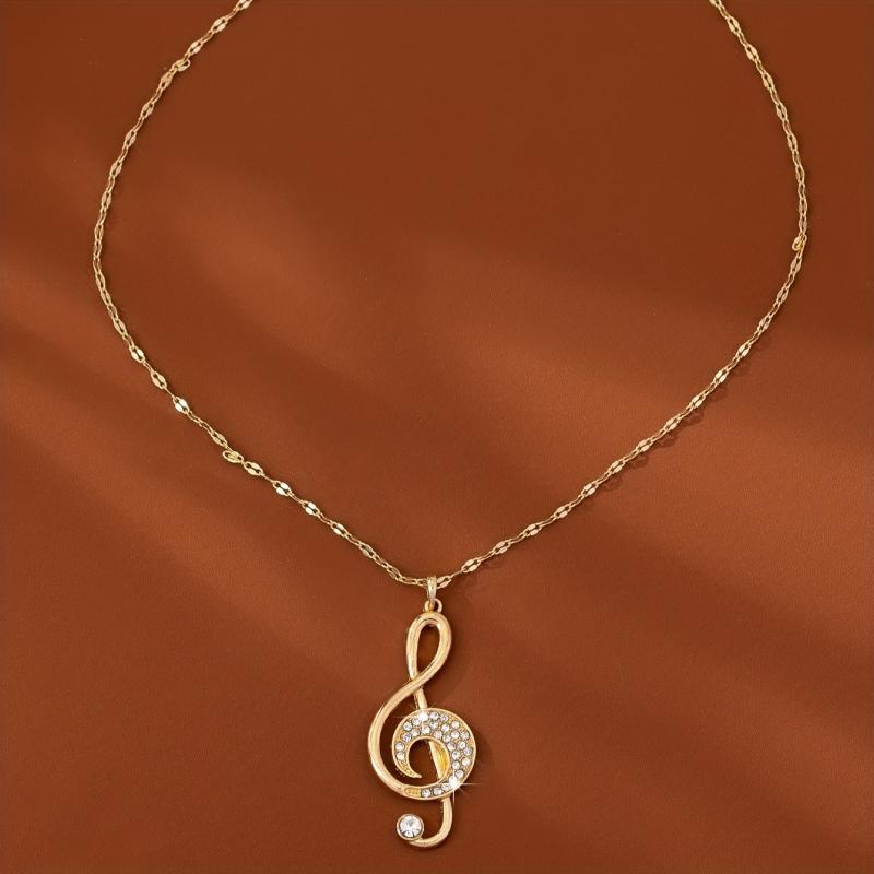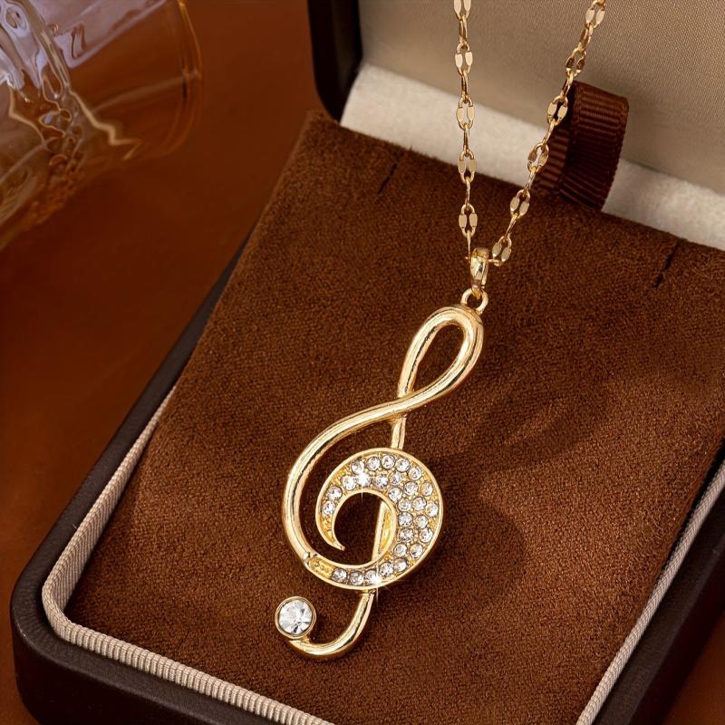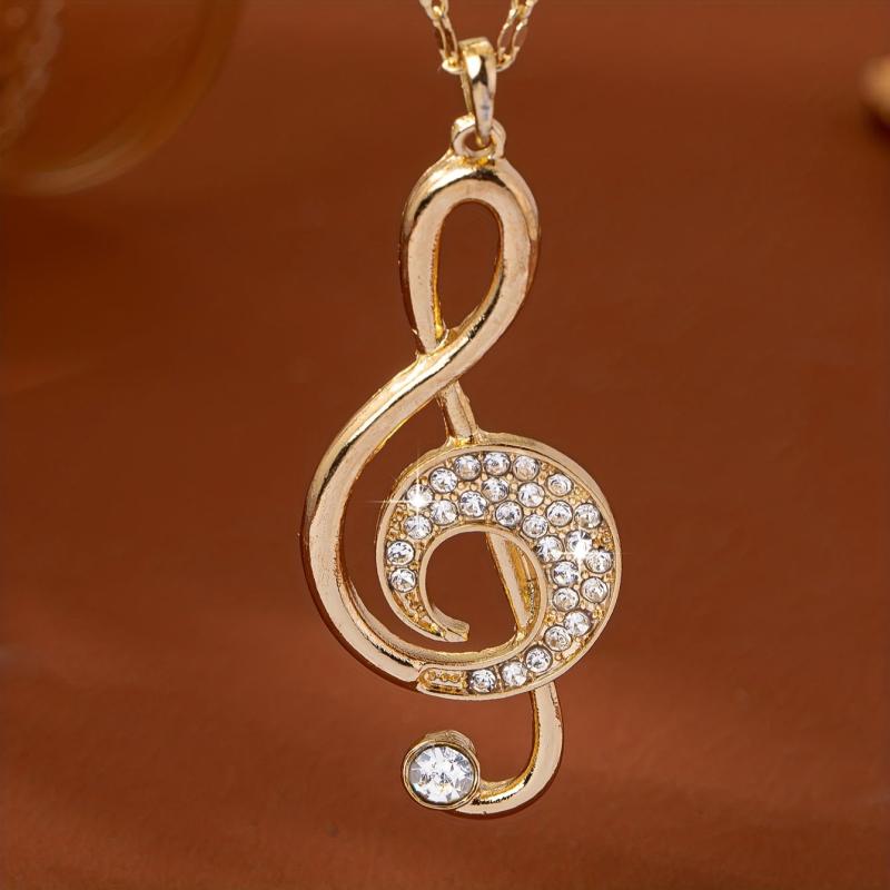 This necklace is a versatile accessory suitable for daily wear or parties year round. It features a sparkling music note treble clef design with accents, making it a timeless jewelry gift or party accessory.