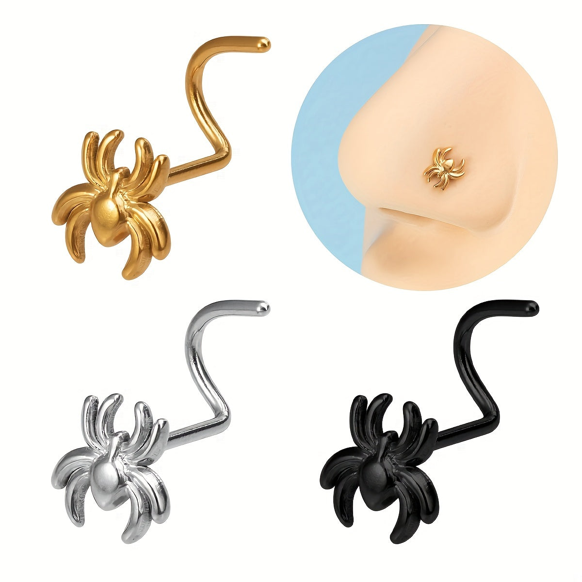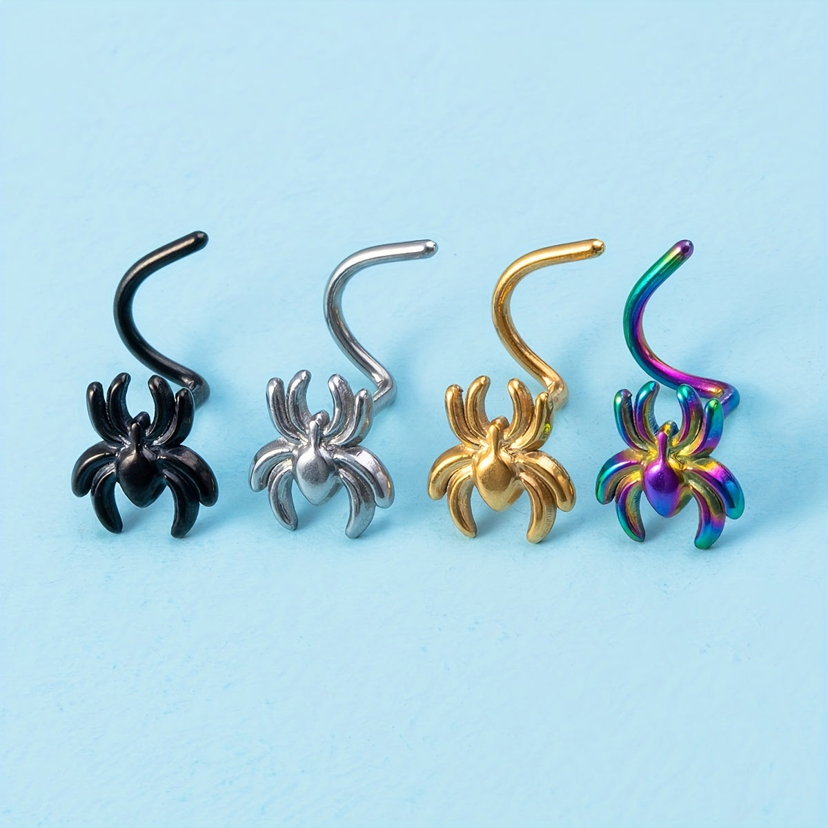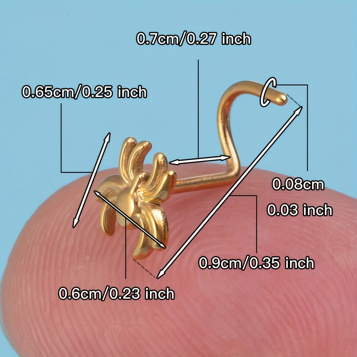 Add a touch of punk style to your look with this spider-shaped nose nostril stud ring. Made from high-quality materials, this animal theme body piercing jewelry is perfect for those with a unique sense of fashion.