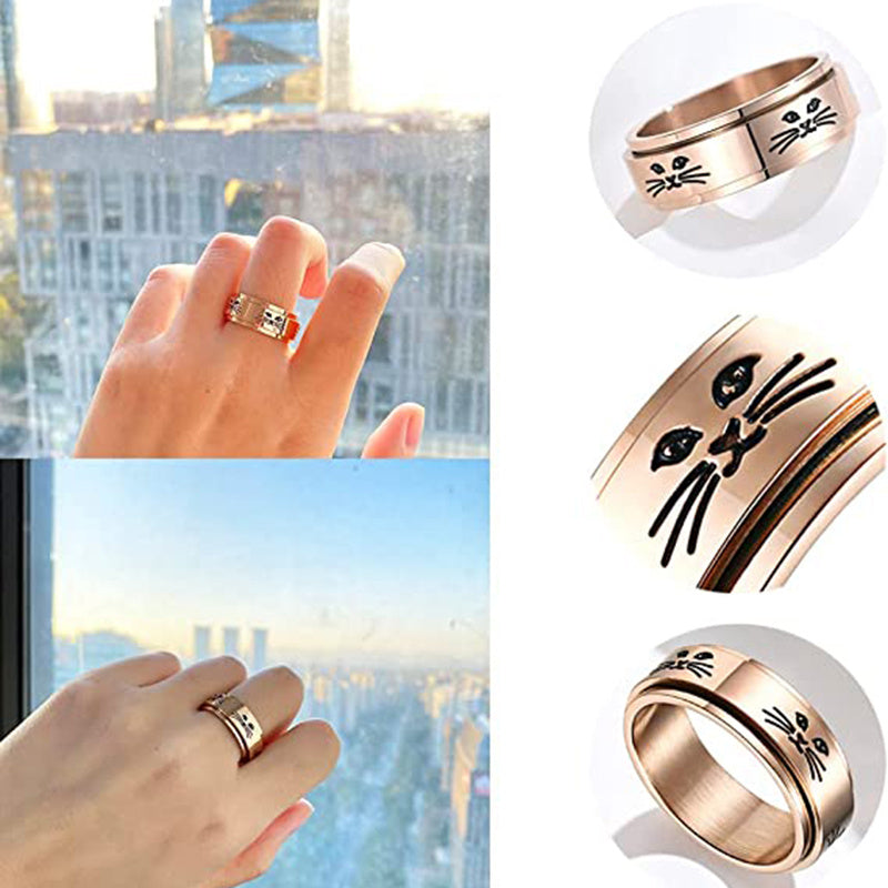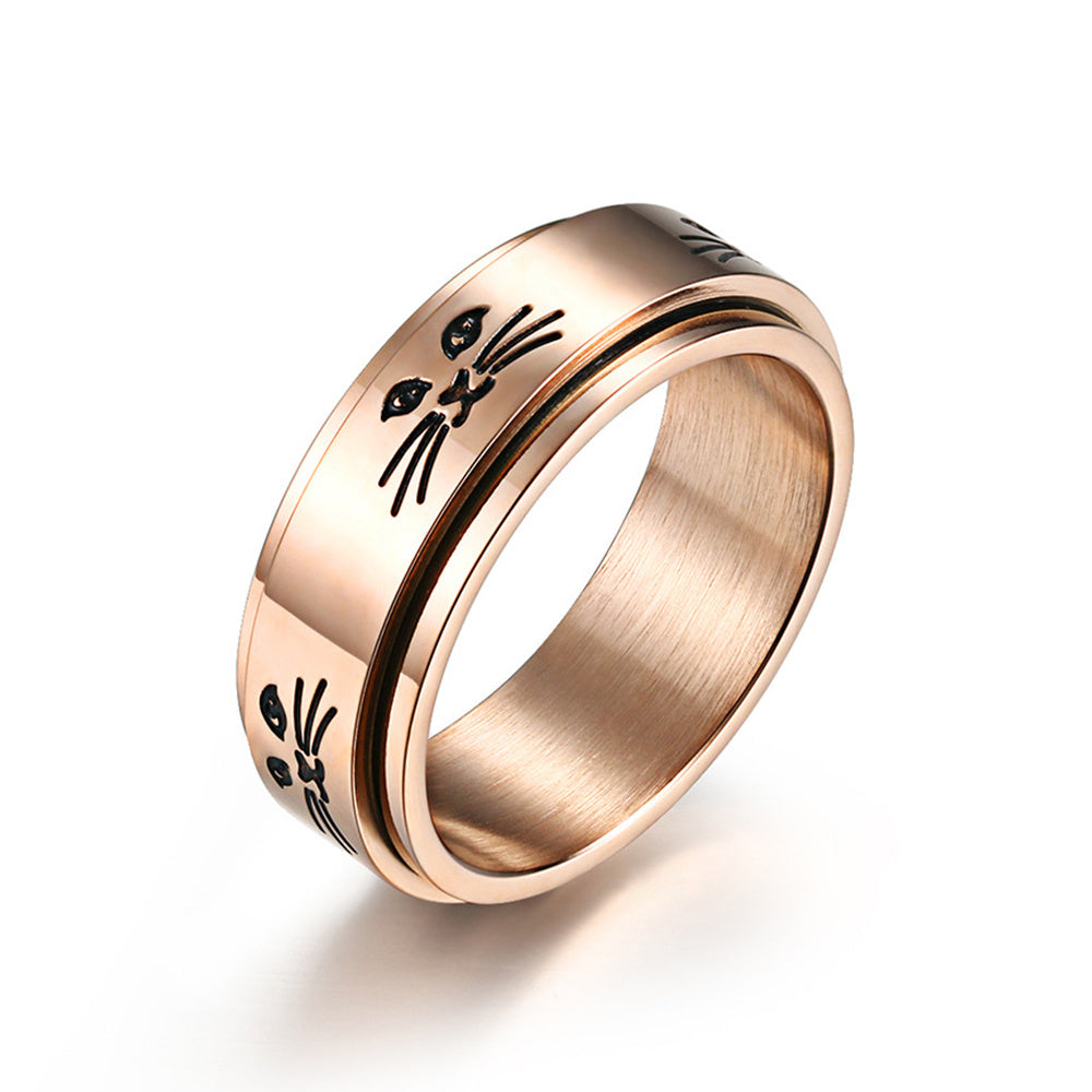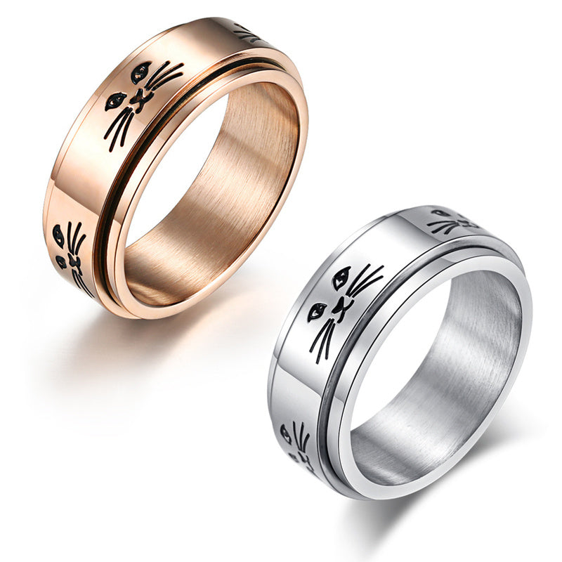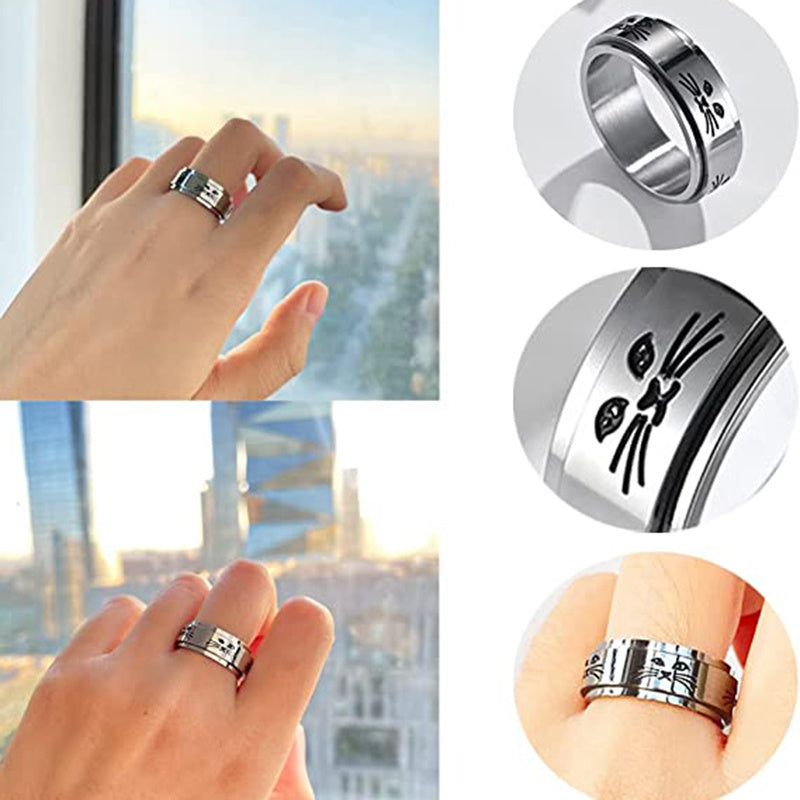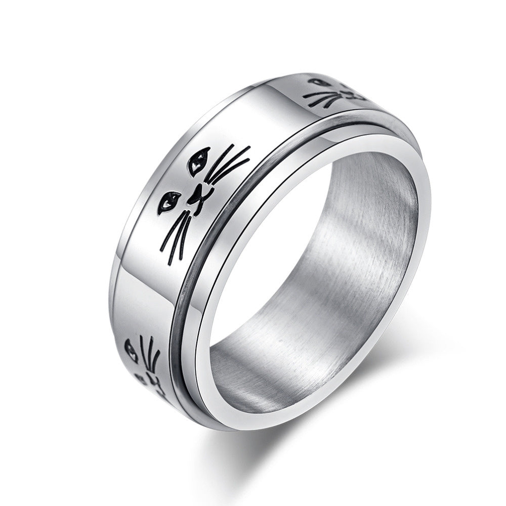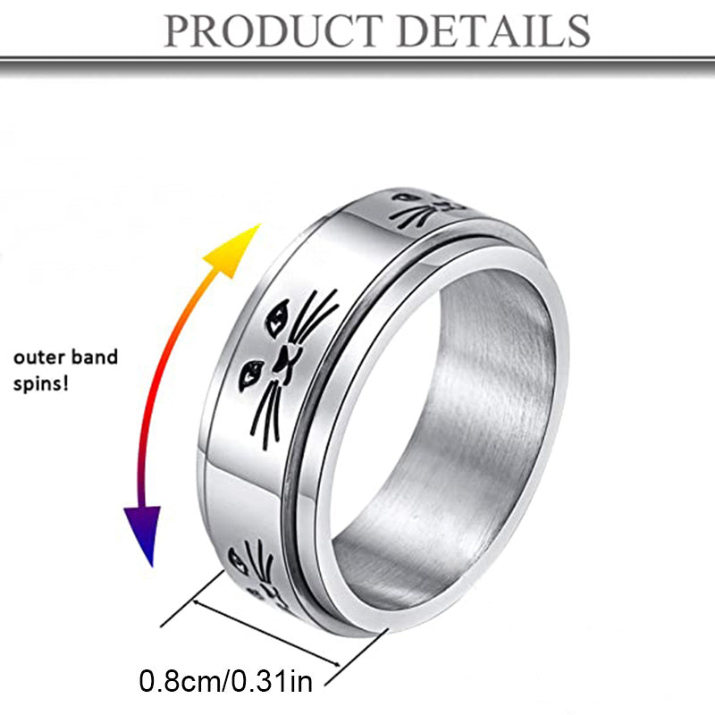 This stylish 8mm spinner ring features a cat face design, perfect for women and men.