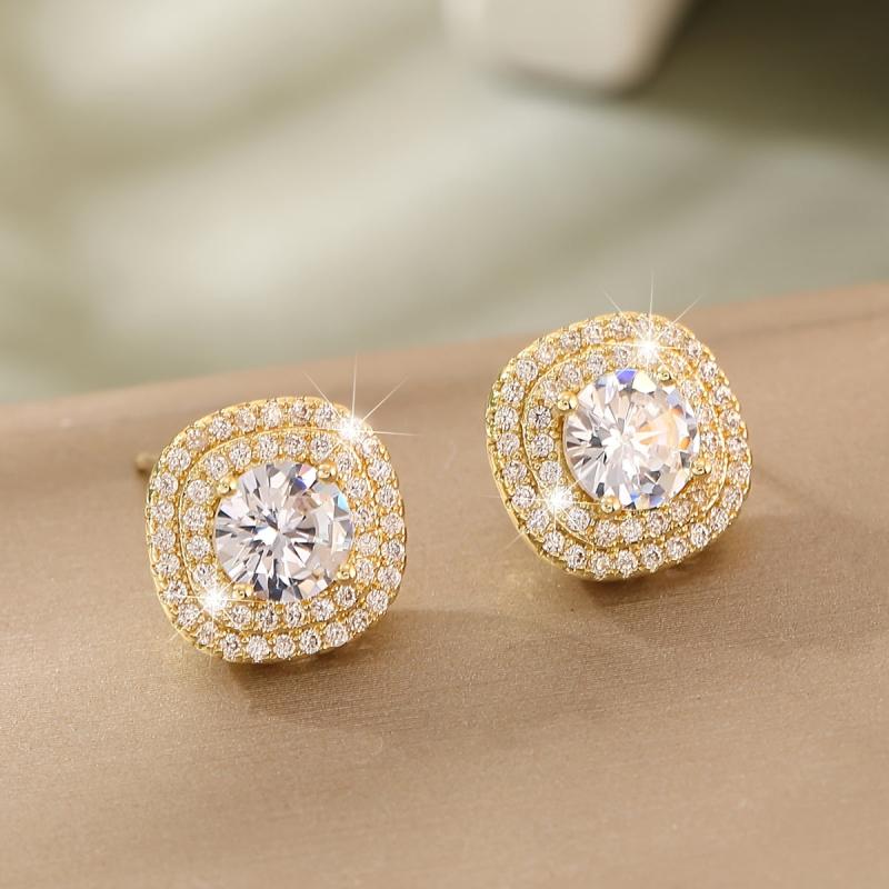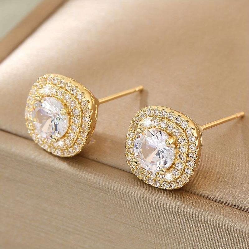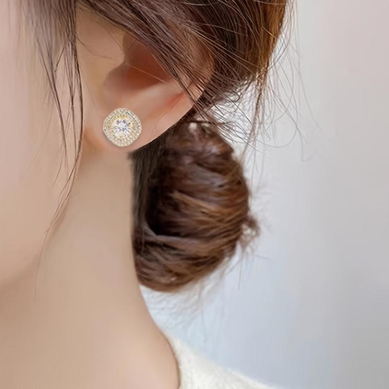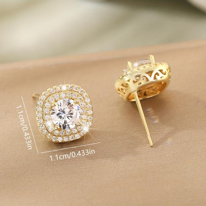 These elegant square copper earrings with synthetic zircon inlay are perfect for brides, wedding parties, and dates. They add a touch of sparkle and sophistication to any outfit.