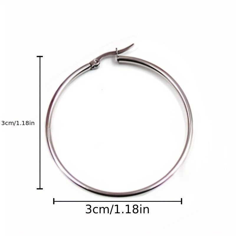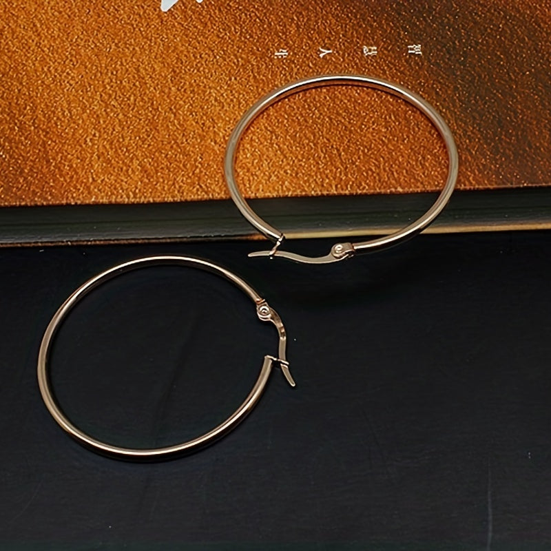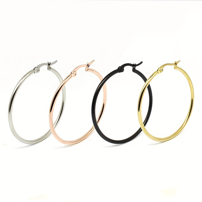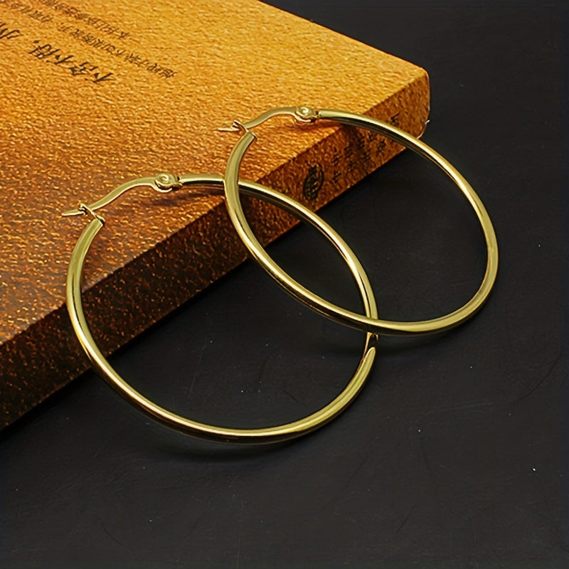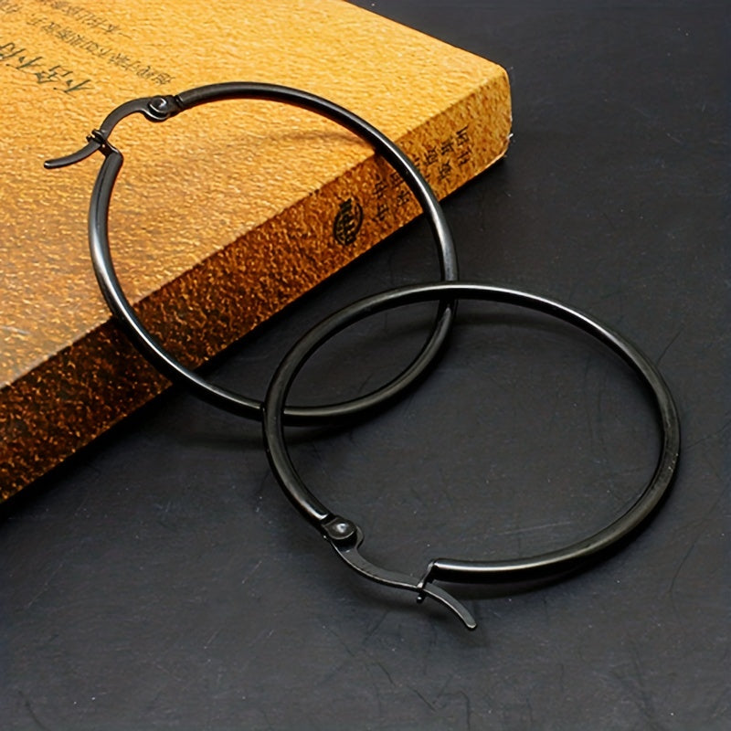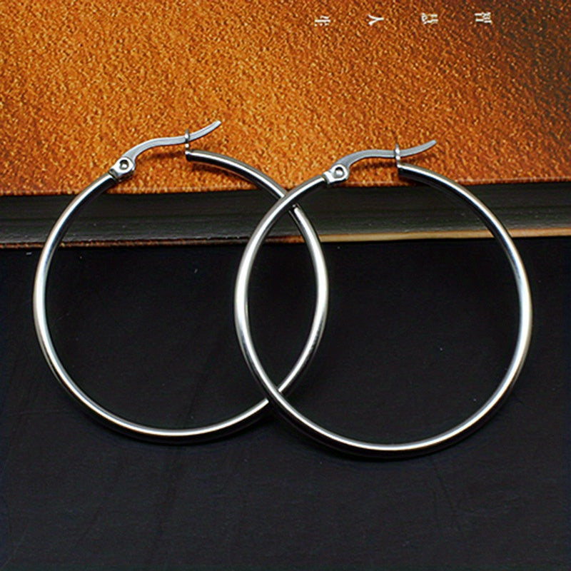 These stainless steel big loop earrings feature a coil round design that adds a unique touch to your jewelry collection. The ear buckle closure ensures a secure fit.