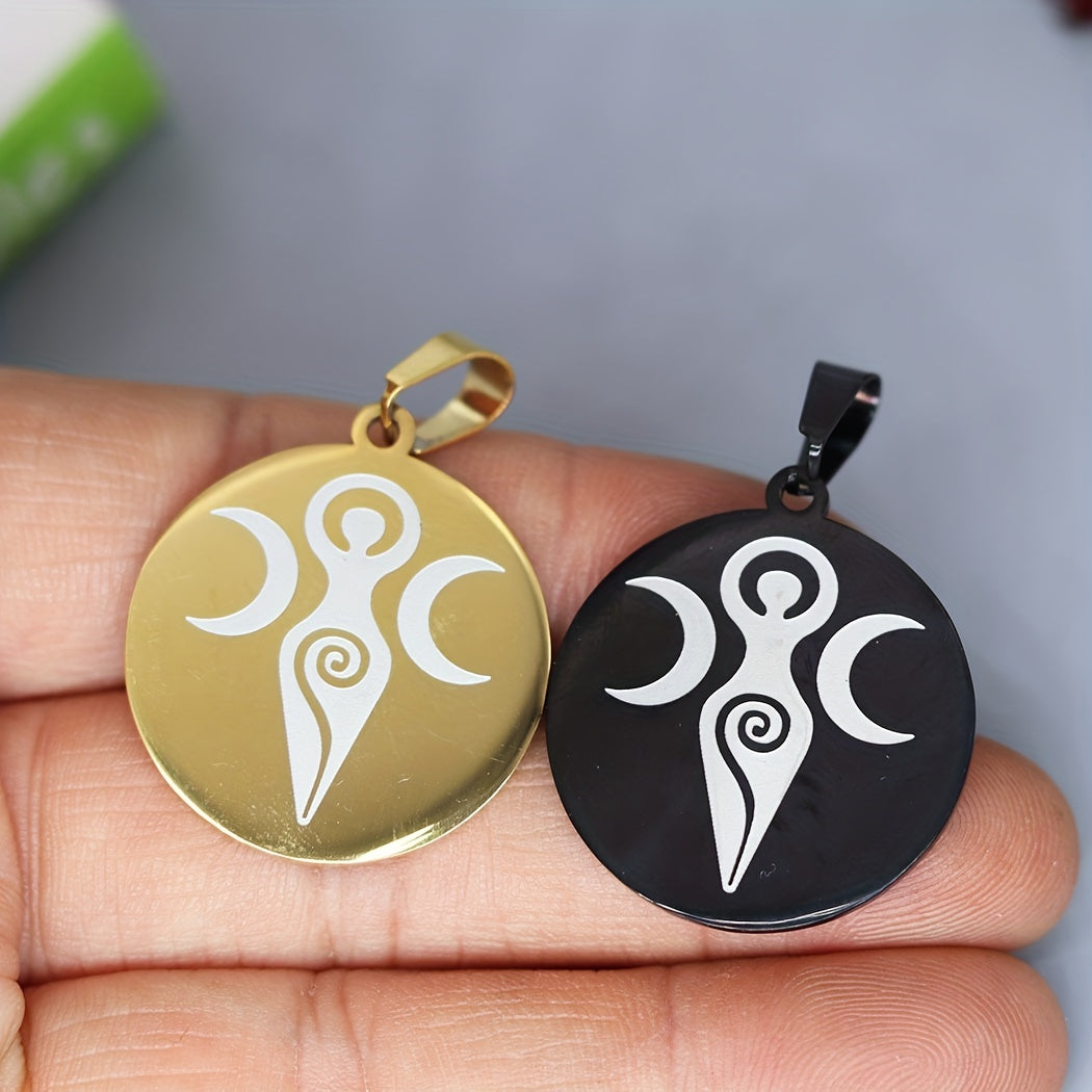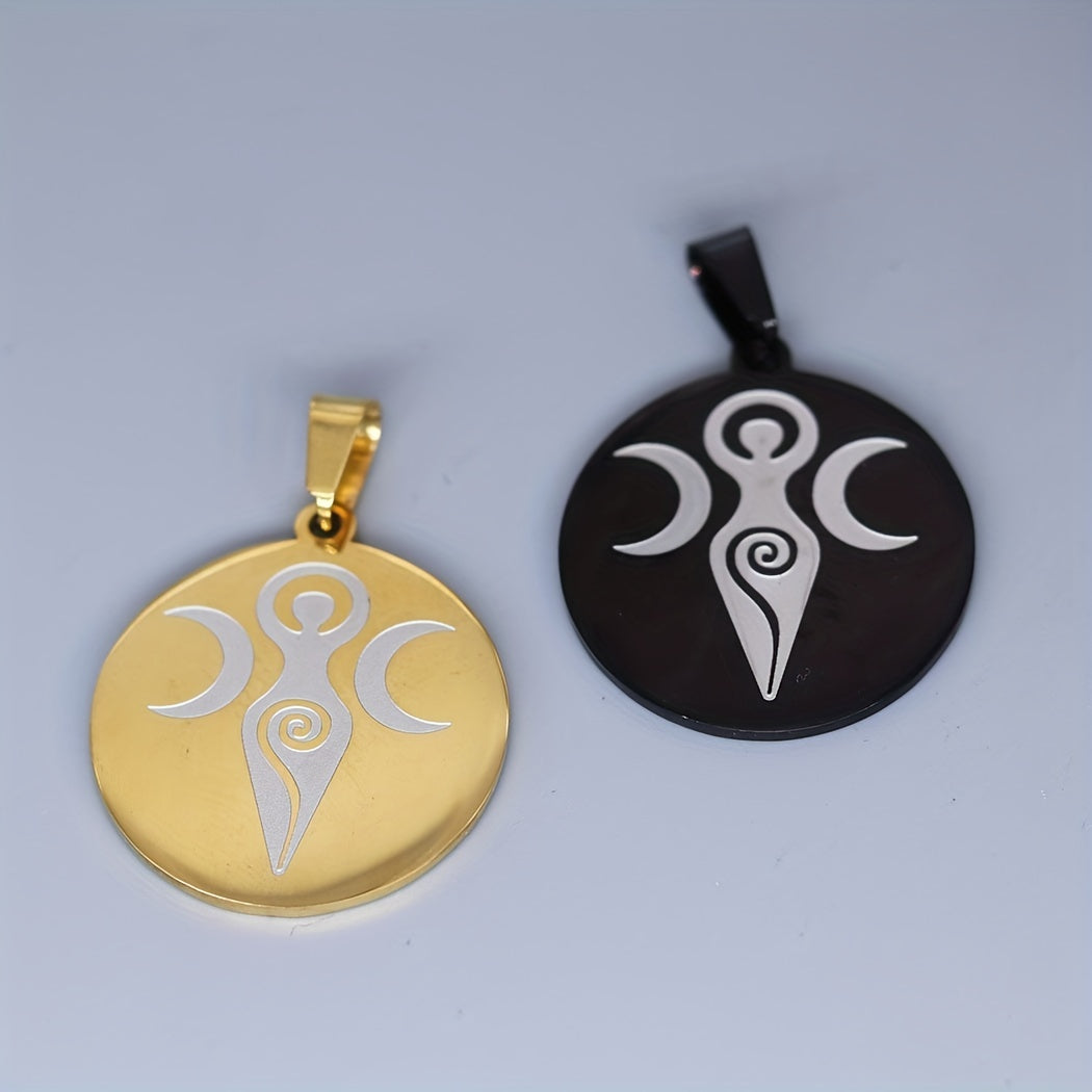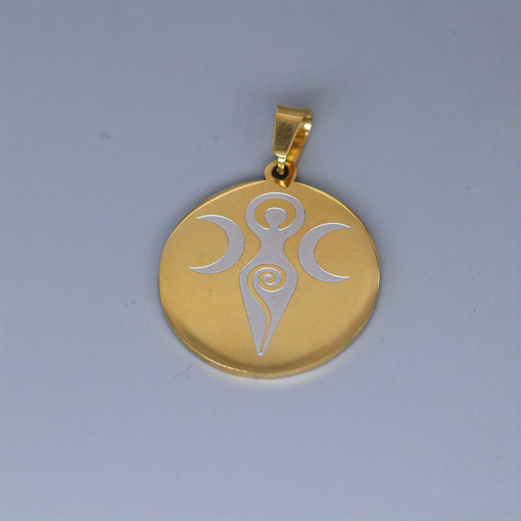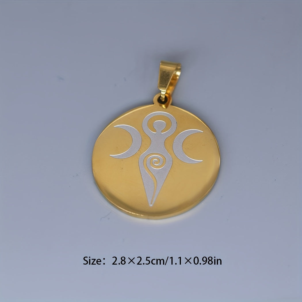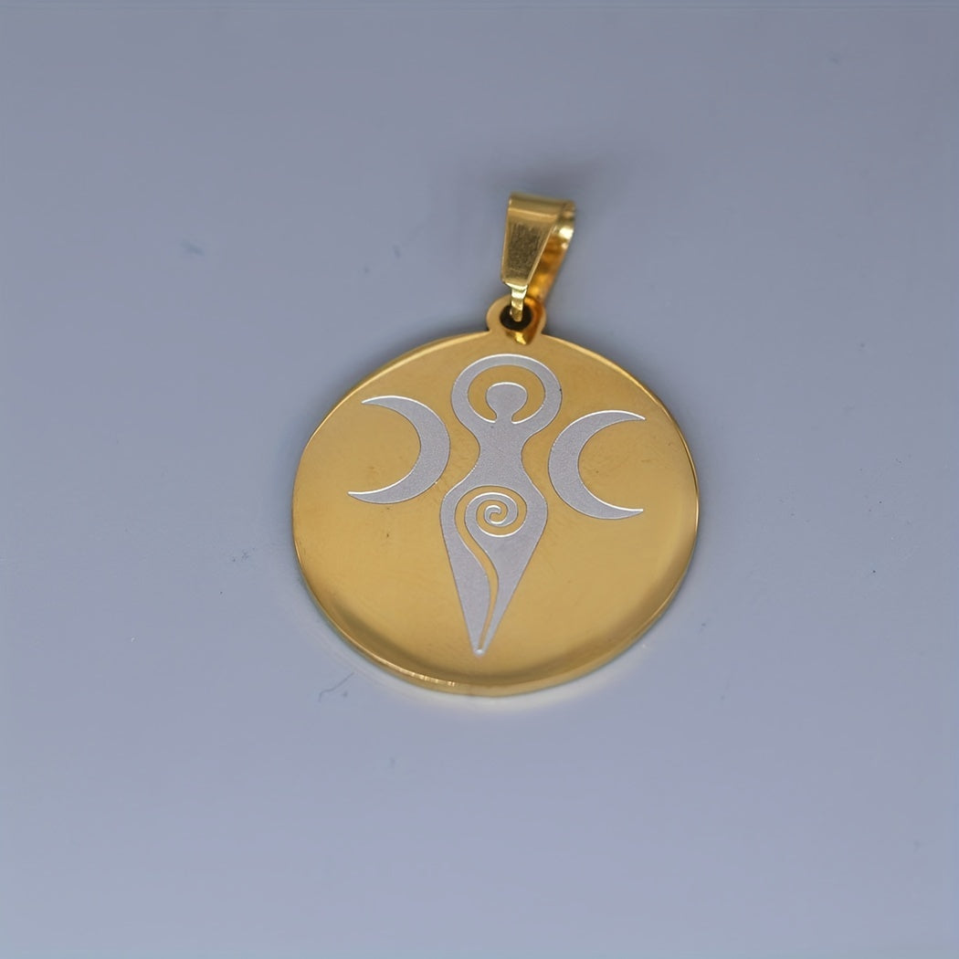 This pendant necklace features a stunning double moon amulet design that embodies the beauty of the goddess. It is made of high-quality stainless steel with a golden spiral finish.