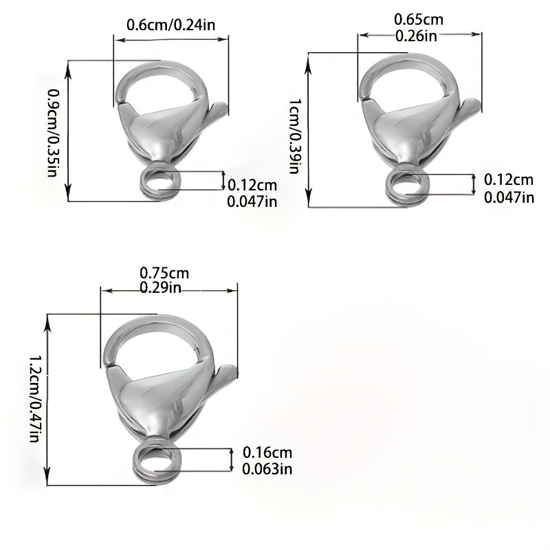 Get 20 pieces of silvery lobster claw clasps made of stainless steel for creating necklaces, bracelets, and earrings. Perfect for DIY jewelry projects.
