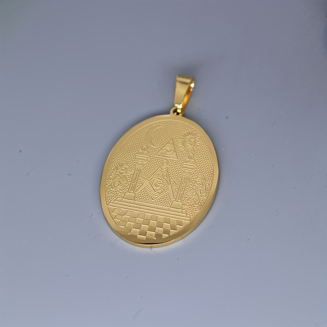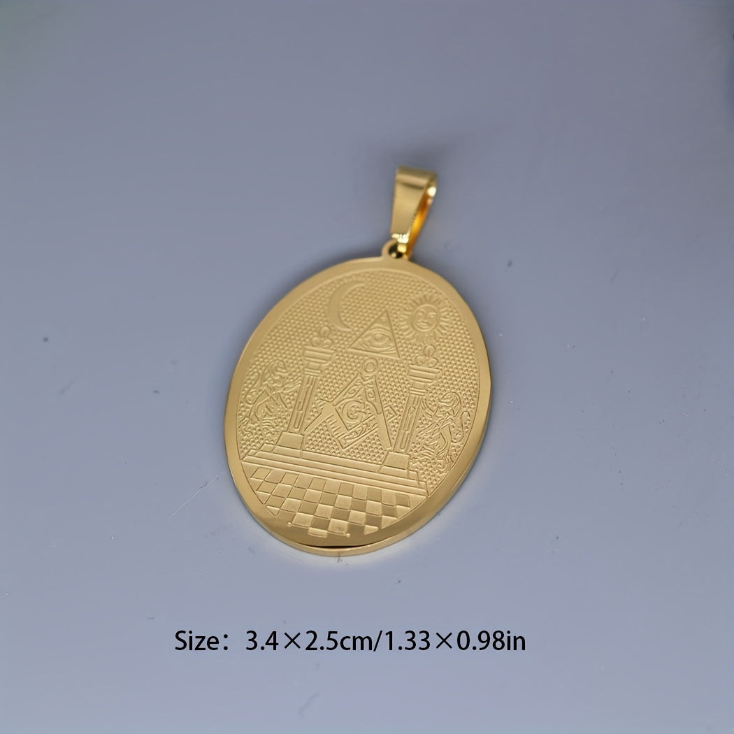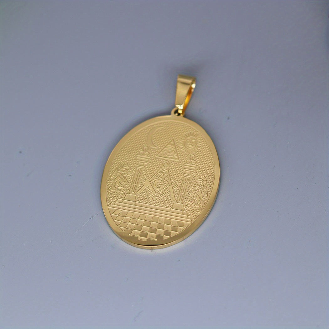 This stainless steel pendant necklace features the Masonic symbol with the Twin Pillars Boaz and Jachin design. It is a unisex amulet jewelry that is perfect for Masons and those interested in Masonic symbolism.