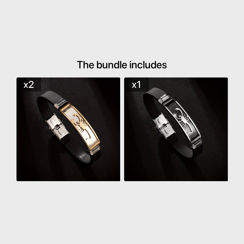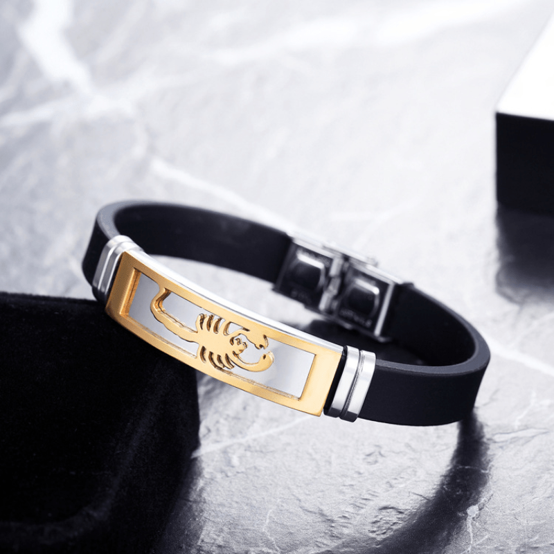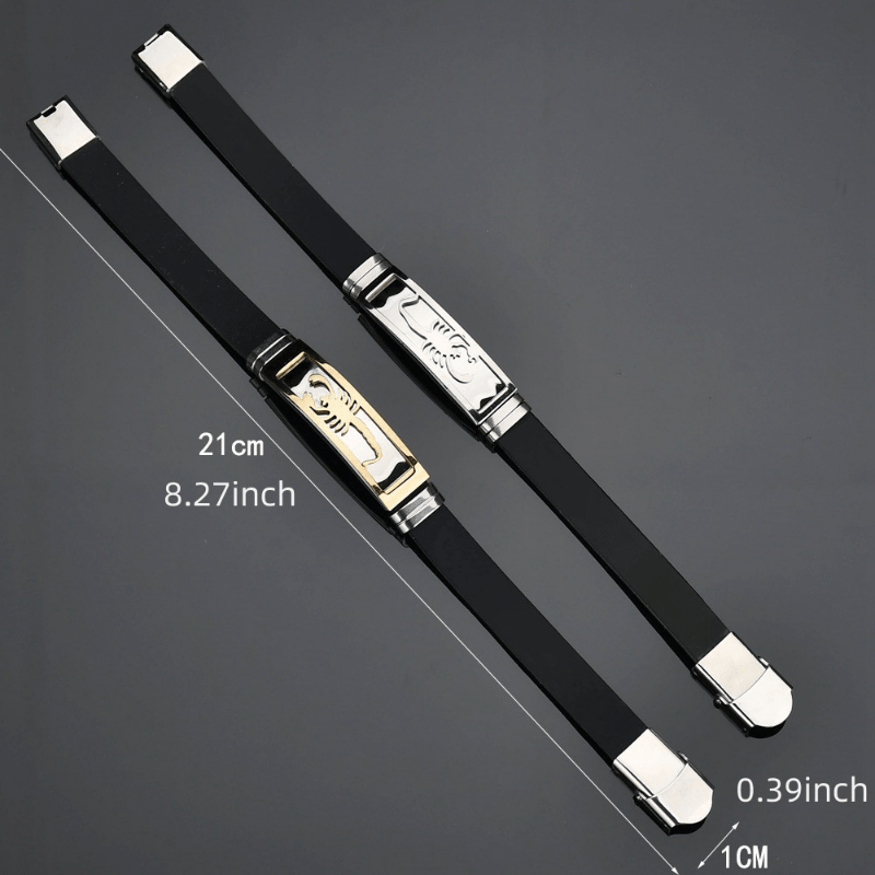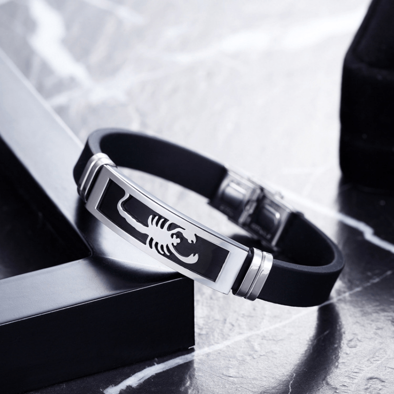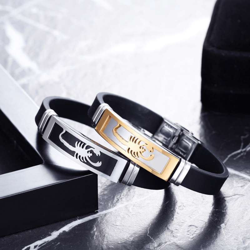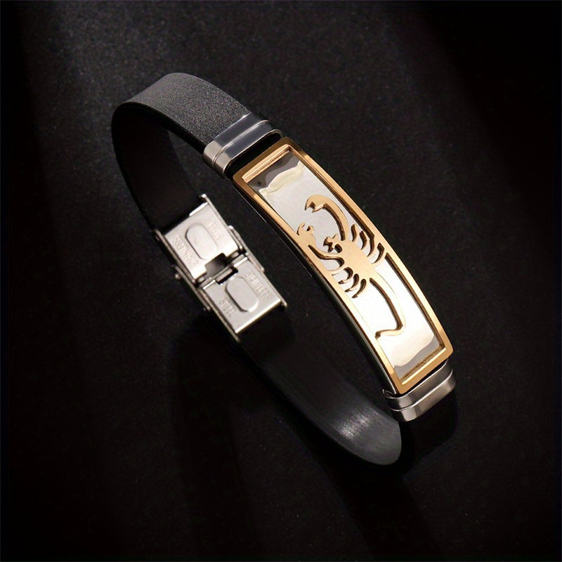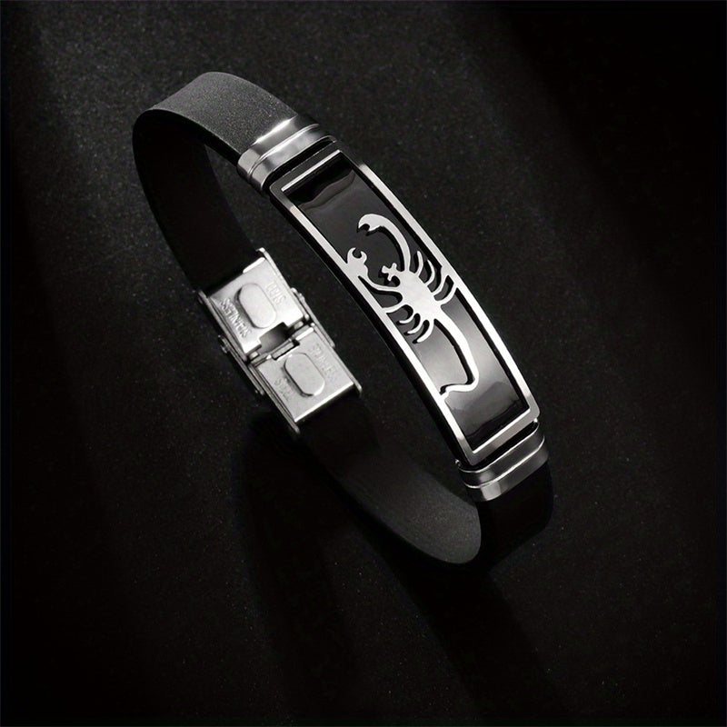 This unique bracelet features a stainless steel scorpion design on a comfortable silicone band, making it a stylish accessory for men.