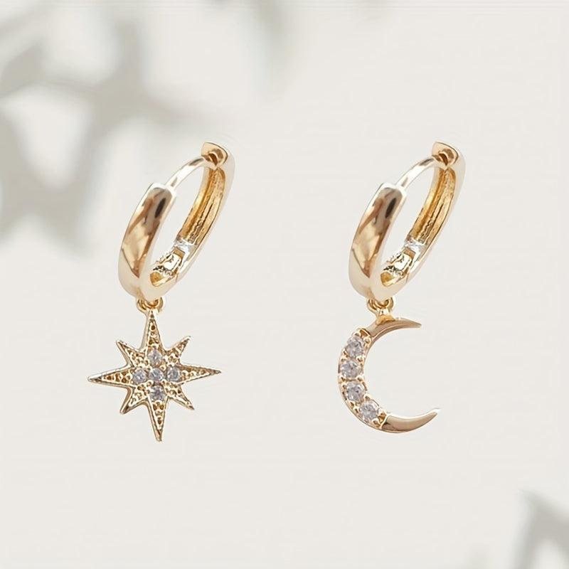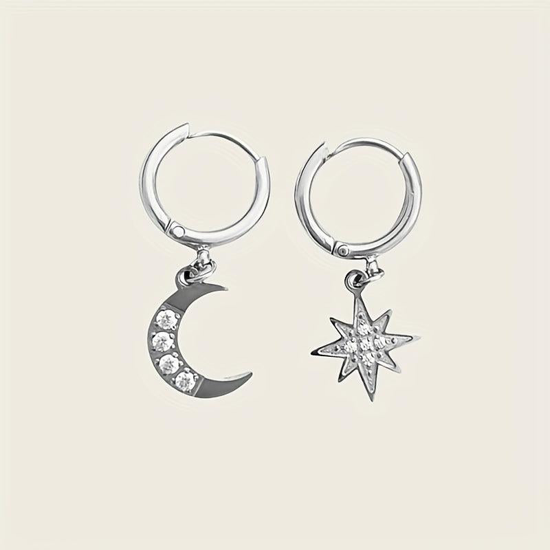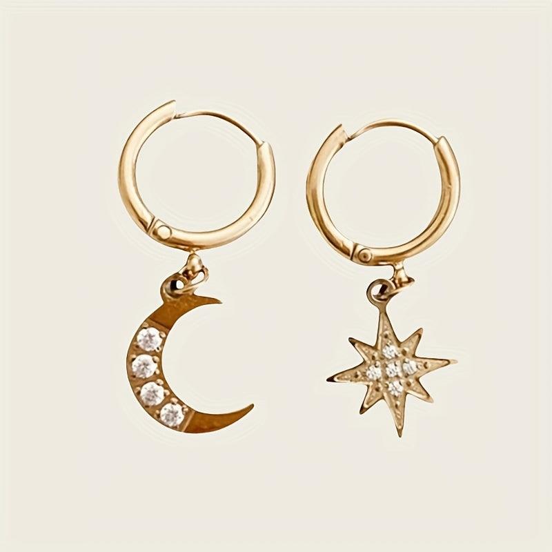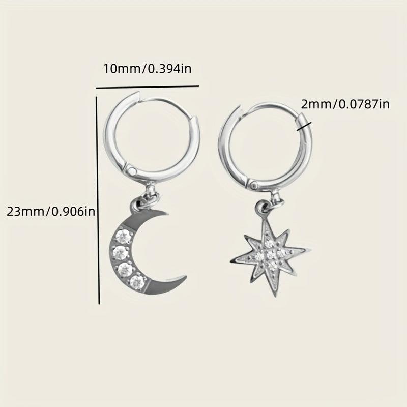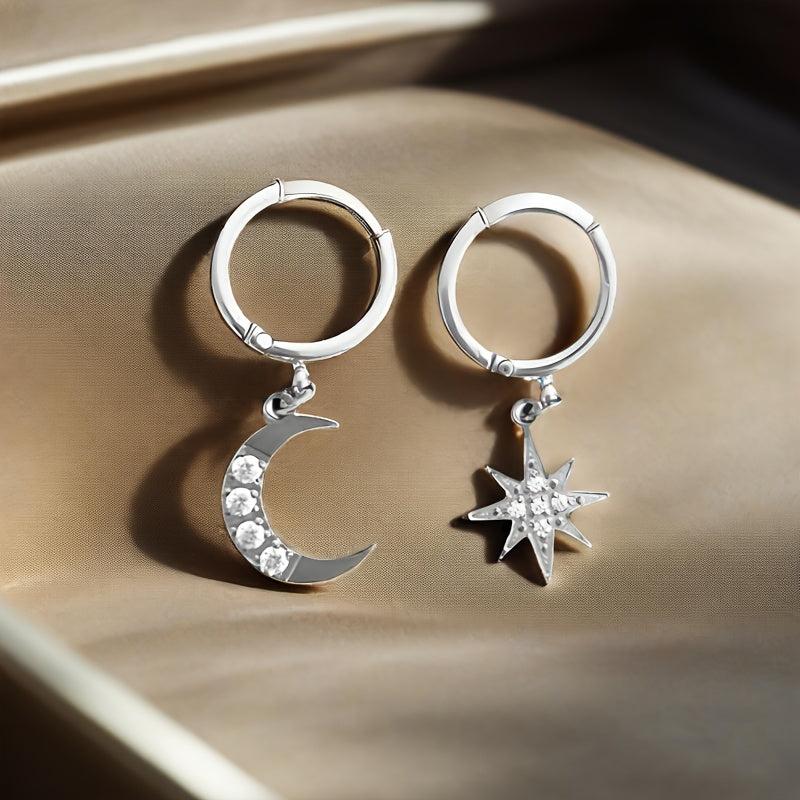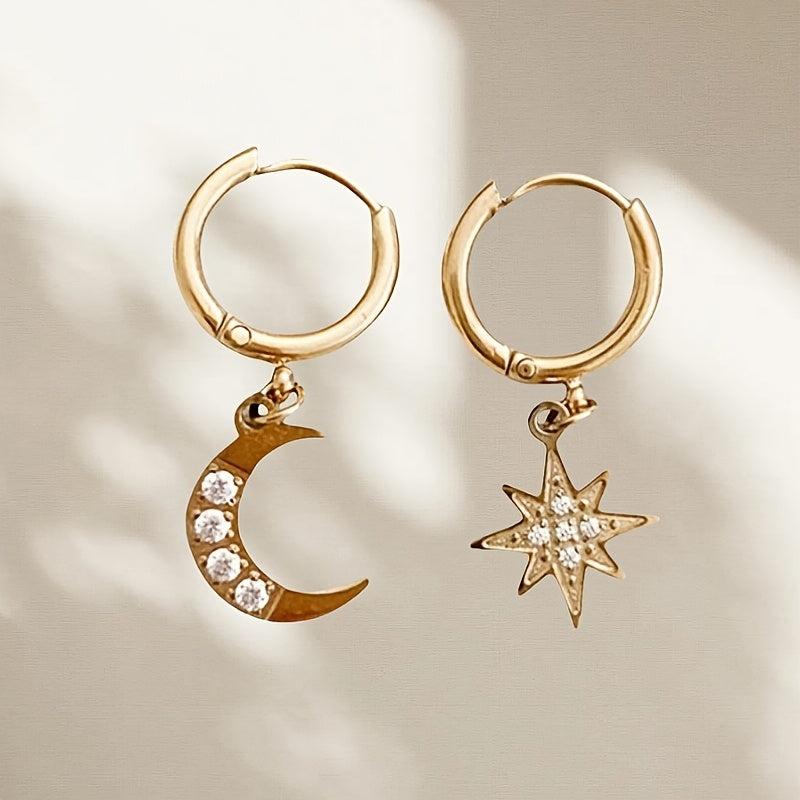 Add a touch of whimsy with these asymmetrical hoop earrings featuring a star and moon design. Perfect for daily wear or adding a playful touch to your party outfit. Made of hypoallergenic 316 stainless steel.